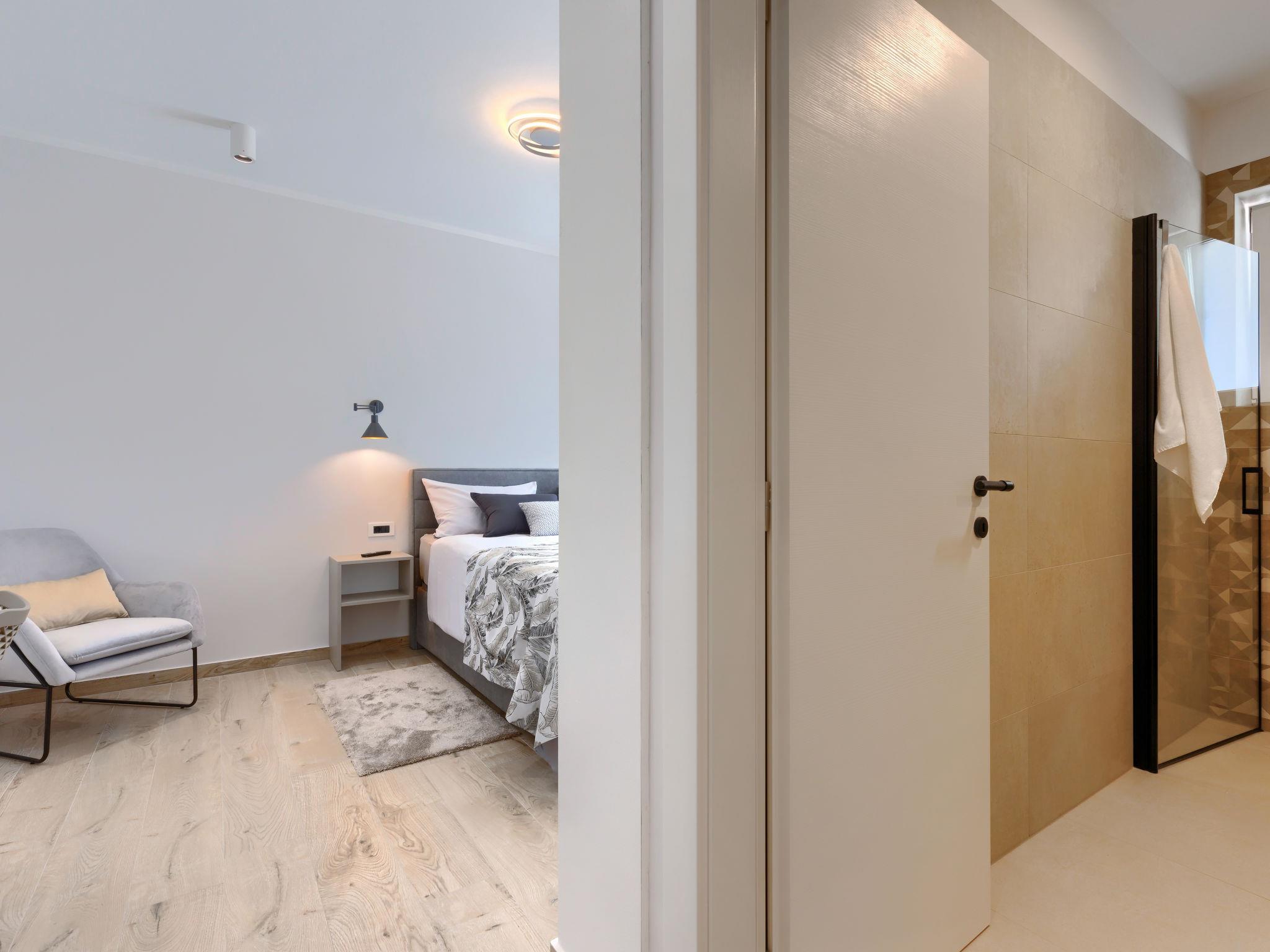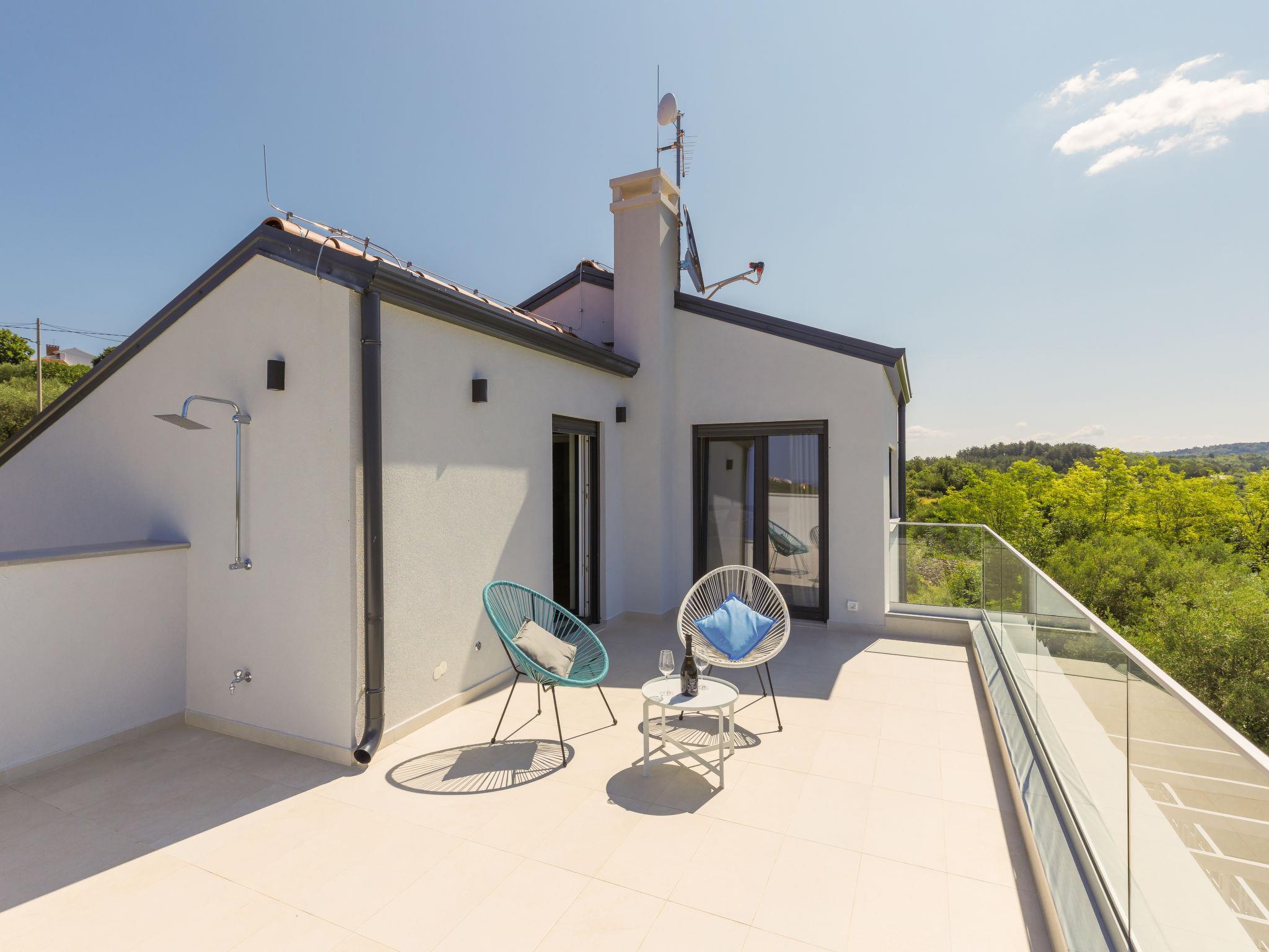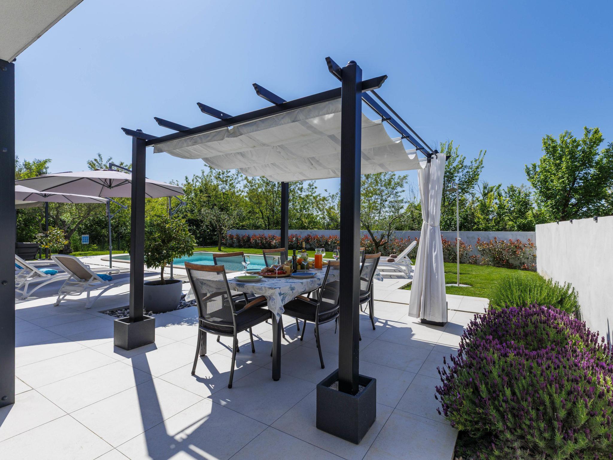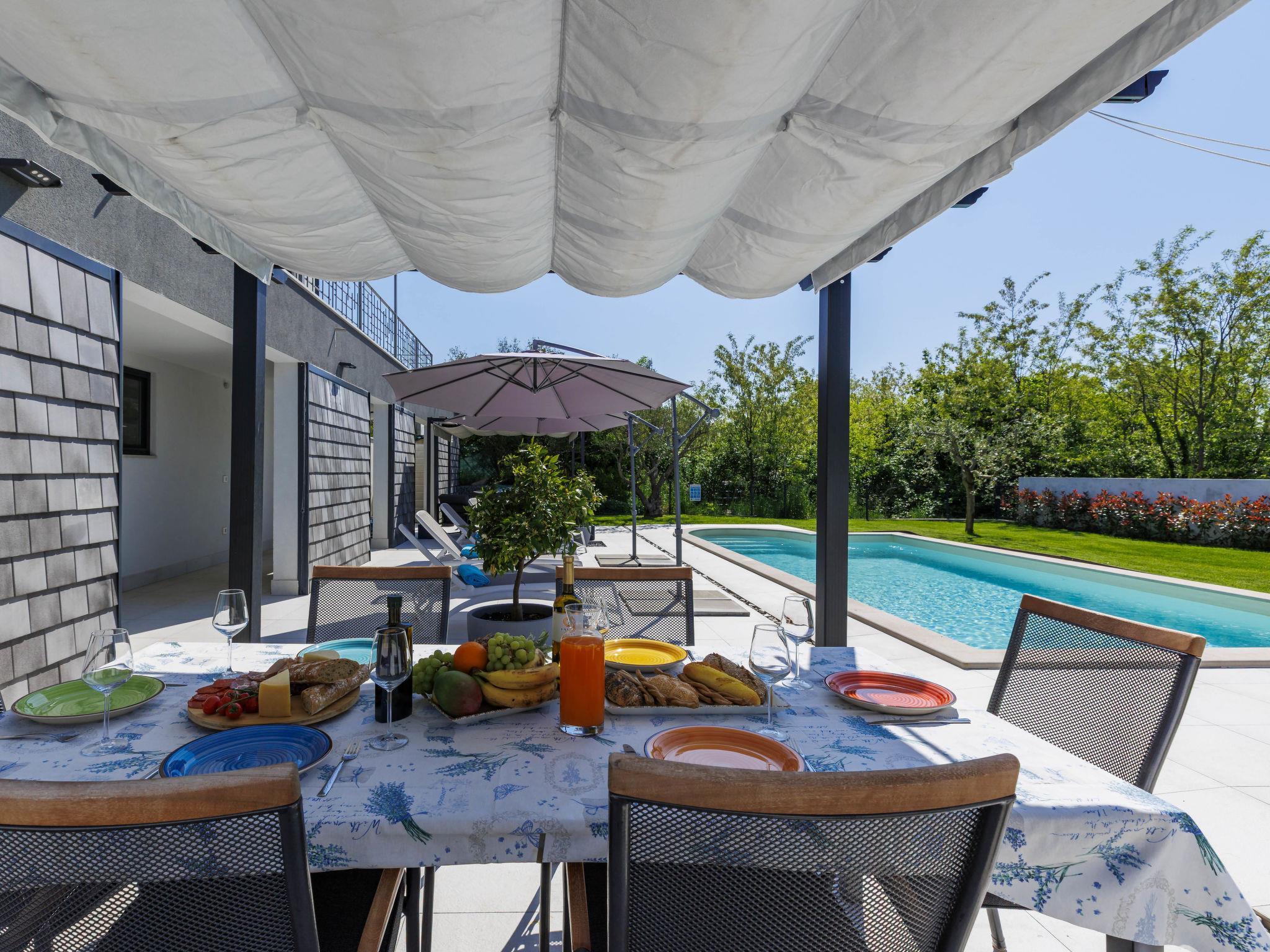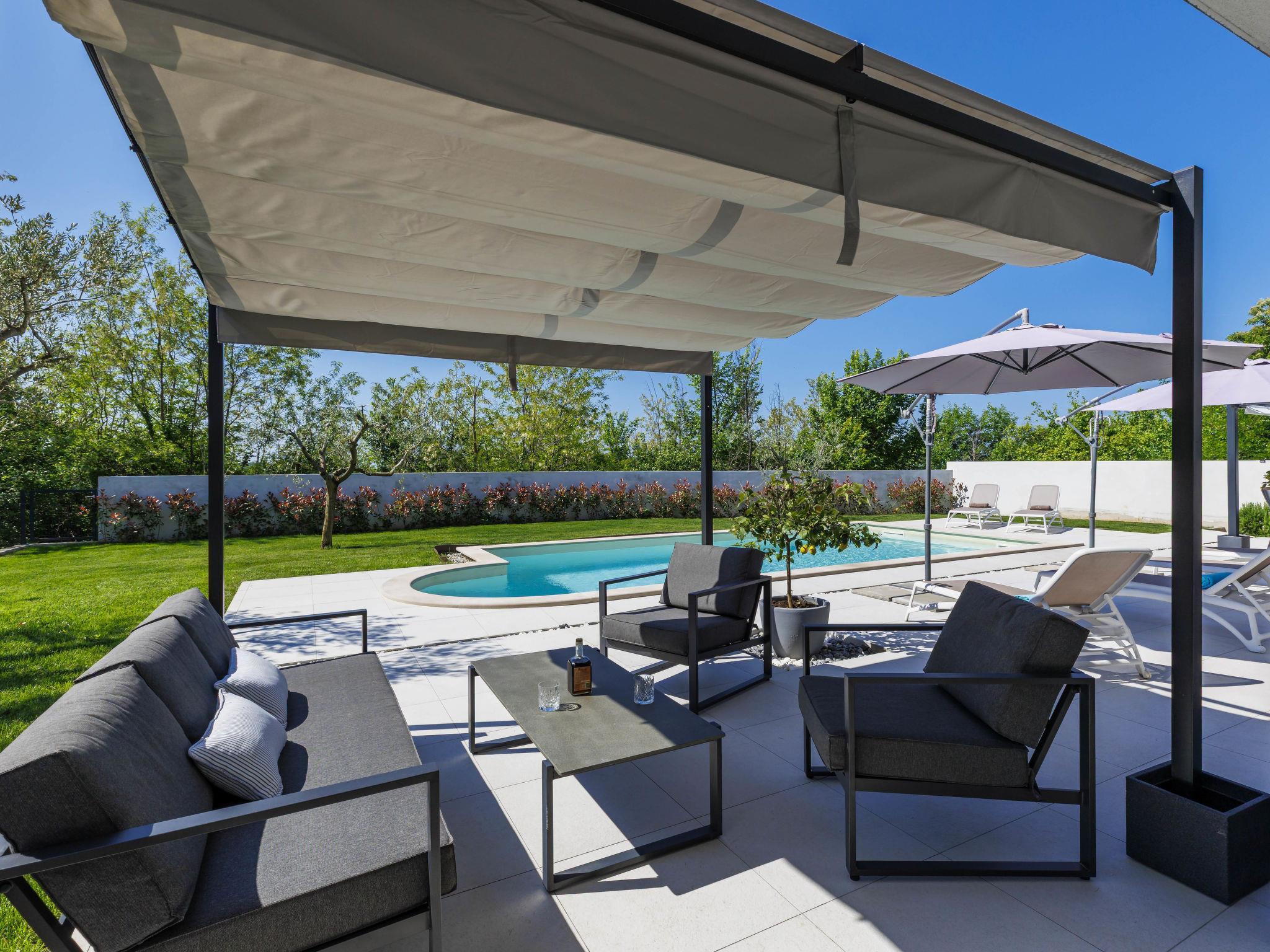 Schönes Einfamilienhaus "Villa Sonja". Ausserhalb des Ortes, 1 km vom Zentrum von Buje, sonnige Lage, 12 km vom Meer. Zur Alleinbenutzung: Grundstück 500 m2, Garten mit Rasen, Schwimmbad eckig (8 x 4 m, 150 cm tief, saisonale Verfügbarkeit: 01.Mai. - 31.Okt.) mit Innentreppe und Salzelektrolyse-Reinigungssystem. Aussendusche, Tischtennis, Grill, Kinderspielplatz (Rutschbahn, Schaukel), Poolpflege durch den Besitzer/Gärtner. Im Hause: Internetzugang, Trampolin, Waschmaschine, Wäschetrockner. Parkplatz (für 2 Autos) beim Haus auf dem Grundstück. Einkaufsgeschäft 1 km, Supermarkt 1 km, Restaurant 2 km, Bushaltestelle 800 m, Kieselstrand 12 km, Felsstrand 12 km. Golfplatz (18 Loch) 18 km, Wanderwege ab Haus 200 m, Radweg 250 m. Der Besitzer akzeptiert keine Jugendgruppen. Das veranstalten von Feiern ist nicht gestattet.
