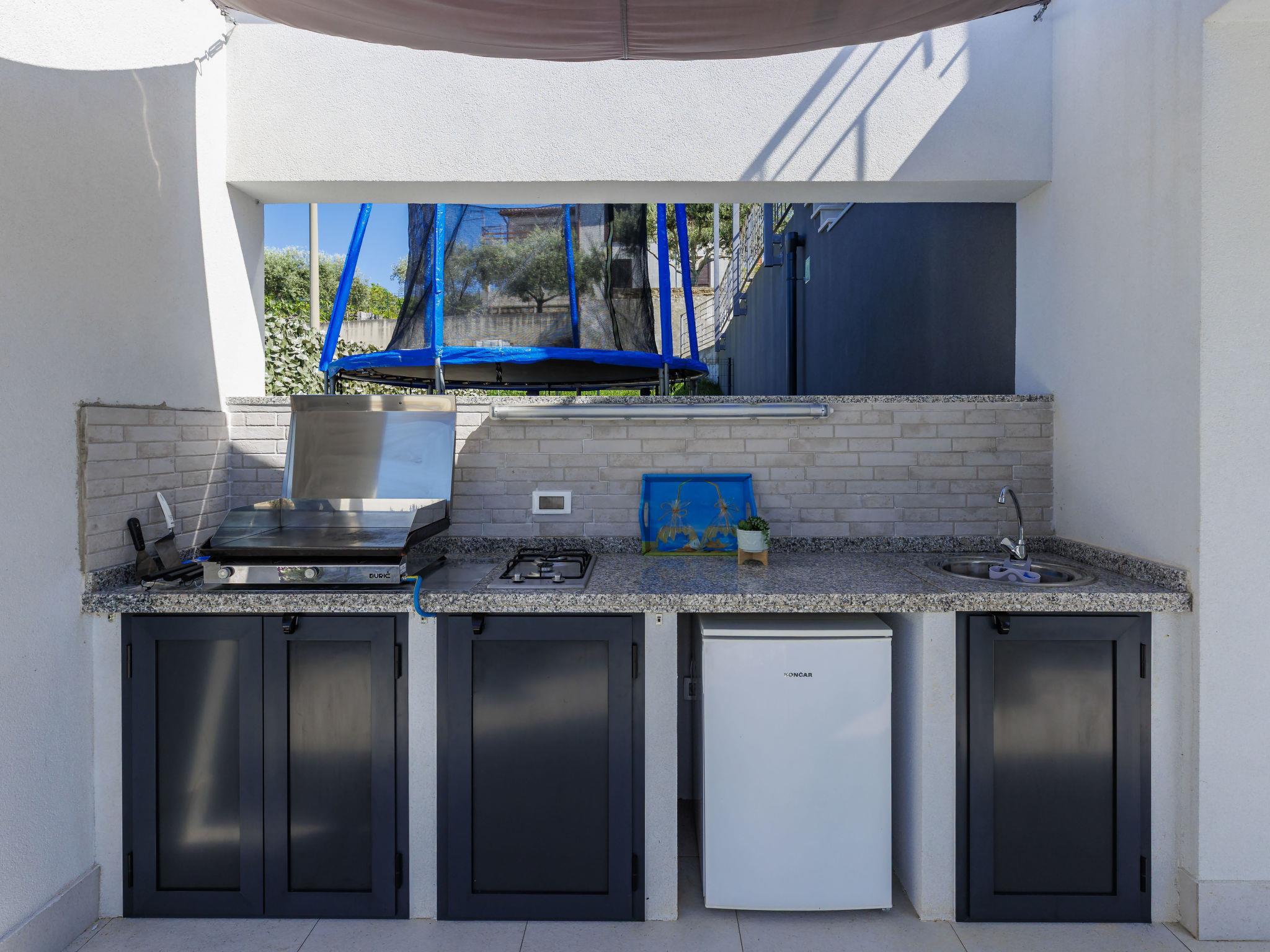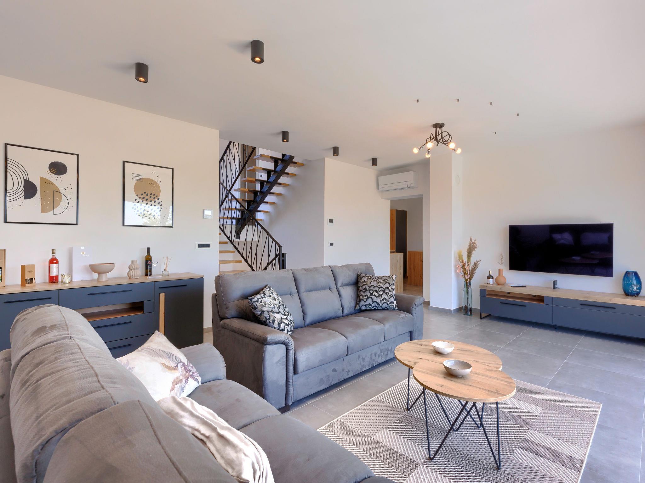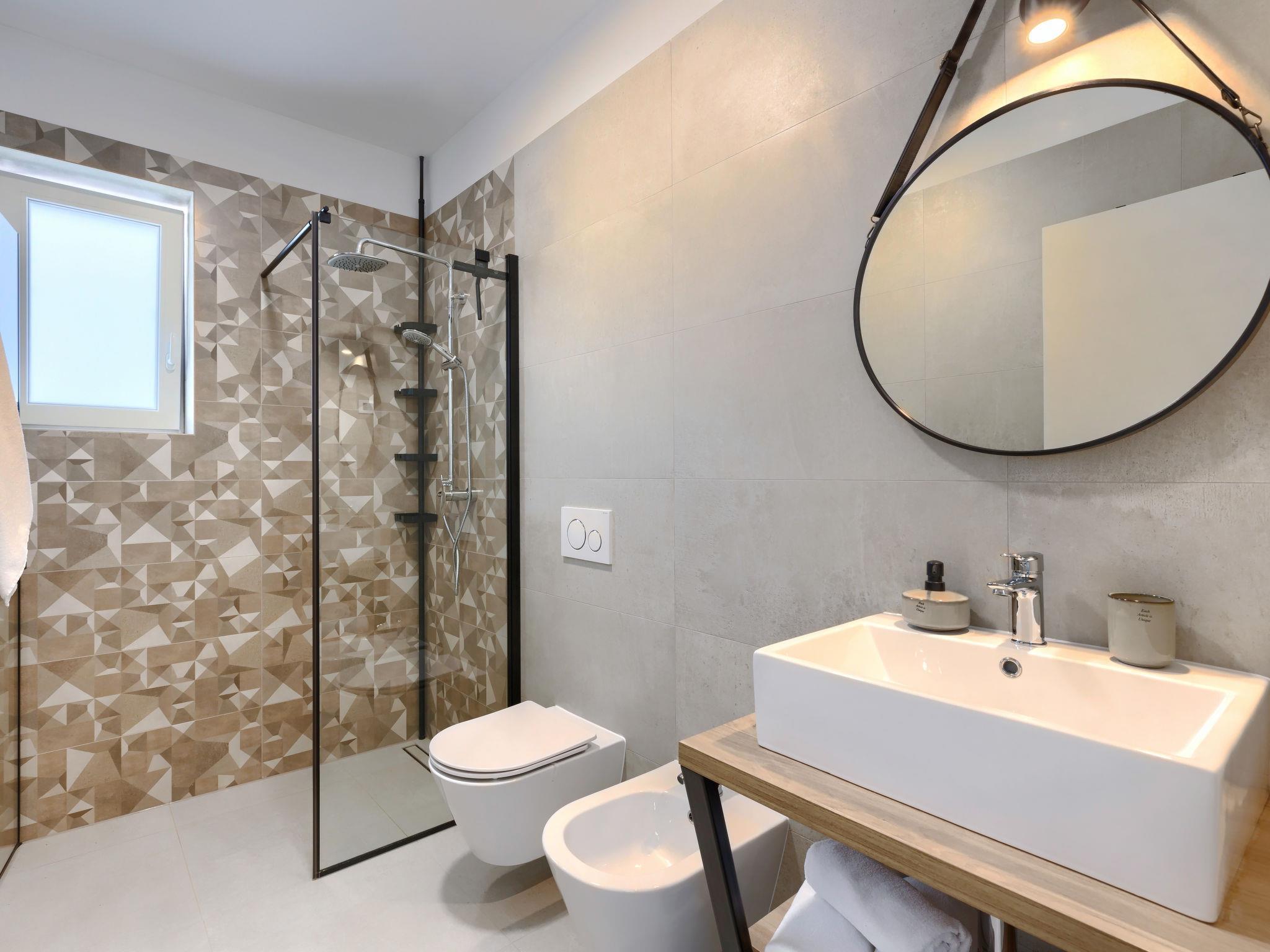 4-Zimmer-Haus 160 m2 auf 3 Stockwerken. Schön und geschmackvoll eingerichtet: Wohn-/Esszimmer mit Sat-TV (Flachbildschirm), Klimaanlage. Ausgang zur Terrasse. Offene Küche (Backofen, Geschirrspüler, 4 Induktionskochplatten, Toaster, Wasserkocher, Tiefkühler, elektrische Kaffeemaschine). Ausgang zur Terrasse. Dusche/WC. Unteres Geschoss: 2 Zimmer, jedes Zimmer mit 1 franz. Bett (180 cm, Länge 200 cm), Dusche/Bidet/WC und Sat-TV (Flachbildschirm), Klimaanlage. Ausgang zum Schwimmbad. Obergeschoss: 1 Zimmer mit 1 franz. Bett (180 cm, Länge 200 cm), Sat-TV (Flachbildschirm), Klimaanlage. Ausgang zur Terrasse. Heizung (extra). Terrasse 20 m2, Terrasse 32 m2. Terrassenmöbel, Liegestühle. Panoramasicht auf das Meer und die Landschaft. Zur Verfügung: Safe, Bügeleisen, Fliegengitter, Kinderhochstuhl, Babybett, Haartrockner. Internet (Wireless LAN, gratis).