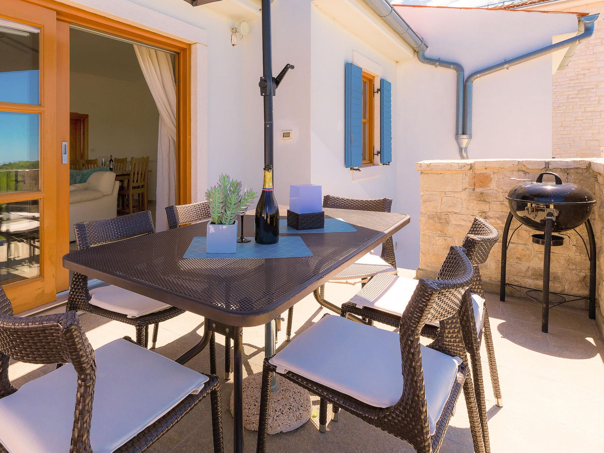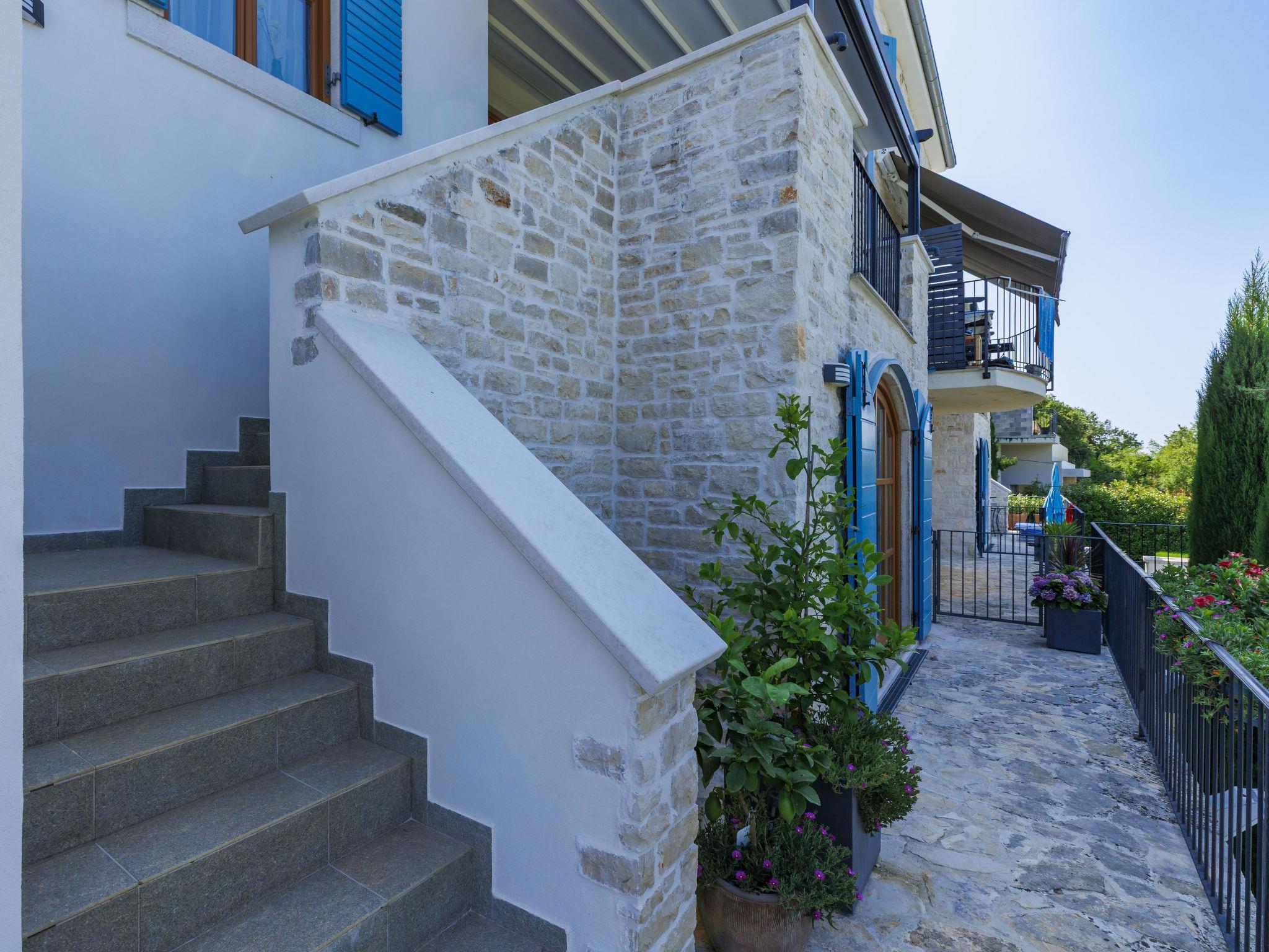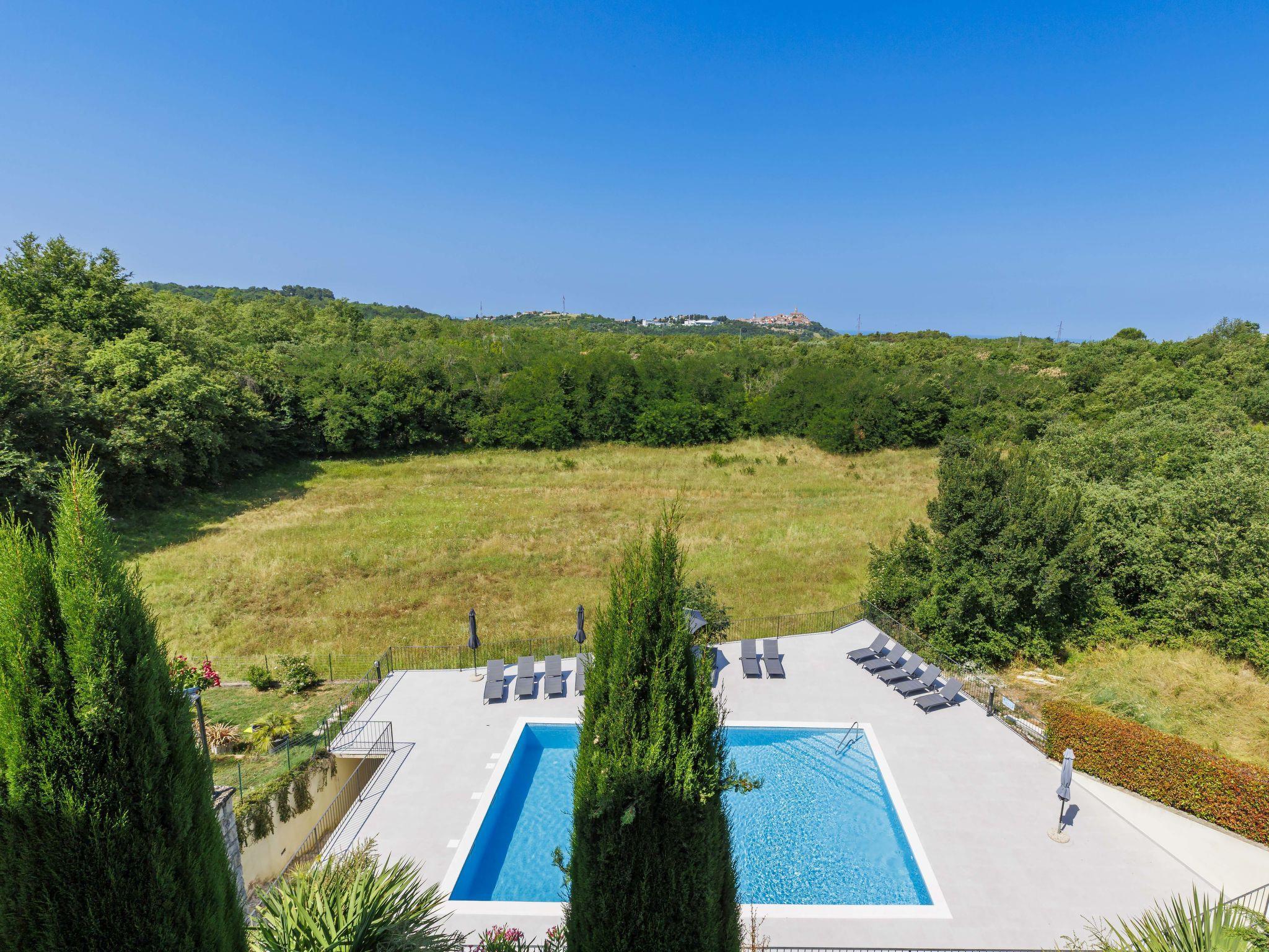 Schönes Reihenhaus "Bibali", auf 2 Stockwerken. Im Weiler Bibali, 2 km vom Zentrum von Buje, ruhige, sonnige Lage am Hang, 12 km vom Meer. Zur Mitbenutzung: Grundstück 2'000 m2 (eingezäunt), Garten, Schwimmbad eckig (11 x 8 m, 100 - 150 cm tief, saisonale Verfügbarkeit: 15.Apr. - 15.Okt.) mit Innentreppe. Aussendusche. Im Hause: Internetzugang, Waschmaschine, Wäschetrockner. Parkplatz beim Haus auf dem Grundstück. Einkaufsgeschäft 2 km, Restaurant 2 km, Bushaltestelle 2 km, Bahnstation 28 km, Kieselstrand 12 km. Golfplatz (18 Loch) 17 km, Tennis 1 km, Reitstall 5 km, Wanderwege ab Haus 1 km, Radweg 1 km. Die Nachbarschaft ist sehr lärmempfindlich. Ruhe und gutes Benehmen wird erwartet.