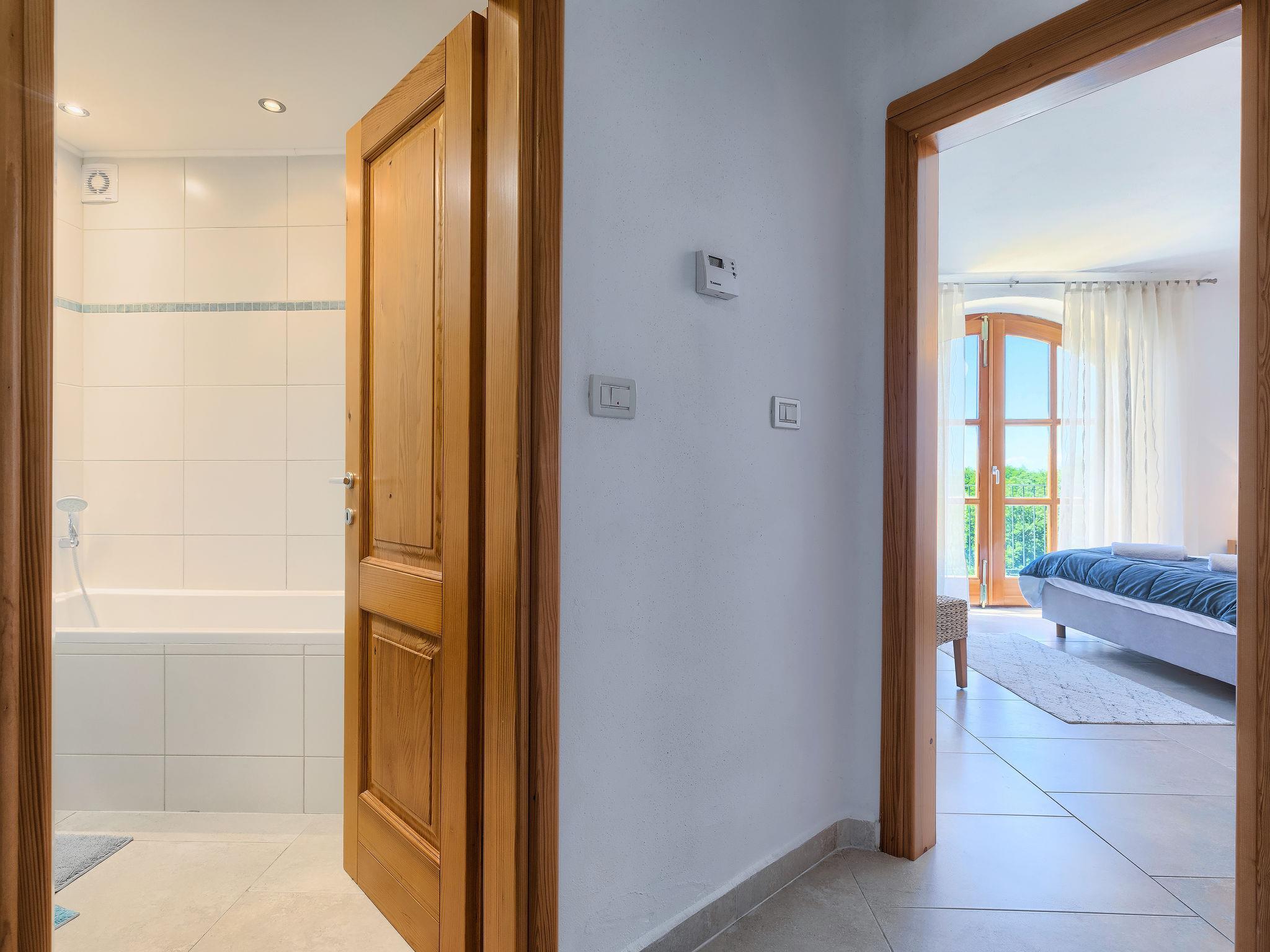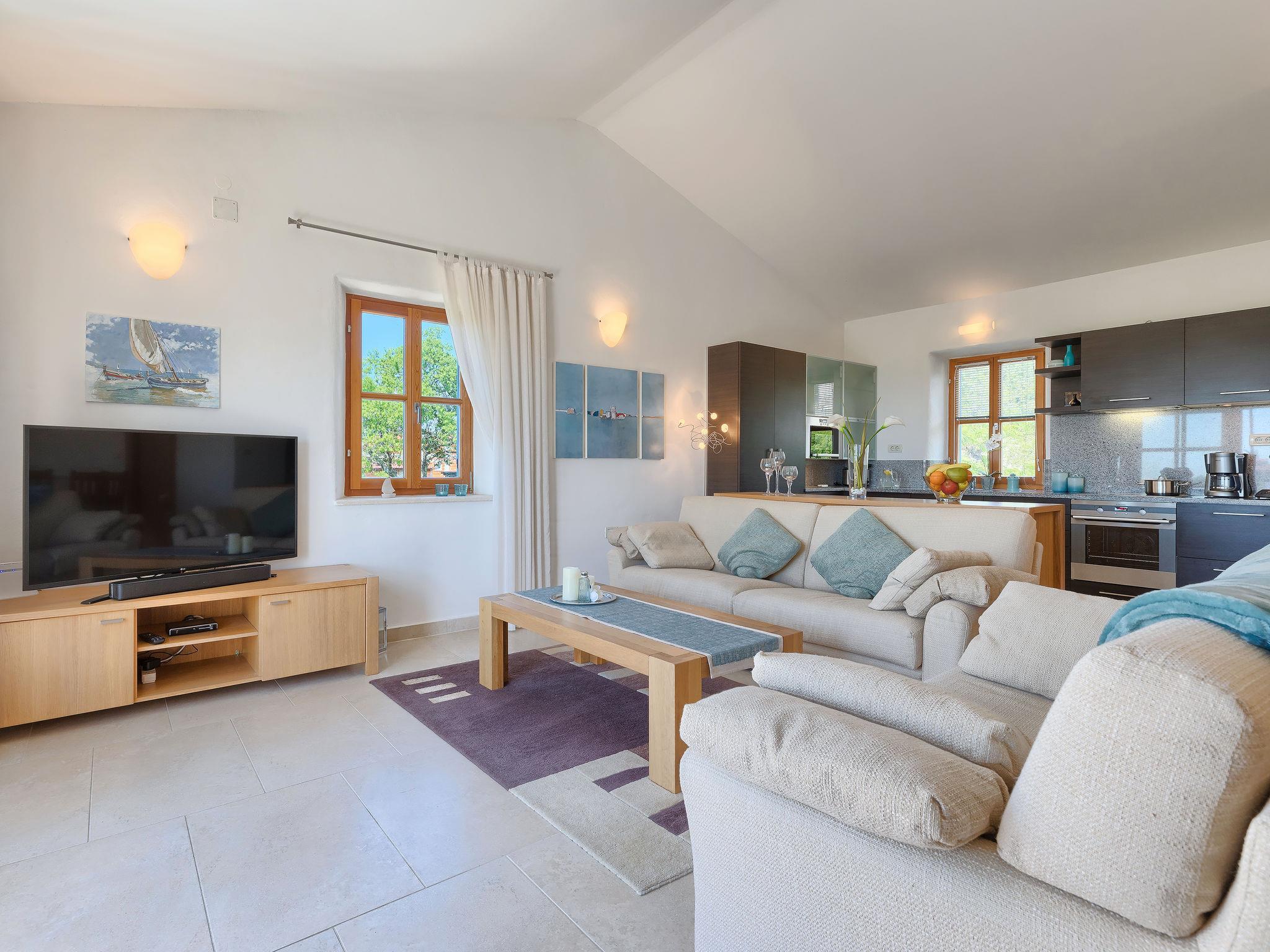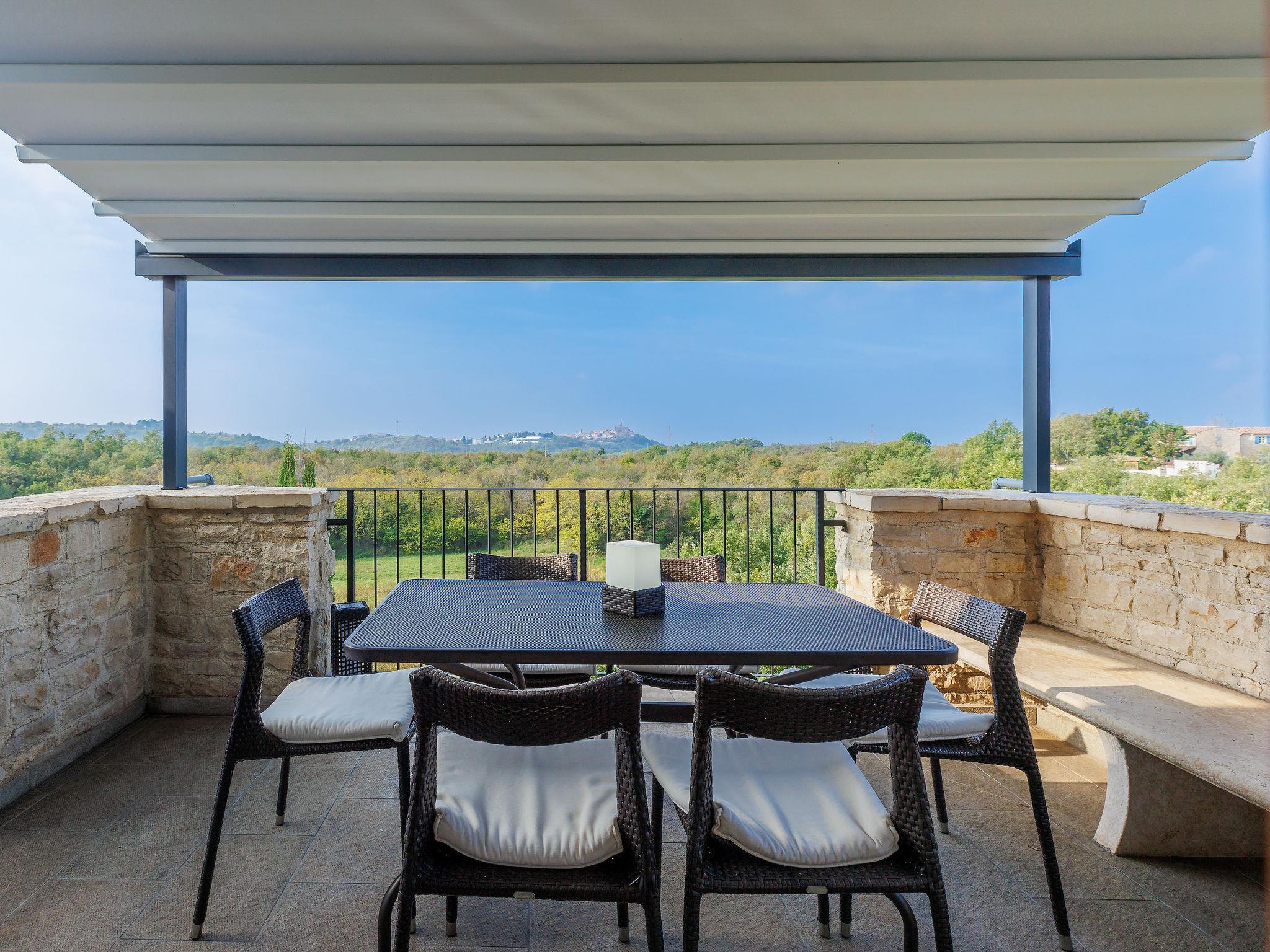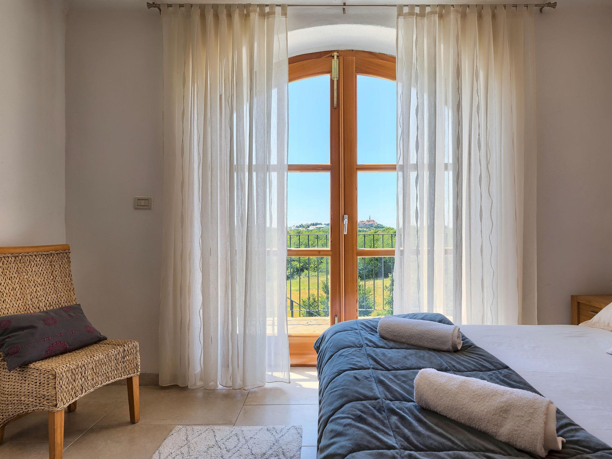 Schönes Reihenhaus "Bibali", auf 2 Stockwerken. Im Weiler Bibali, 2 km vom Zentrum von Buje, ruhige, sonnige Lage am Hang, 12 km vom Meer. Zur Mitbenutzung: Grundstück 2'000 m2 (eingezäunt), Garten, Schwimmbad eckig (11 x 8 m, 100 - 150 cm tief, saisonale Verfügbarkeit: 15.Apr. - 15.Okt.) mit Innentreppe. Aussendusche. Im Hause: Internetzugang, Waschmaschine, Wäschetrockner. Parkplatz beim Haus auf dem Grundstück. Einkaufsgeschäft 2 km, Restaurant 2 km, Bushaltestelle 2 km, Bahnstation 28 km, Kieselstrand 12 km. Golfplatz (18 Loch) 17 km, Tennis 1 km, Reitstall 5 km, Wanderwege ab Haus 1 km, Radweg 1 km. Die Nachbarschaft ist sehr lärmempfindlich. Ruhe und gutes Benehmen wird erwartet.