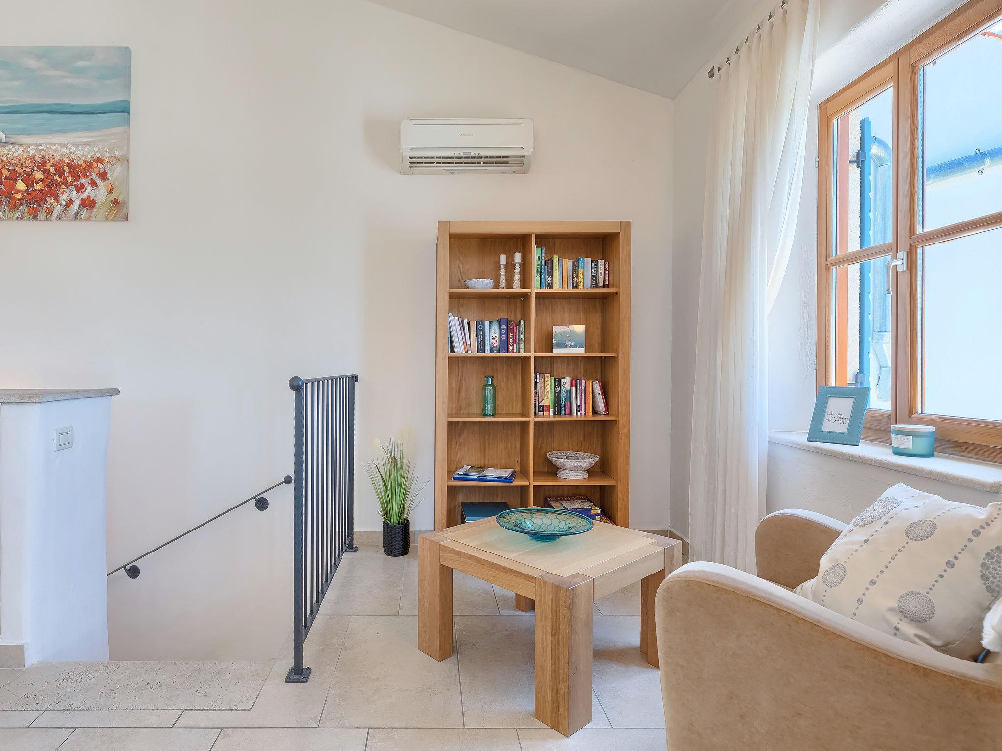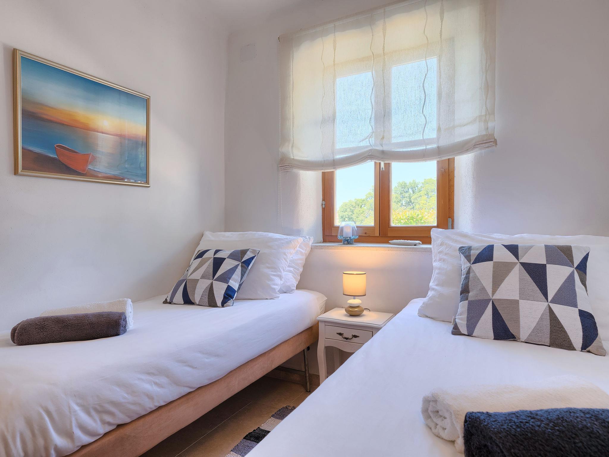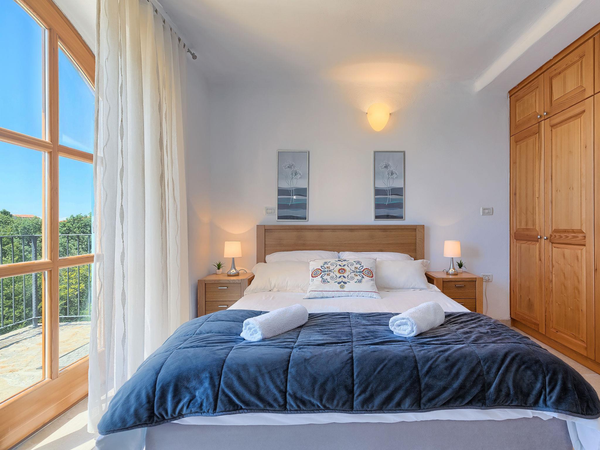 "Nini", 4-Zimmer-Reihenhaus 101 m2 auf 2 Stockwerken. Geschmackvoll und gemütlich eingerichtet: 1 Zimmer mit 1 franz. Bett (160 cm, Länge 200 cm), Klimaanlage. Ausgang zur Terrasse. 2 Zimmer, jedes Zimmer mit 2 Betten (80 cm, Länge 200 cm). Dusche/WC, Bad/Dusche/WC. Obergeschoss: Wohn-/Esszimmer 50 m2 mit Sat-TV (Flachbildschirm), Klimaanlage. Ausgang zur Terrasse. Offene Küche (Backofen, Geschirrspüler, 4 Glaskeramikplatten, Mikrowelle, Tiefkühler). Sep. WC. Bodenheizung. Terrasse 20 m2, Terrasse 12 m2. Terrassenmöbel, Liegestühle. Fernsicht auf das Meer. Zur Verfügung: Safe. Internet (Wireless LAN, gratis).