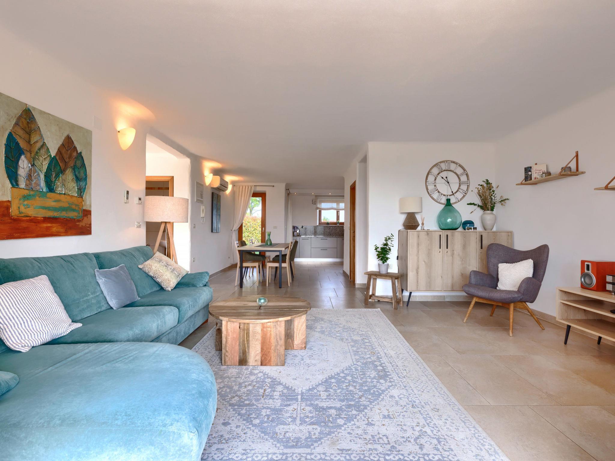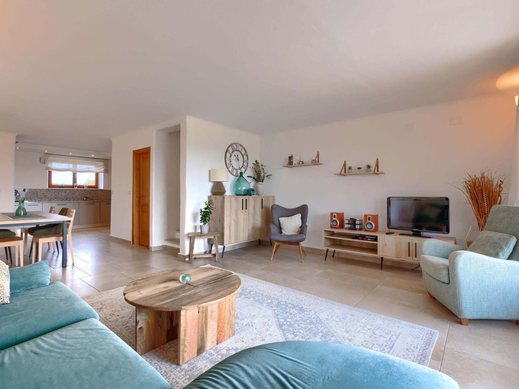 "Bullea", 4-Zimmer-Reihenhaus 130 m2 auf 2 Stockwerken. Schön und gemütlich eingerichtet: Wohn-/Esszimmer 45 m2 mit Sat-TV (Flachbildschirm), DVD und Klimaanlage. Ausgang zur Terrasse. Offene Küche (Backofen, Geschirrspüler, 4 Glaskeramikplatten, Mikrowelle, Tiefkühler). Ausgang zum Garten, zur Terrasse. Sep. WC. Obergeschoss: 1 Zimmer mit 2 Betten (80 cm, Länge 200 cm), Klimaanlage. Ausgang zum Balkon. 1 Zimmer mit begehbarem Kleiderschrank mit 2 Betten (80 cm, Länge 200 cm), Klimaanlage. 1 Zimmer mit 1 franz. Bett (160 cm, Länge 200 cm), Bad/WC und Klimaanlage. Ausgang zur Terrasse. Bad/WC. Balkon 2 m2, Terrasse 10 m2, überdacht, 2 Terrassen 8 m2, Garten 20 m2. Terrassenmöbel, Gartengrill (mobil), Liegestühle. Sicht auf das Schwimmbad und die Landschaft. Zur Verfügung: Waschmaschine. Internet (Wireless LAN, gratis).