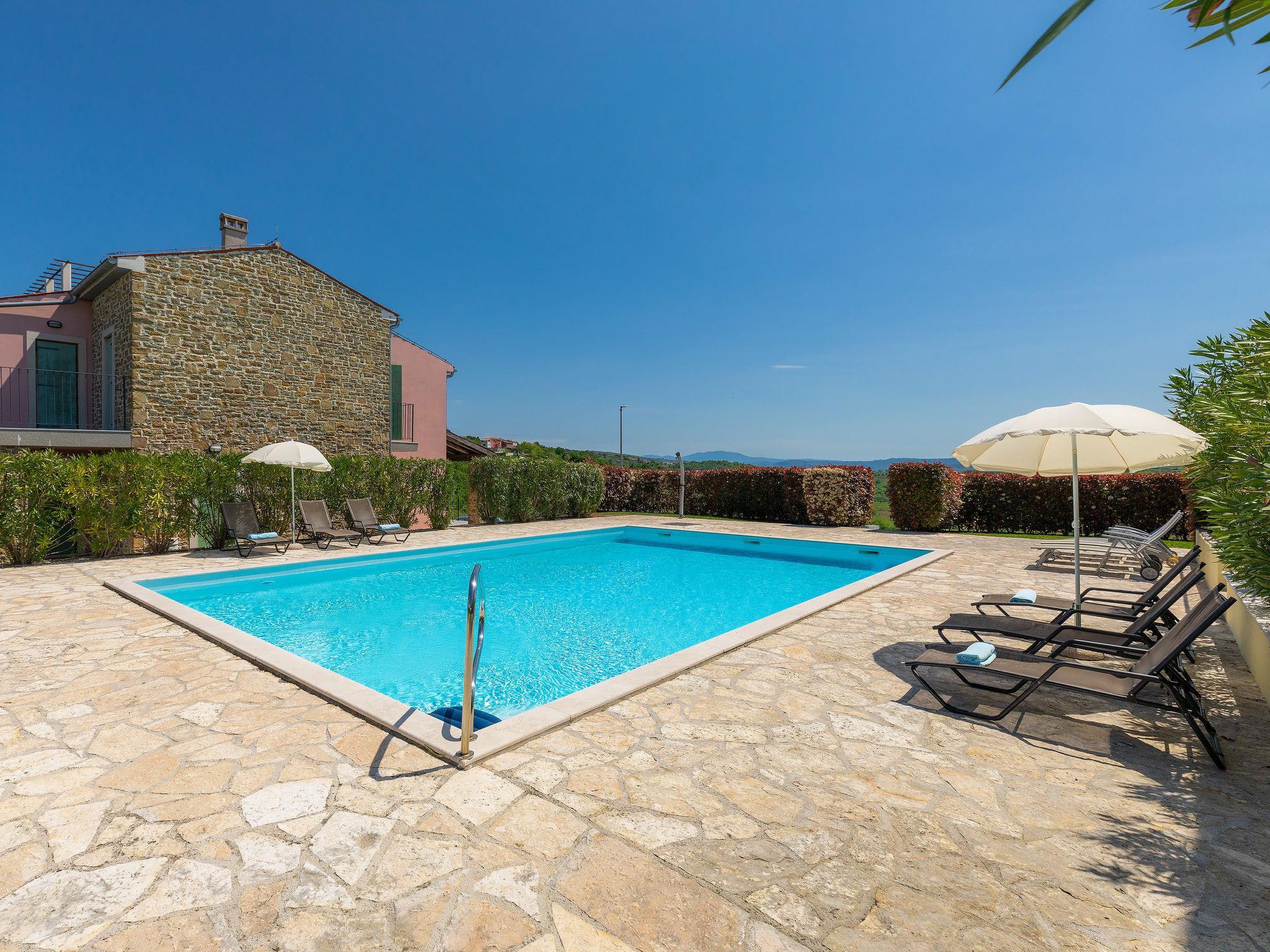 Schönes Reihenhaus. Im Weiler Baredine, 4 km vom Zentrum von Buje, ruhige, sonnige, erhöhte Lage, 17 km vom Meer. Zur Mitbenutzung: Grundstück 500 m2, Garten, Schwimmbad eckig (11 x 8 m, 100 - 150 cm tief, saisonale Verfügbarkeit: 15.Mai. - 15.Sep.) mit Innentreppe. Aussendusche, Grill. Im Hause: Internetzugang. Parkplatz beim Haus auf dem Grundstück. Einkaufsgeschäft 4 km, Restaurant 1 km, Bushaltestelle 4 km, Bahnstation 33 km, Kieselstrand 17 km. Tennis 16 km, Sportzentrum 16 km, Wanderwege ab Haus 1 km, Radweg 1 km. Nahe gelegene Sehenswürdigkeiten: Aquapark 19 km.