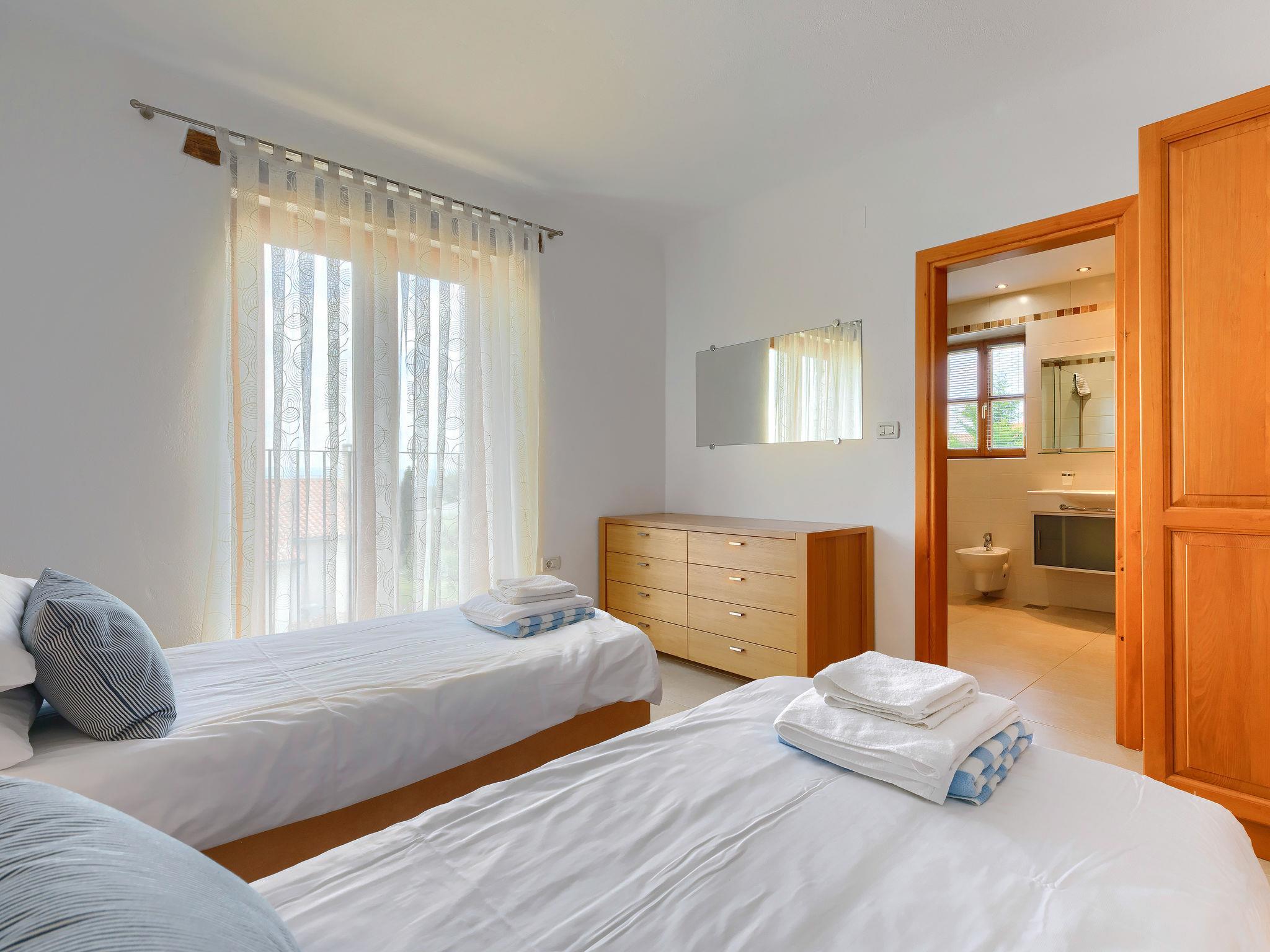 6-Zimmer-Villa 250 m2 auf 2 Stockwerken. Wohn-/Esszimmer 70 m2 mit Sat-TV (Flachbildschirm), DVD und Klimaanlage. Ausgang zur Terrasse. 1 Zimmer mit 2 Betten (80 cm, Länge 200 cm), Dusche/Bidet/WC und Klimaanlage. Offene Küche (Backofen, Geschirrspüler, 4 Glaskeramikplatten, Mikrowelle, Tiefkühler). Sep. WC. Obergeschoss: 1 Zimmer mit 1 franz. Bett (160 cm, Länge 200 cm), Bad/WC und Klimaanlage. 1 Zimmer mit 2 Betten (80 cm, Länge 200 cm), Dusche/WC und Klimaanlage. 1 Zimmer mit 2 Betten (80 cm, Länge 200 cm), Klimaanlage. Ausgang zur Terrasse. 1 Zimmer mit 1 franz. Bett (160 cm, Länge 200 cm), Klimaanlage. Ausgang zur Terrasse. Dusche/WC. Terrasse 20 m2 teilweise überdacht, Terrasse 10 m2. Terrassenmöbel, Liegestühle. Sicht auf das Schwimmbad und die Landschaft. Zur Verfügung: Safe. Internet (Wireless LAN, gratis).