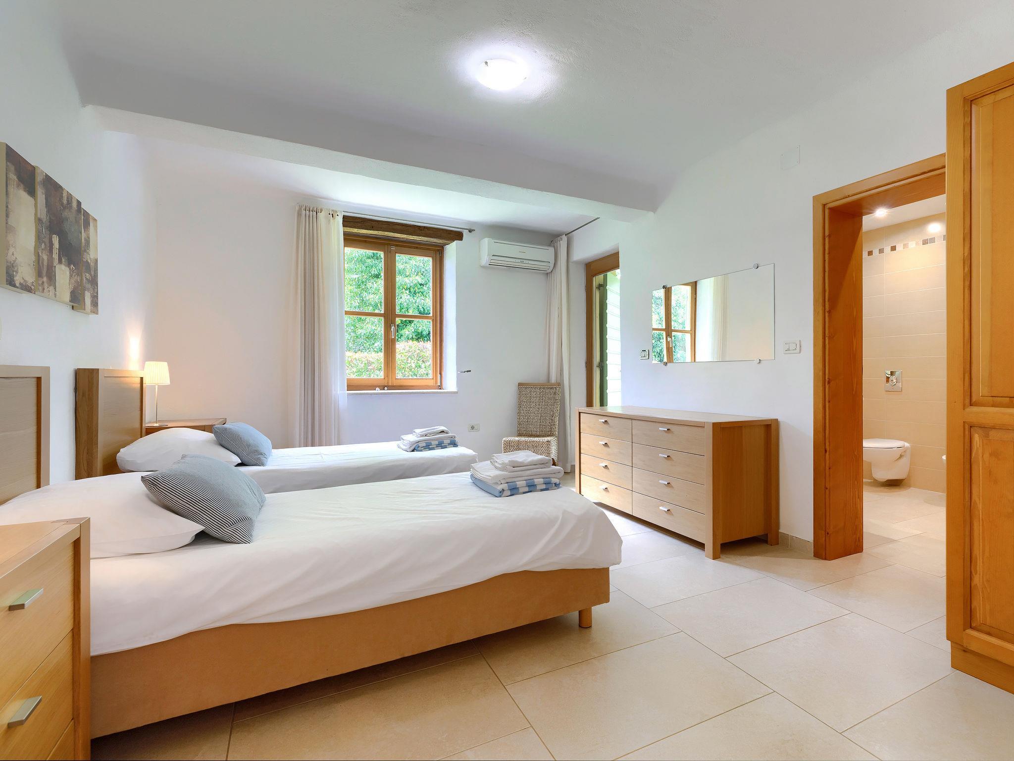 Schöne Villa "Remington", auf 2 Stockwerken. Im Weiler Baredine, 4 km vom Zentrum von Buje, ruhige, sonnige, erhöhte Lage, 17 km vom Meer. Zur Alleinbenutzung: Grundstück 1'020 m2, schöner Garten, Schwimmbad eckig (8 x 4 m, 100 - 150 cm tief, saisonale Verfügbarkeit: 25.Apr. - 13.Okt.) mit Innentreppe. Grill. Im Hause: Internetzugang, Waschmaschine. Parkplatz beim Haus auf dem Grundstück. Einkaufsgeschäft 4 km, Restaurant 1 km, Bushaltestelle 4 km, Bahnstation 33 km, Kieselstrand 17 km. Tennis 16 km, Sportzentrum 16 km, Wanderwege ab Haus 1 km, Radweg 1 km. Nahe gelegene Sehenswürdigkeiten: Aquapark 19 km. Der Besitzer akzeptiert keine Jugendgruppen. Die Nachbarschaft ist sehr lärmempfindlich. Ruhe und gutes Benehmen wird erwartet.