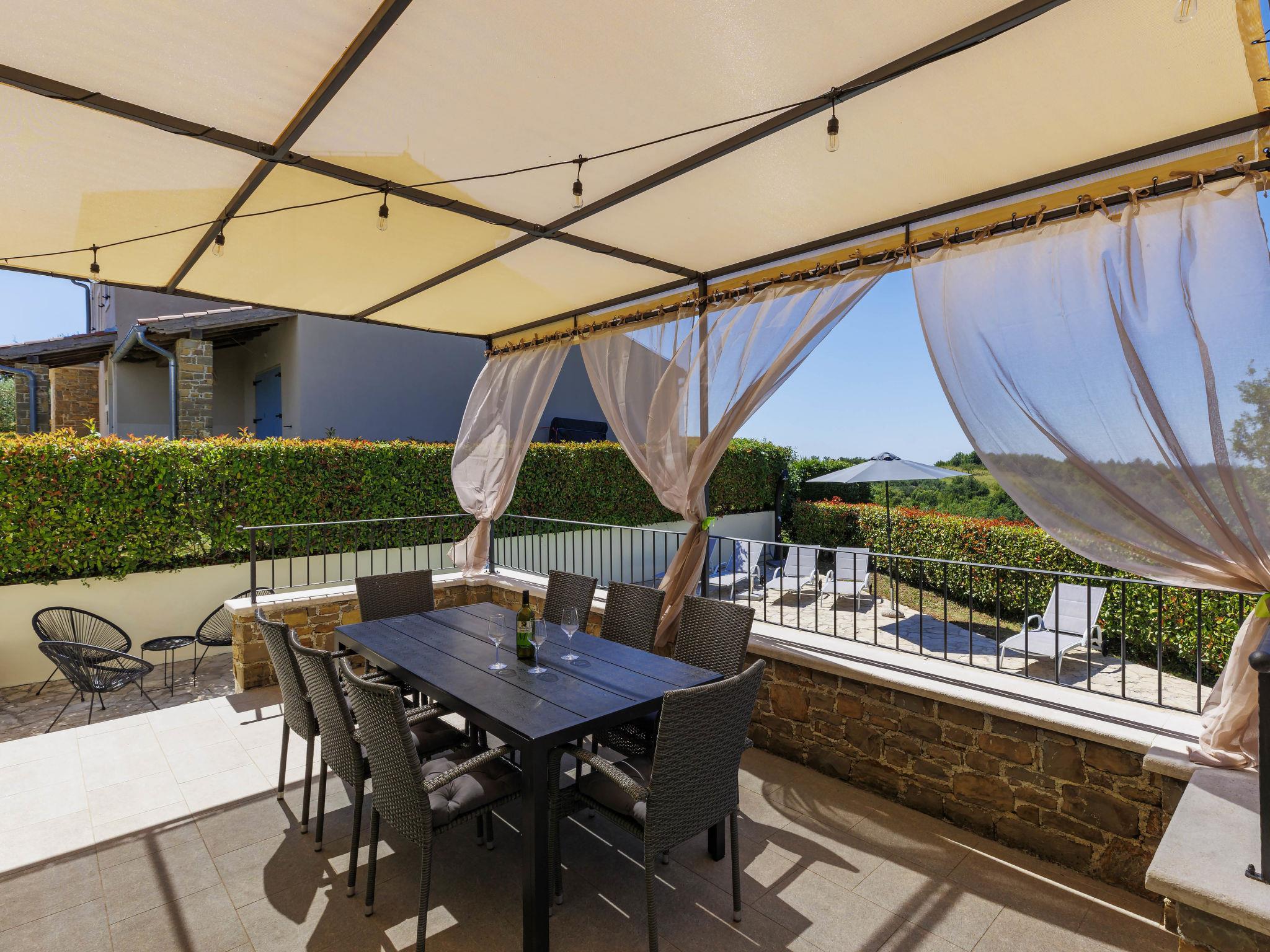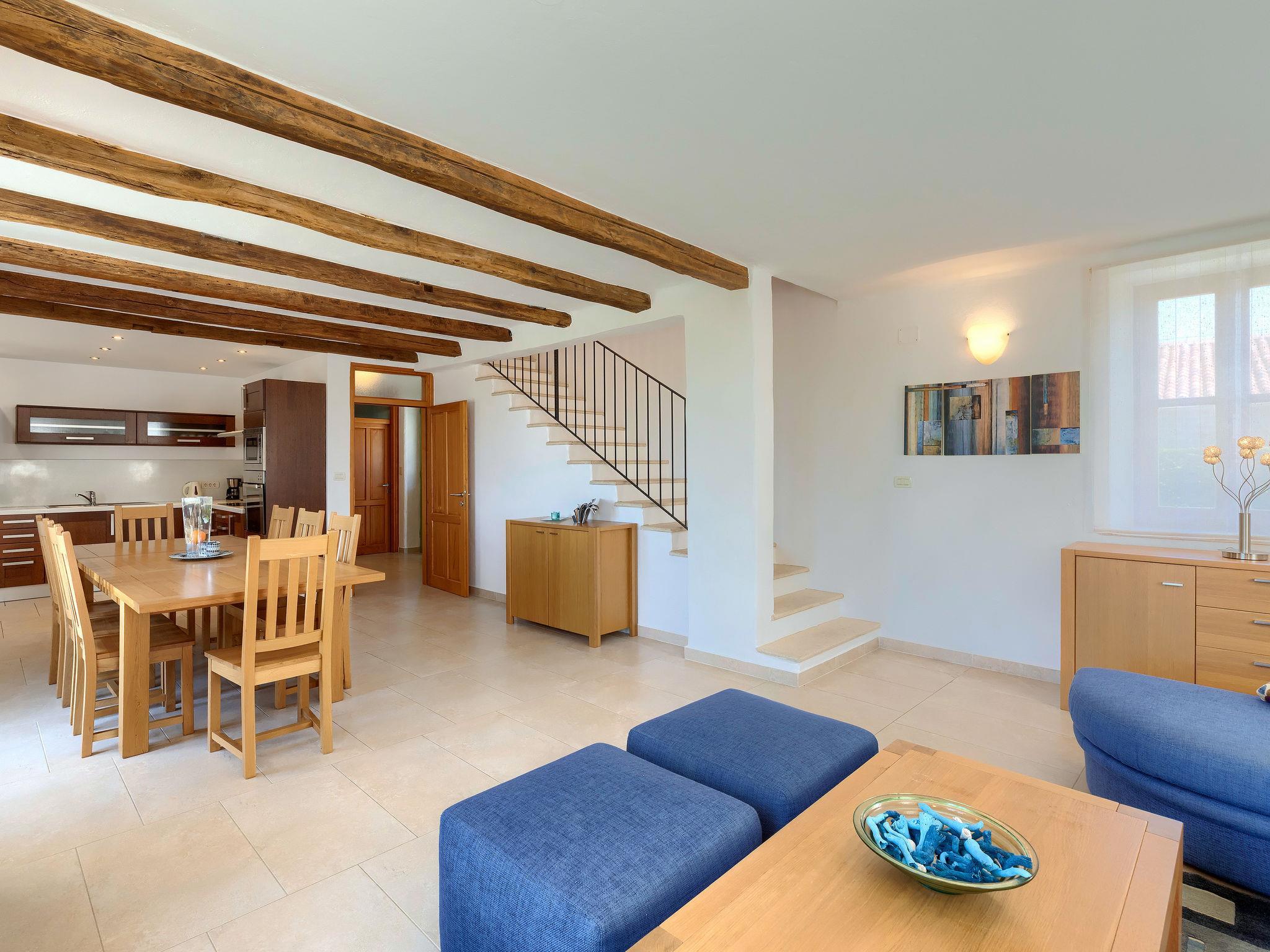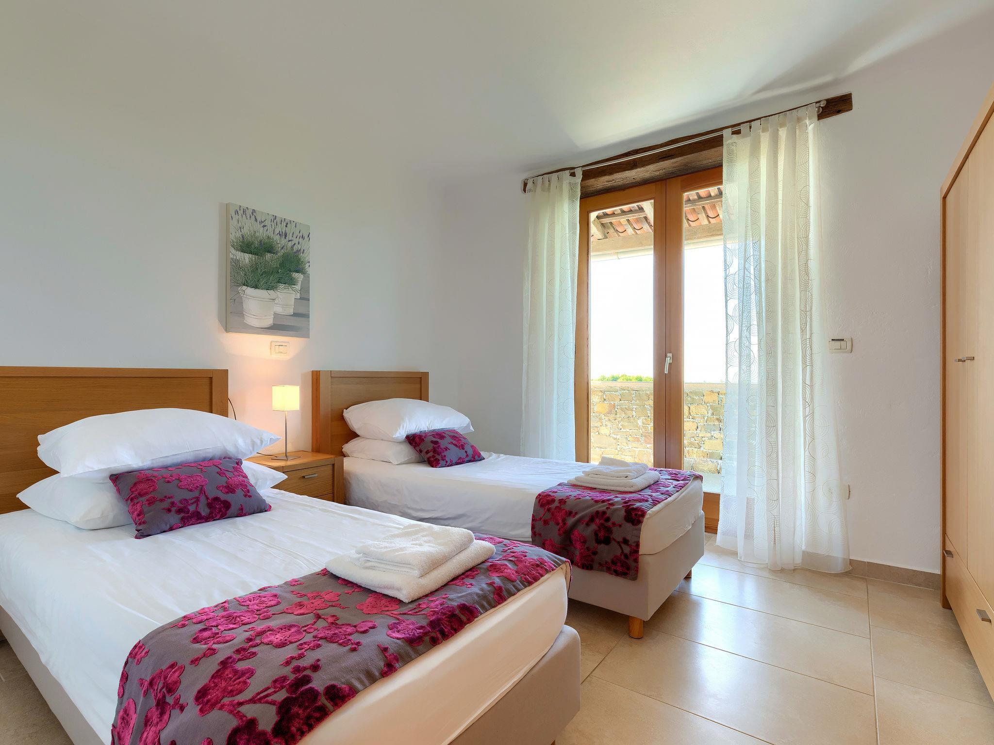 Schöne Villa "Morgan", auf 2 Stockwerken. Im Weiler Baredine, 4 km vom Zentrum von Buje, ruhige, sonnige, erhöhte Lage, 17 km vom Meer. Zur Alleinbenutzung: Grundstück 300 m2, kleiner Garten mit Rasen, Schwimmbad eckig, beheizt (8 x 4 m, 140 cm tief, saisonale Verfügbarkeit: 15.Apr. - 15.Okt.) mit Innentreppe. Aussendusche. Im Hause: Internetzugang, Waschmaschine, Wäschetrockner. Parkplatz beim Haus auf dem Grundstück. Einkaufsgeschäft 4 km, Restaurant 1 km, Bushaltestelle 4 km, Bahnstation 33 km, Kieselstrand 17 km. Tennis 16 km, Sportzentrum 16 km, Wanderwege ab Haus 1 km, Radweg 1 km. Nahe gelegene Sehenswürdigkeiten: Aquapark 19 km.
