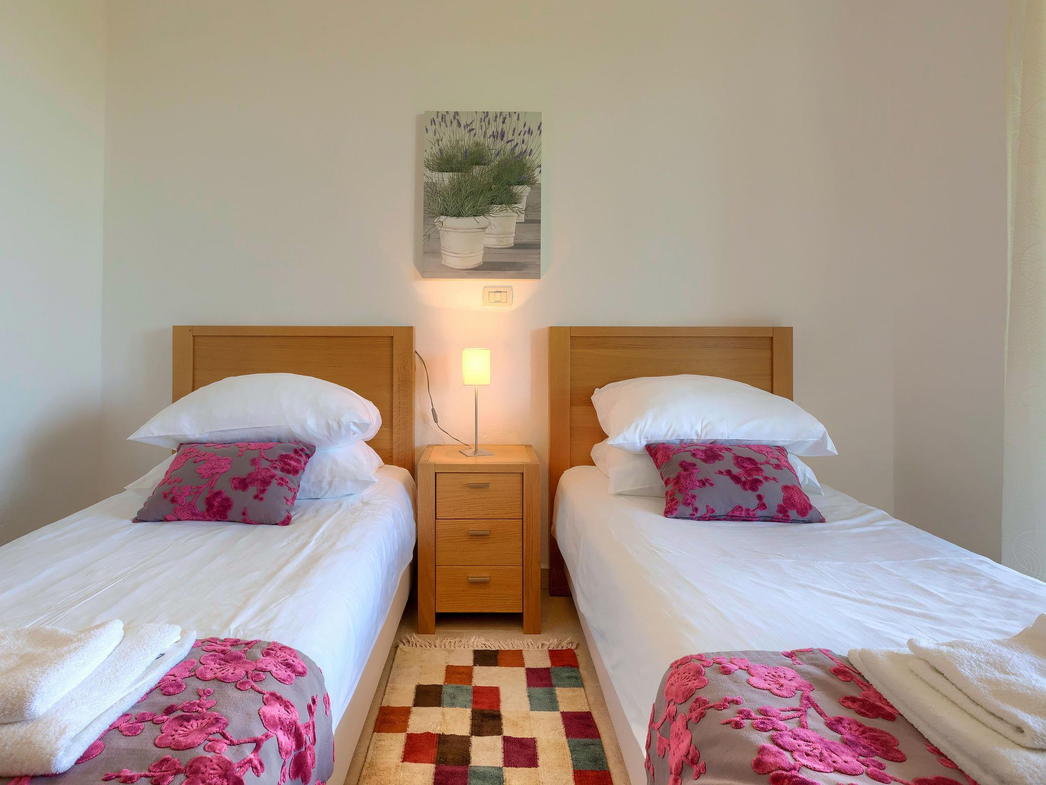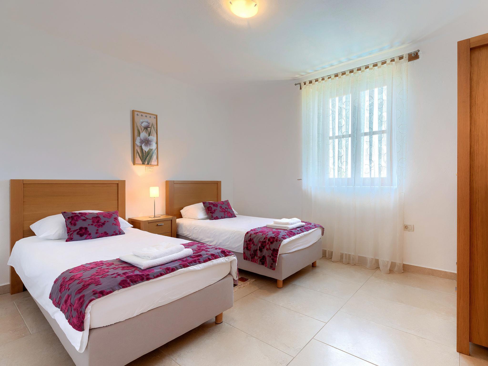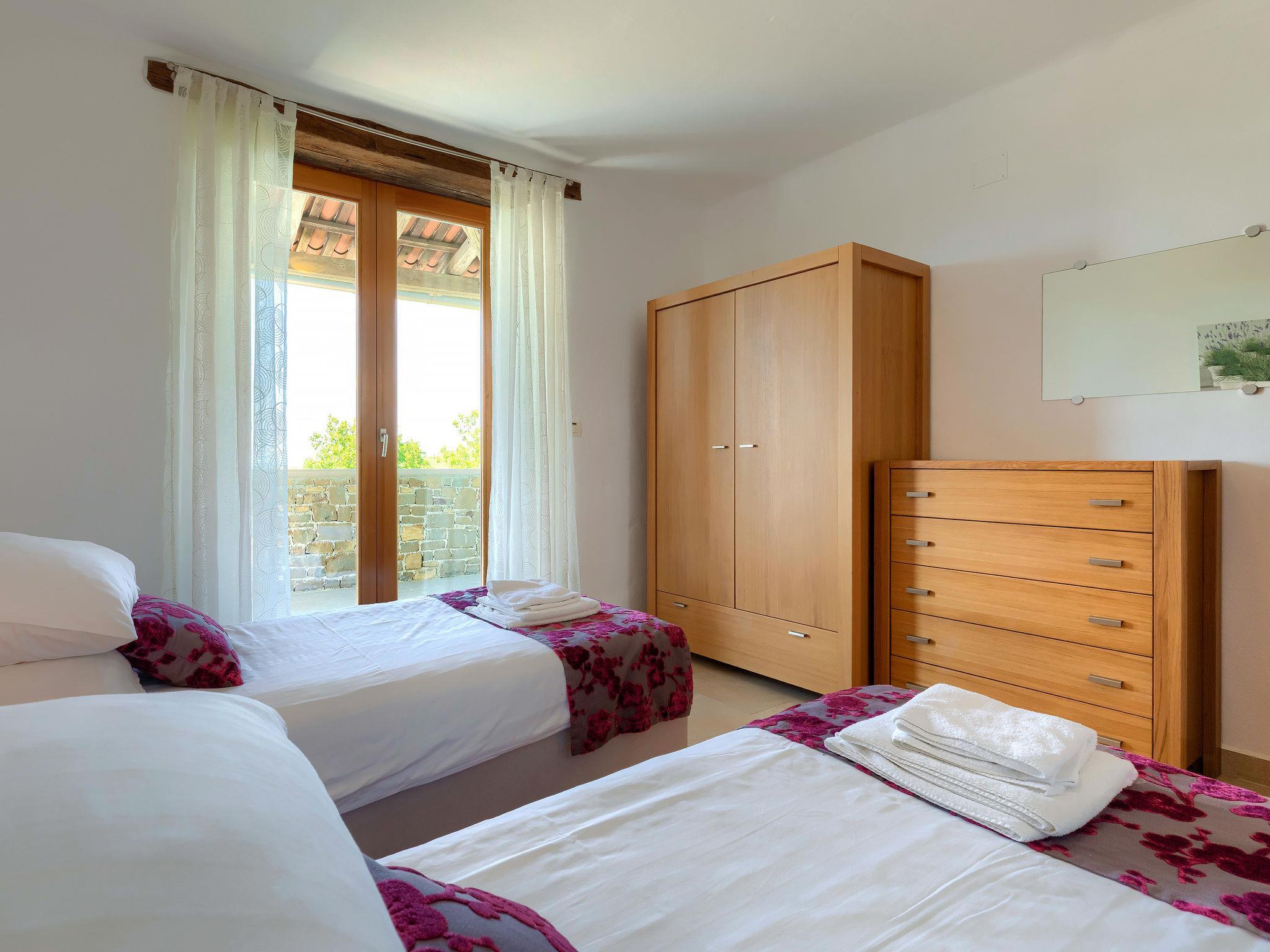 5-Zimmer-Villa 148 m2 auf 2 Stockwerken. Schön und gemütlich eingerichtet: Wohn-/Esszimmer mit Sat-TV (Flachbildschirm), DVD und Klimaanlage. Ausgang zur Terrasse. 1 Zimmer mit 1 franz. Bett (160 cm, Länge 200 cm), Dusche/WC und Klimaanlage. Ausgang zur Terrasse. Offene Küche (Backofen, Geschirrspüler, 4 Glaskeramikplatten, Mikrowelle, Tiefkühler, elektrische Kaffeemaschine). Sep. WC. Obergeschoss: 1 Zimmer mit 1 franz. Bett (160 cm, Länge 200 cm), Dusche/WC und Klimaanlage. 1 Zimmer mit 2 Betten (80 cm, Länge 200 cm), Klimaanlage. 1 Zimmer mit 2 Betten (80 cm, Länge 200 cm), Klimaanlage. Ausgang zur Terrasse. Bad/Dusche/Bidet/WC. Bodenheizung. Terrasse 15 m2, überdacht, 2 Terrassen 8 m2, überdacht. Terrassenmöbel, Gartengrill (mobil), Liegestühle. Sehr schöne Sicht auf das Schwimmbad und die Landschaft. Zur Verfügung: Safe, Haartrockner. Internet (Wireless LAN, gratis).