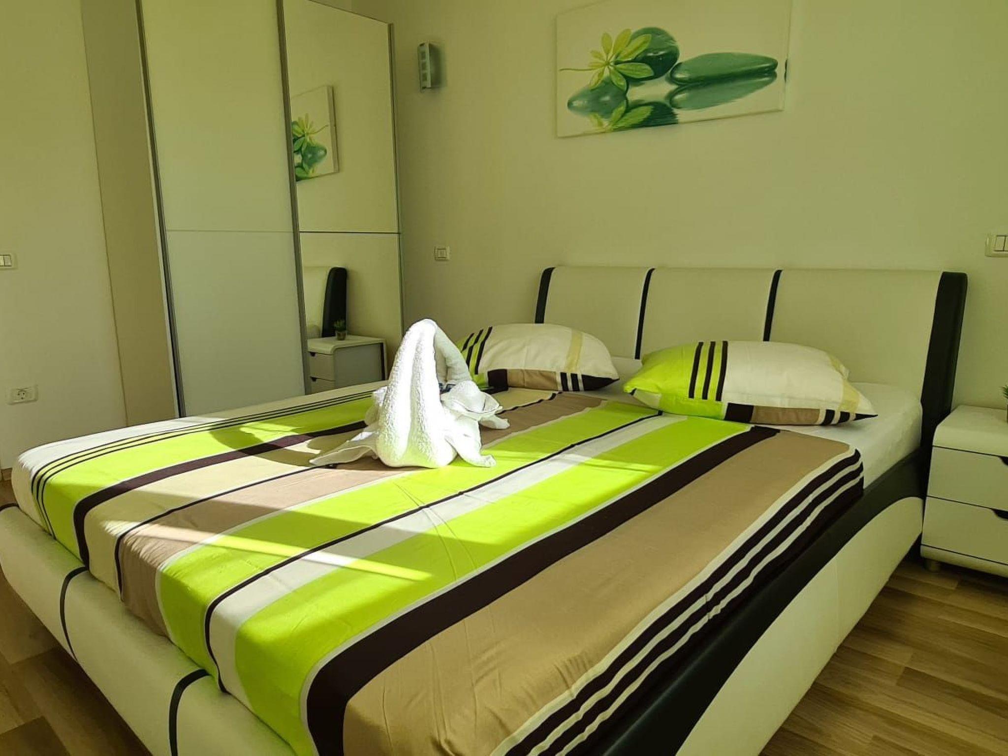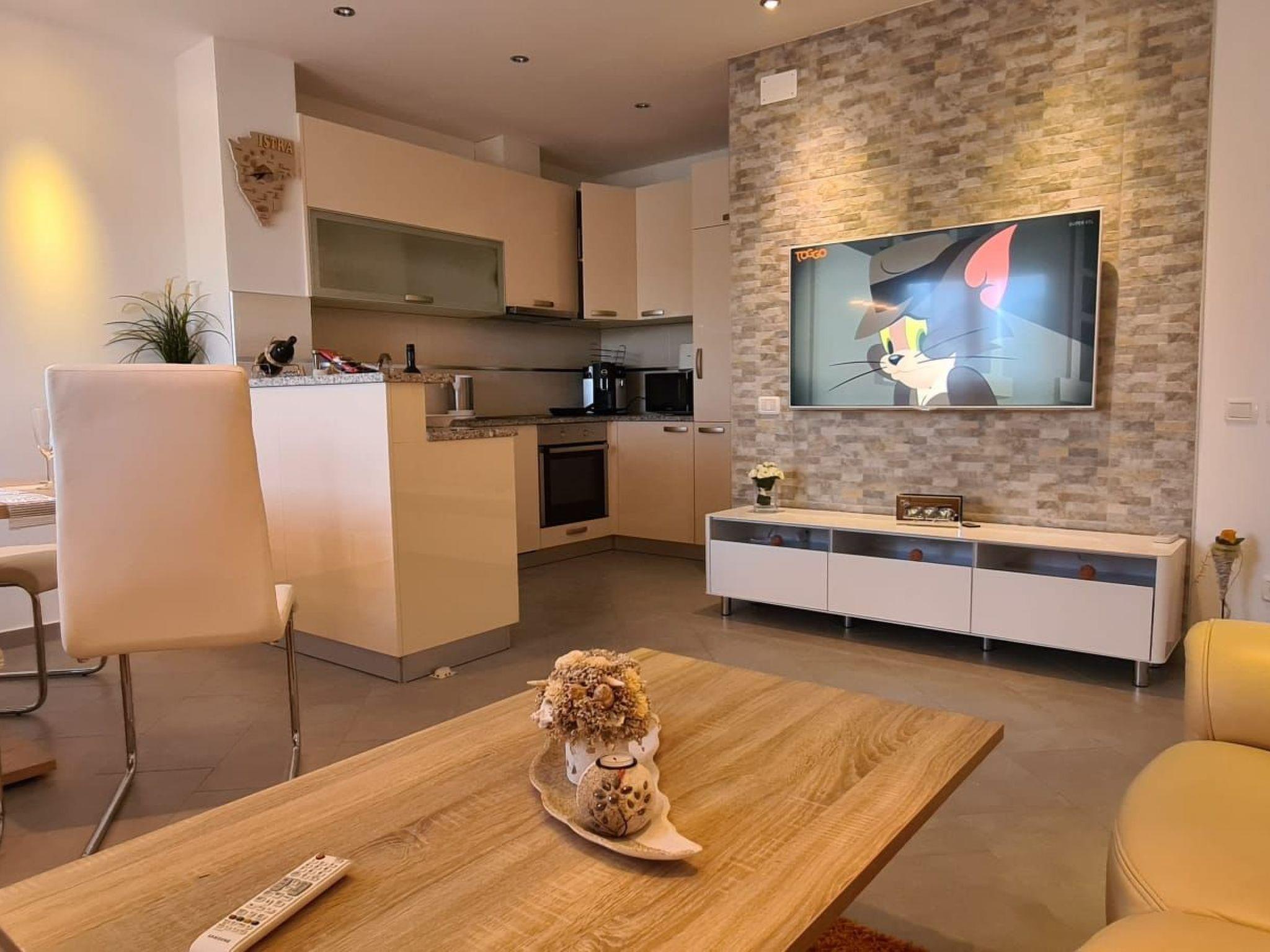 Villa Kasandra - Ihr perfektes Urlaubsdomizil in IstrienEntdecken Sie die traumhafte Landschaft Istriens und genießen Sie einen unvergesslichen Aufenthalt in einer unserer drei komfortabel eingerichteten Ferienwohnungen in der Villa Kasandra.Lage:- Ruhig gelegenes Apartment in Kastel, einem malerischen Dorf in Istrien- 6 Kilometer von Buje entfernt, einer lebhaften Stadt mit vielfältigen Angeboten- 12 Kilometer von Umag entfernt, einem beliebten Badeort mit schönen SträndenIn der Nähe des Dorfzentrums:- Lebensmittelläden für die tägliche Grundversorgung- Restaurants mit traditioneller istrischer Küche- Idealer Ausgangspunkt für:- Ausflüge in die Umgebung- Radtouren- Strandtage an der AdriaDie drei Wohnungen verfügen über jeweils:- Zwei Schlafzimmer mit Nachttischen, Lampen und Kleiderschränken- Modernes Badezimmer mit Dusche, WC, Waschbecken mit Unterschrank und Spiegelschrank- Voll ausgestattete Küche mit:- Granitplatte in zwei Wohnungen- Glaskeramikherd- Backofen- Spülmaschine- Kühlschrank- Gefrierfach- Mikrowelle- Wasserkocher- Kaffeemaschine- Toaster- Besteck- Geschirr- Pfannen- Töpfe- Gläser- Essbereich mit sechs Stühlen (App Ivan)- Essbereich mit vier Stühlen (App Denis)- Hochtisch mit vier Barhockern (App Sanja)- Direkter Zugang zur Terrasse (App Ivan,Sanja)- Balkon mit Meerblick (App Denis)- Klimaanlage und Bodenheizung- WLAN-Zugang- HandtücherZusätzliche Ausstattung:- Babybett auf Anfrage kostenlos- Gemeinschaftspool, ideal zum Abkühlen an heißen Tagen, Entspannen auf Liegestühlen und Spaß im Wasser- Drei separate Grillplätze, ideal für gemütliche Grillabende und Zubereitung von leckeren Speisen- Sechs Liegestühle zum Entspannen und Sonnenbaden- Bettwäsche und Handtücher werden gestellt.- Rauchen ist in den Wohnungen nicht gestattet.Hinweis:- Der Pool ist von Mai-Oktober geöffnet- Bitte beachten Sie: Der Vermieter wohnt auf dem Grundstück und steht Ihnen bei Fragen gerne zur Verfügung.- Zahlreiche Wander- und Radwege in der Nähe zum Erkunden der wunderschönen Landschaft Istriens und Aktivurlaub in der Natur- Verschiedene Restaurants und Einkaufsmöglichkeiten in den umliegenden Orten zum Genießen der lokalen Küche und Besorgen von Souvenirs und Lebensmitteln- Sehenswürdigkeiten:- Buje: ca. 7 km: Altstadt mit venezianischer Architektur, Stadtmauern und Glockenturm- Umag: ca. 13 km: Badestrände, Sportangebote, ACI Marina- Grožnjan: ca. 22 km: Künstlerdorf mit mittelalterlichem Flair- Motovun: ca. 27 km: Bergdorf mit atemberaubendem Blick- Pula: ca. 60 km: Römisches Amphitheater, Augustustempel, Triumphbogen- Nationalparks Brijuni: ca. 70 km und Plitvicer Seen: ca. 140 km: Einzigartige Naturlandschaften