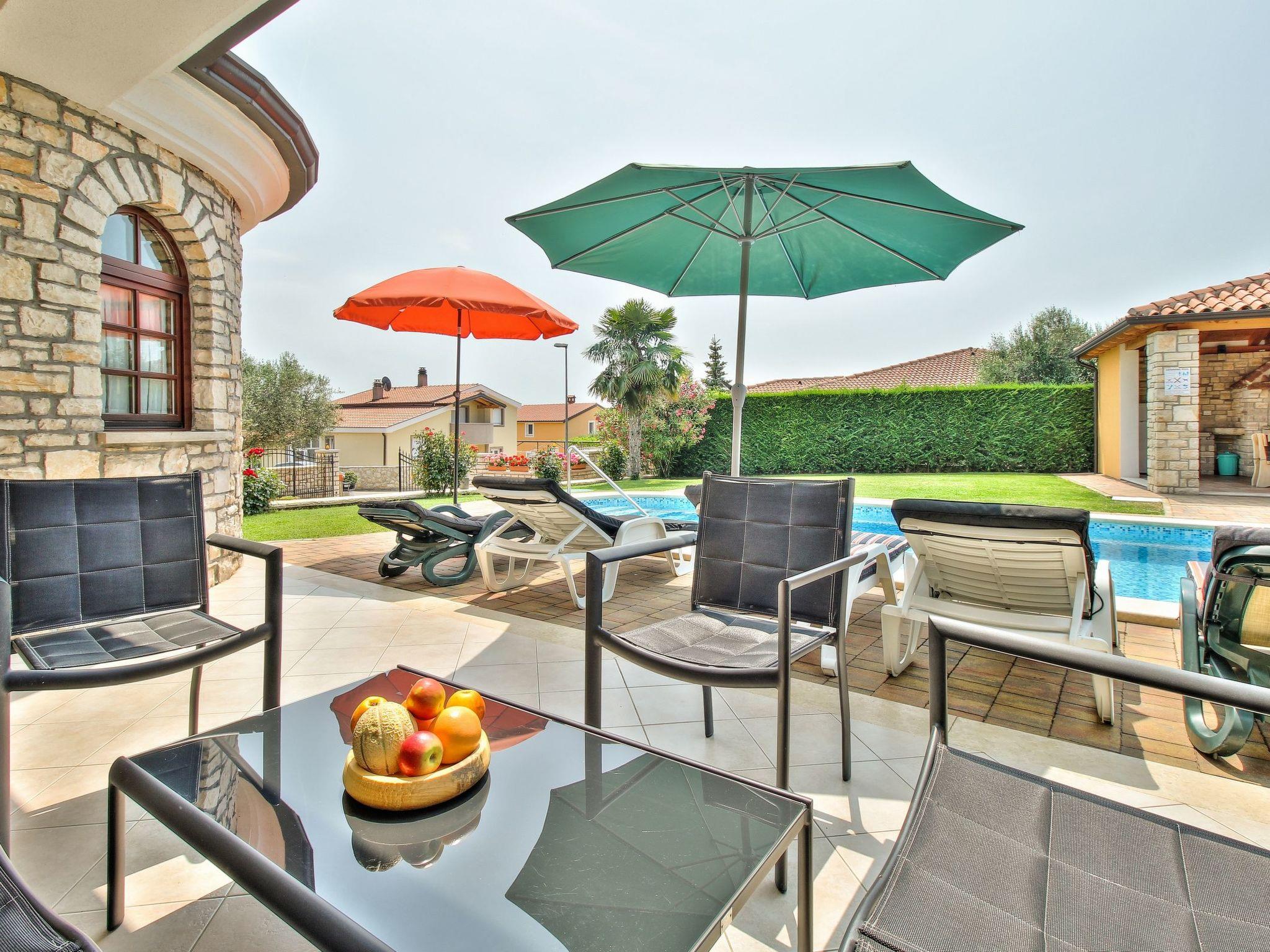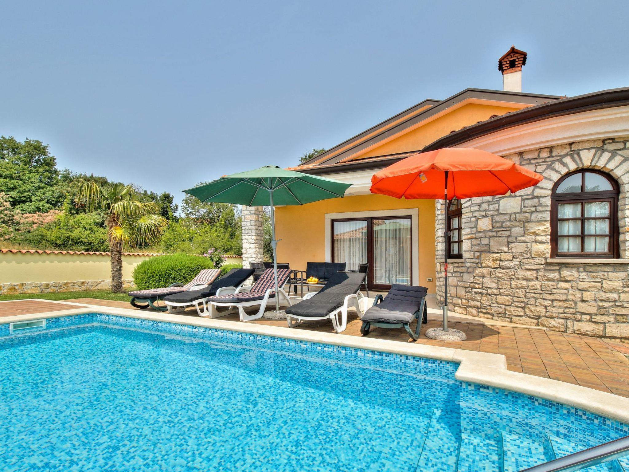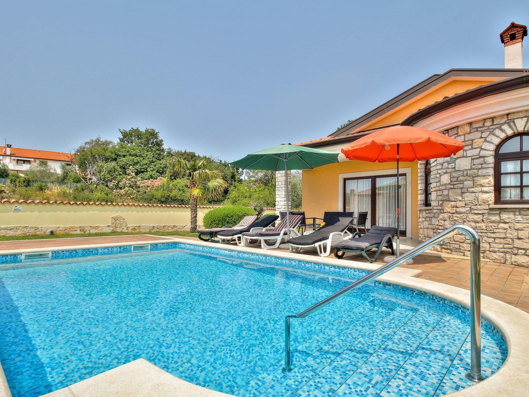 Im Erdgeschoss ist ein großer Wohnraum, eine Küche mit Esszimmer, zwei Schlafzimmer, ein Badezimmer und eine Toilette untergebracht. Im Obergeschoss befindet sich ein weiteres Schlafzimmer mit Bad und es ist durch einen separaten Eingang von außen zu betreten. Offene und mit Licht durchflutete Räume sind gemütlich und mit Liebe zum Detail eingerichtet.Ferienhaus mit Pool für 6+2 Personen (drei Schlafzimmer mit Doppelbetten, Schlafcouch für zwei Personen im Wohnzimmer). Modernes Ferienhaus in idyllischer Landschaft. Das Haus besitzt einen schönen Garten und ist mit bequemen Möbeln eingerichtet. Es ist auch gross genug für 2 - 3 Familien. Das Haus ist in Dorf Kastel 10 km von Umag
