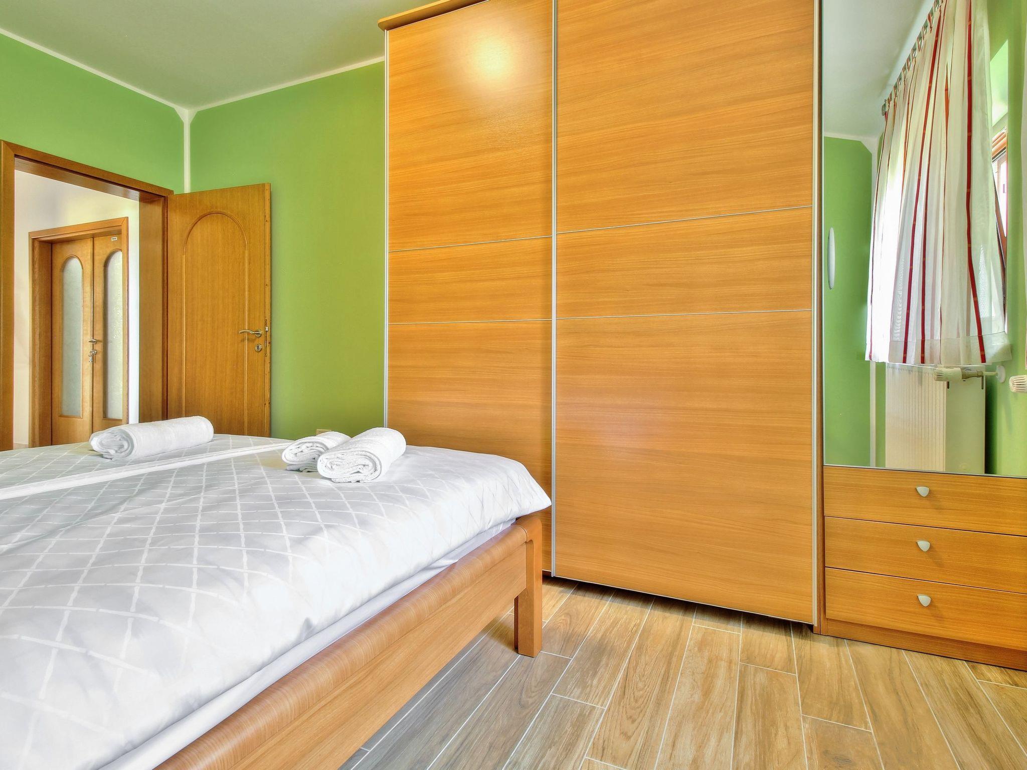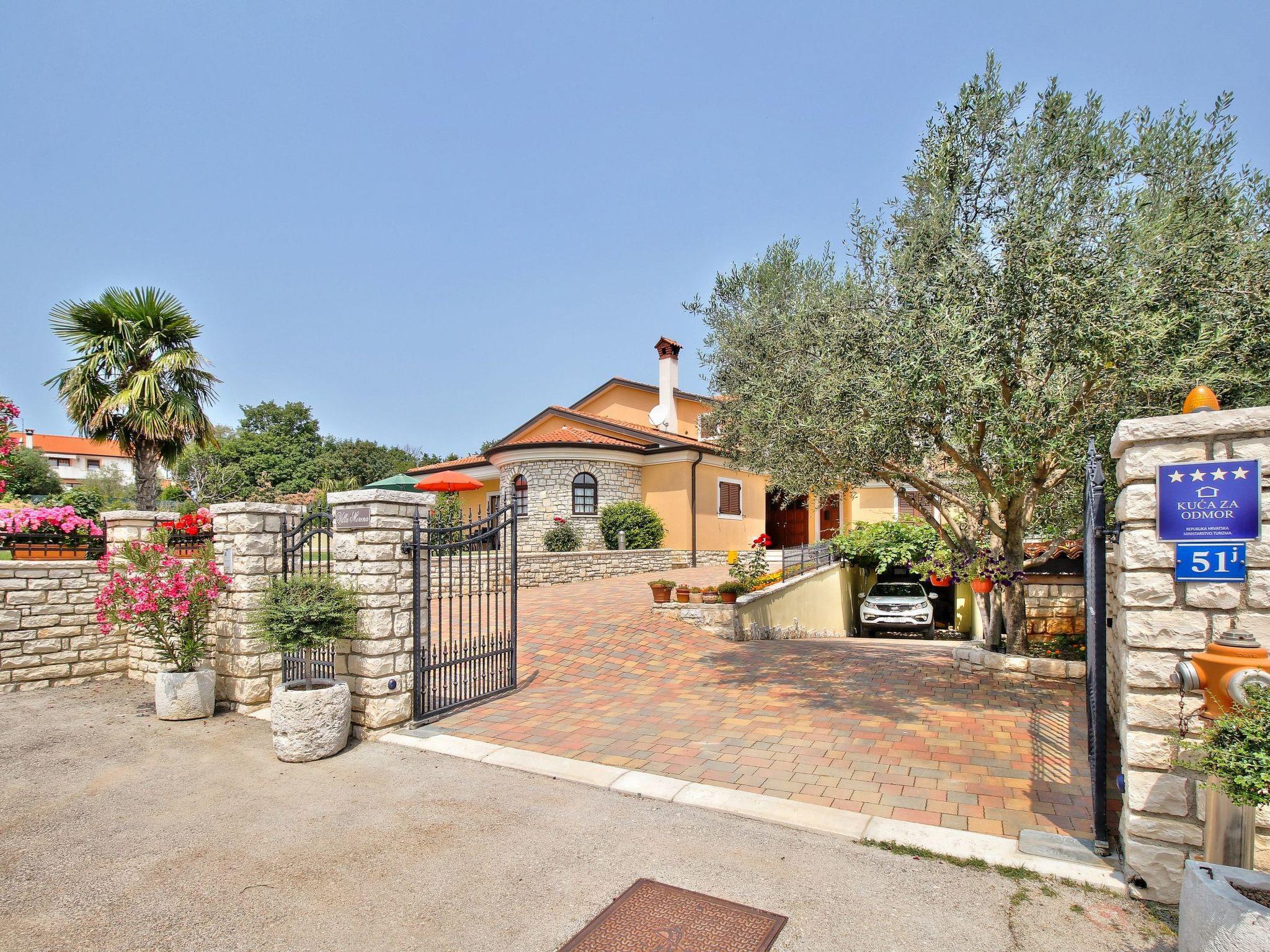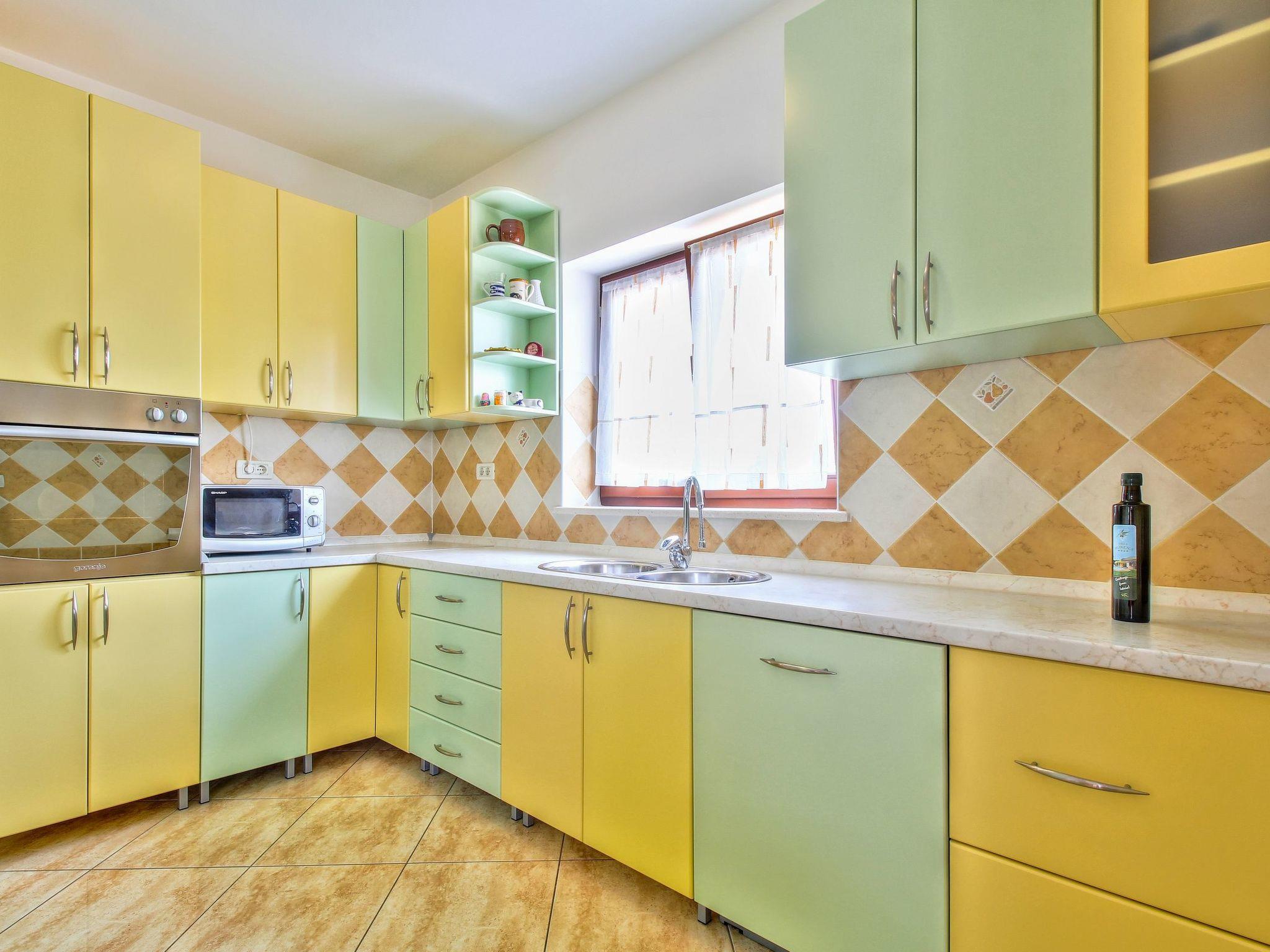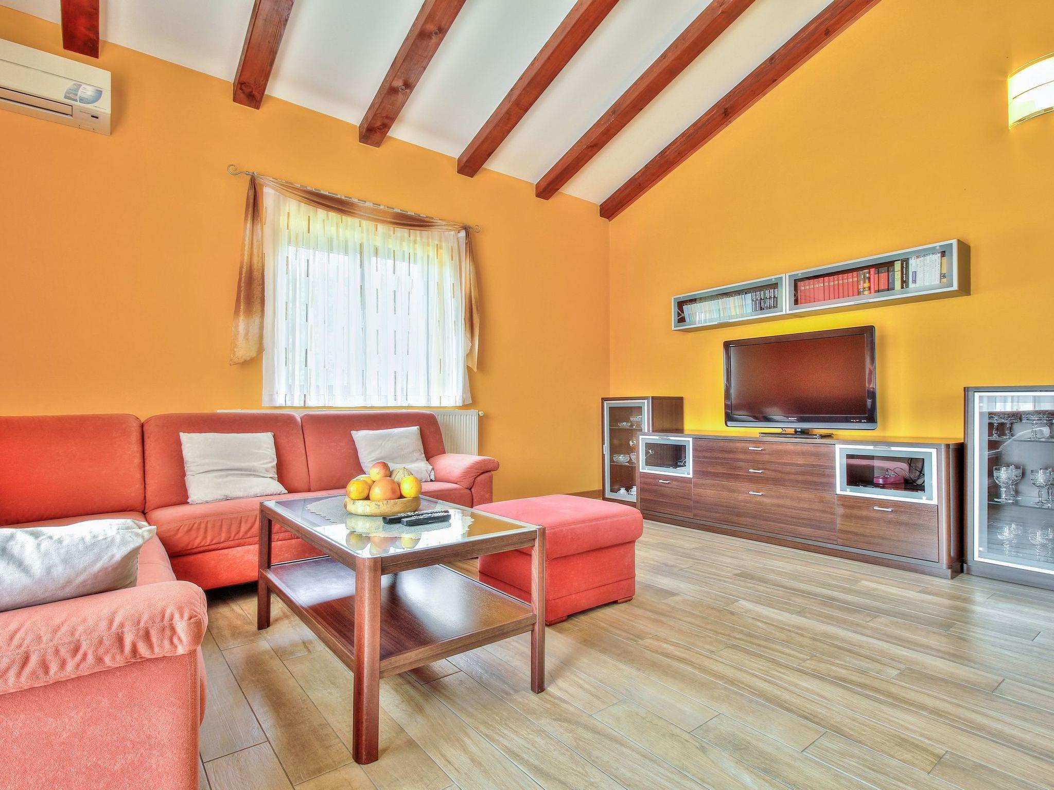 Im Erdgeschoss ist ein großer Wohnraum, eine Küche mit Esszimmer, zwei Schlafzimmer, ein Badezimmer und eine Toilette untergebracht. Im Obergeschoss befindet sich ein weiteres Schlafzimmer mit Bad und es ist durch einen separaten Eingang von außen zu betreten. Offene und mit Licht durchflutete Räume sind gemütlich und mit Liebe zum Detail eingerichtet.Ferienhaus mit Pool für 6+2 Personen (drei Schlafzimmer mit Doppelbetten, Schlafcouch für zwei Personen im Wohnzimmer). Modernes Ferienhaus in idyllischer Landschaft. Das Haus besitzt einen schönen Garten und ist mit bequemen Möbeln eingerichtet. Es ist auch gross genug für 2 - 3 Familien. Das Haus ist in Dorf Kastel 10 km von Umag