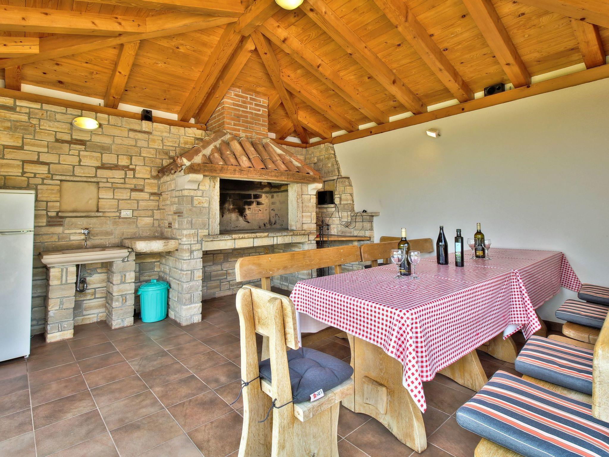 Im Außenbereich steht ein einladender Pool, in dem man entsprechende Erfrischung von der Sommerhitze findet. Außerdem haben Sie eine Außensolardusche und ein Gartenhaus zur Verfügung. Gesellige Urlaubsstunden kann man entweder beim Grillen im Garten oder in dem Gesellschaftraum mit offenem Kamin "ognjiste" und großem Esstisch verbringen.