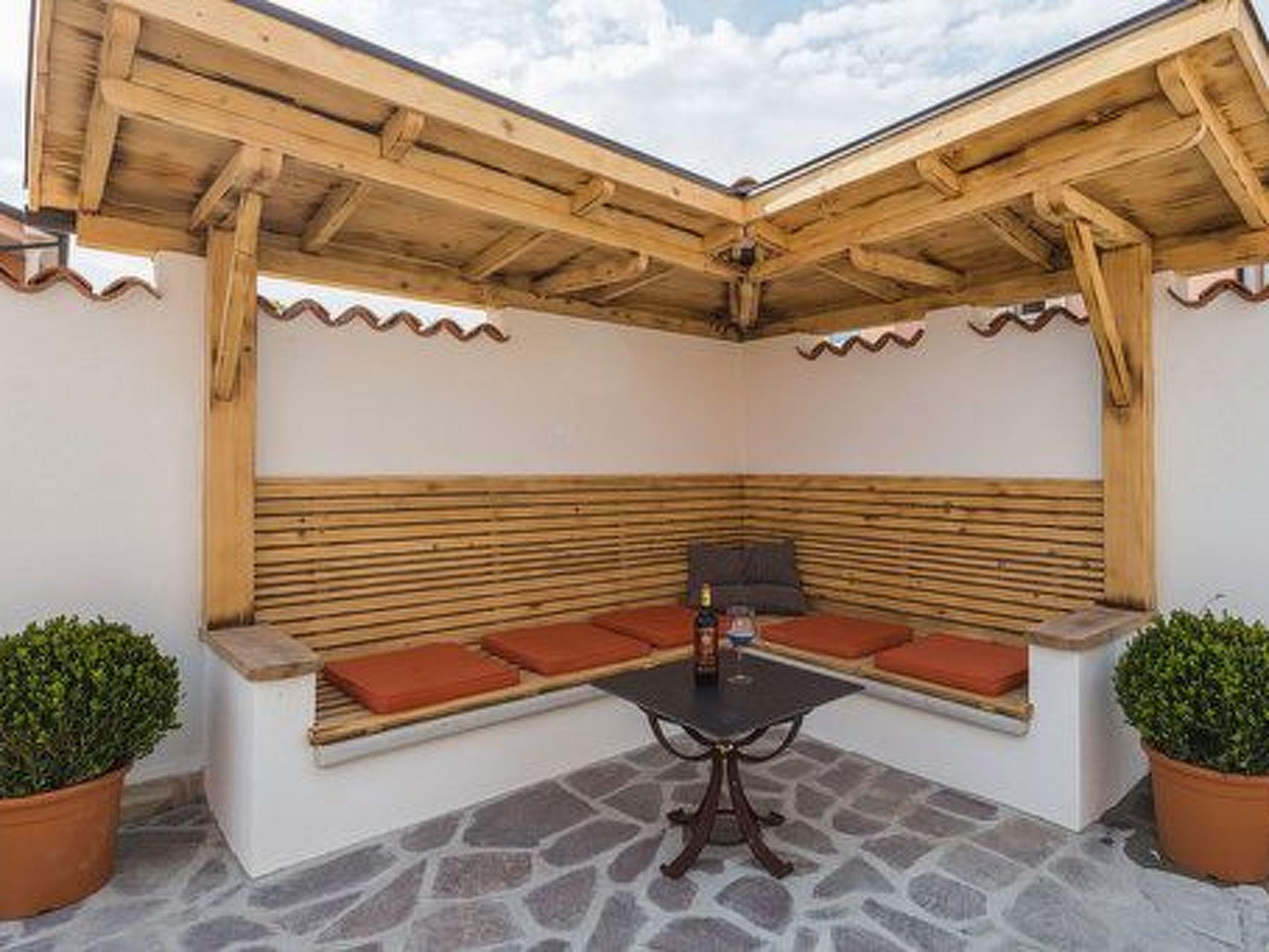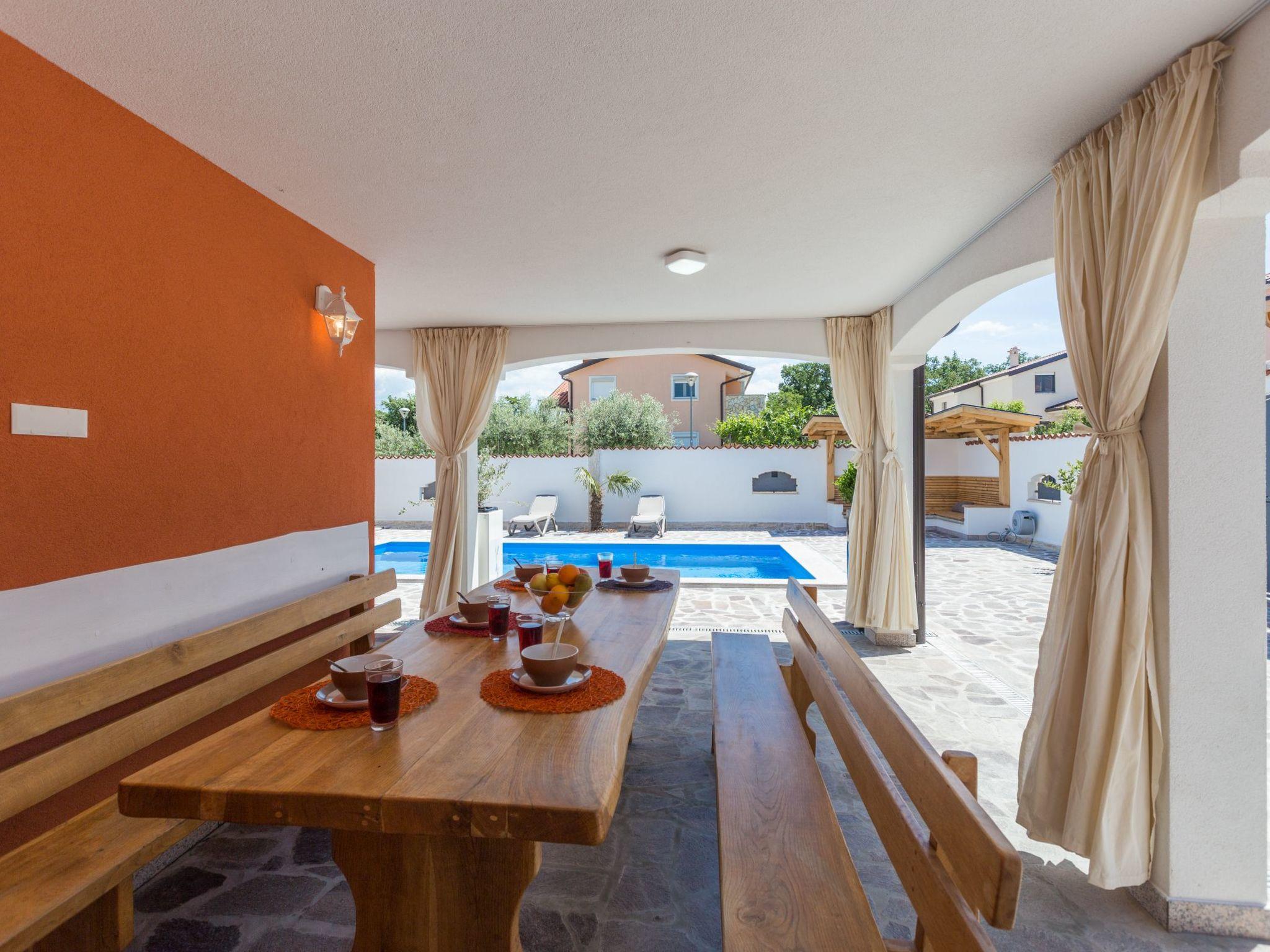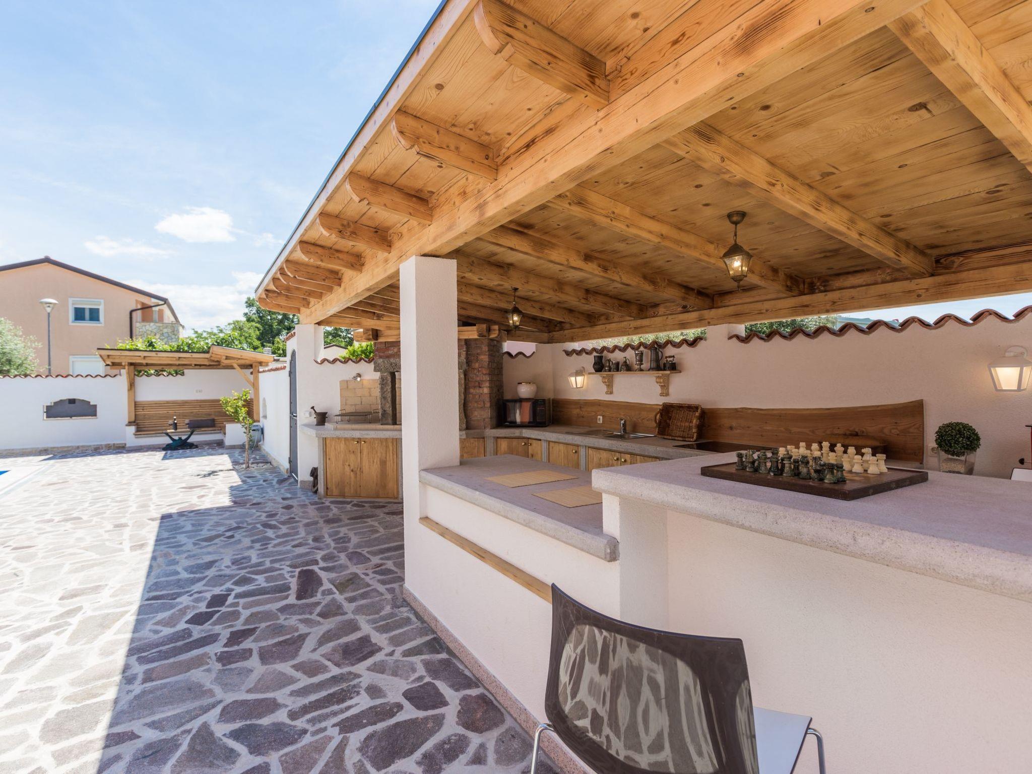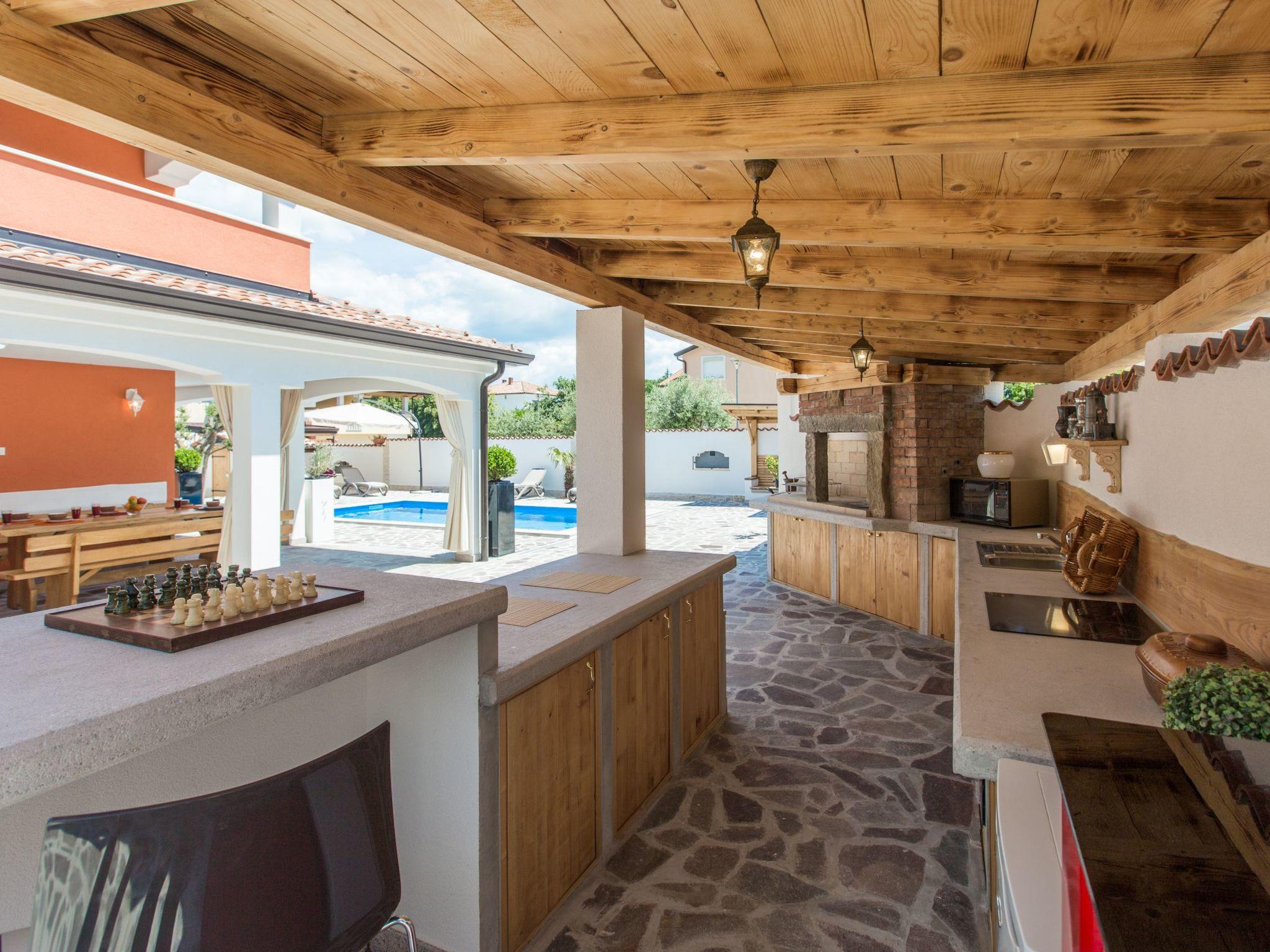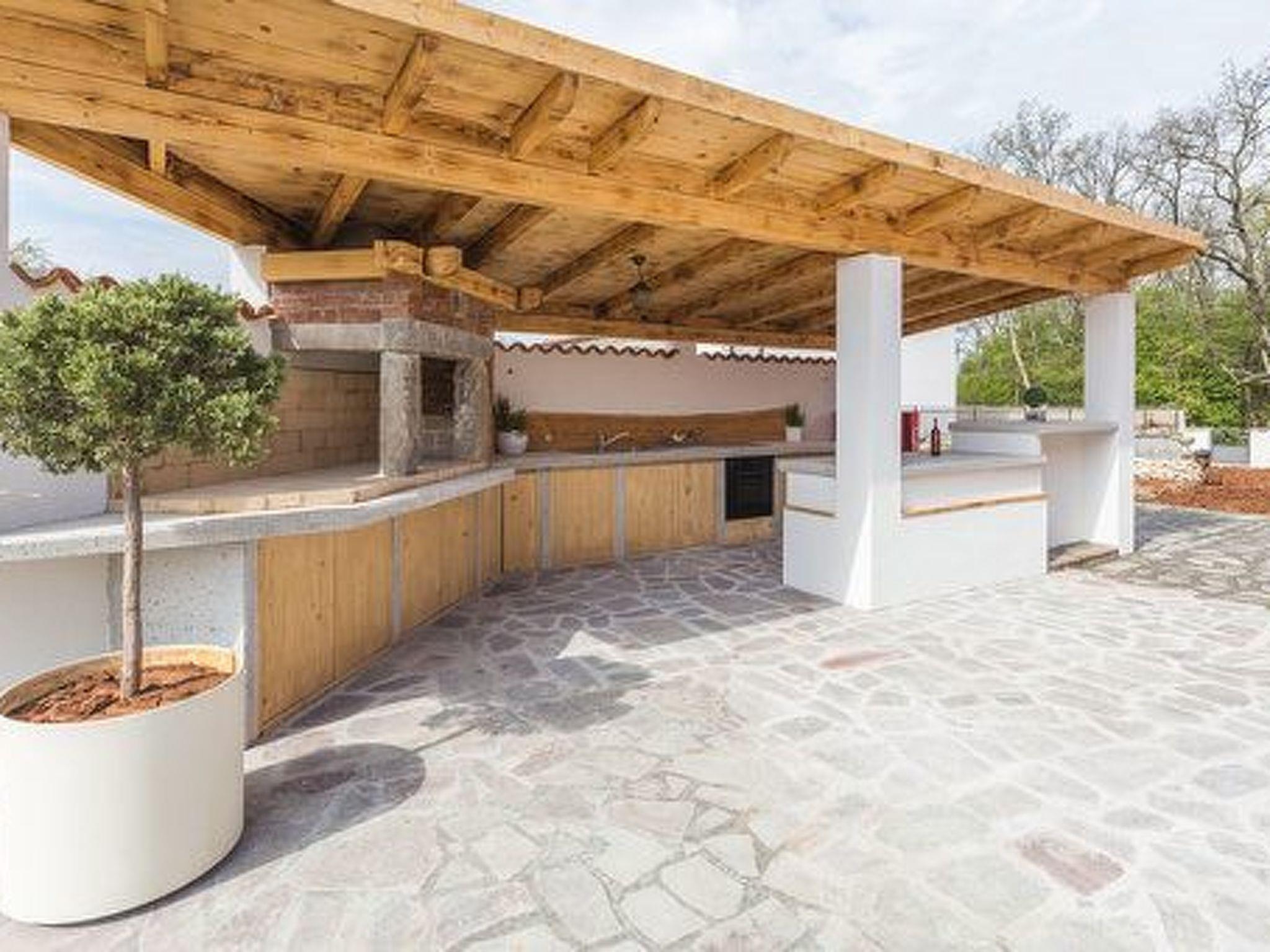 Der Außenbereich der Villa bietet, umzäunt und damit ideal für Kinder und Haustiere, eine Oase der Entspannung: eine Liegewiese mit Sonnenliegen und -schirmen lädt zum Sonnenbaden ein, während eine überdachte Sitzecke und eine Terrasse mit Außenessbereich zum Verweilen im Freien auffordern. Eine Außenküche sowie ein Grill stehen zur Verfügung, um das Essen unter dem Himmel Istriens zu einem besonderen Erlebnis zu machen.