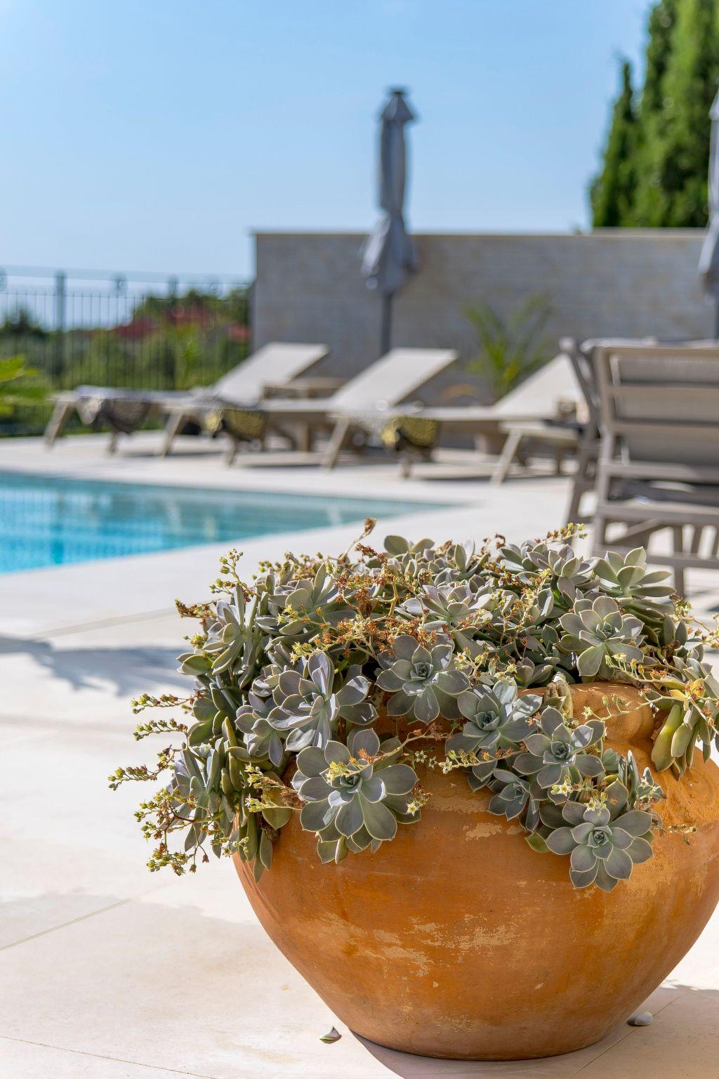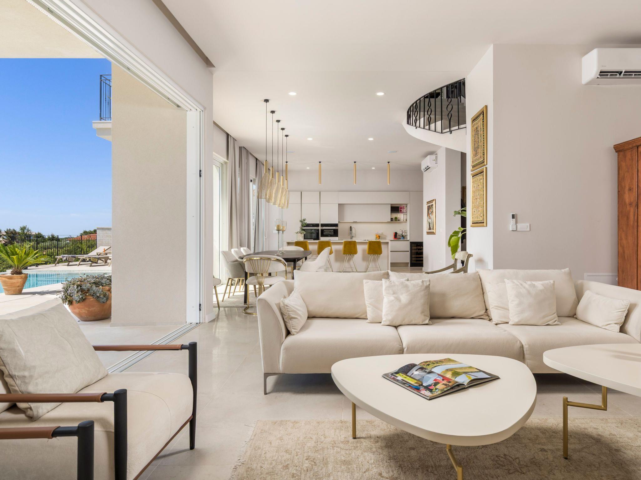 Der Zauber setzt sich draußen fort, wo der Infinity-Pool zum Entspannen und Genießen des Panoramablicks einlädt. Die Terrasse und der Balkon der Villa sind der perfekte Ort für einen Espresso am Morgen oder ein Glas Wein am Abend. Der Garten, der zur alleinigen Nutzung zur Verfügung steht, garantiert Privatsphäre und Ruhe, so dass die Gäste in aller Stille entspannen können. Ein Kamado BBQ der Spitzenklasse hebt das Essen im Freien auf ein neues Niveau und macht jede Mahlzeit zu einem unvergesslichen Erlebnis.