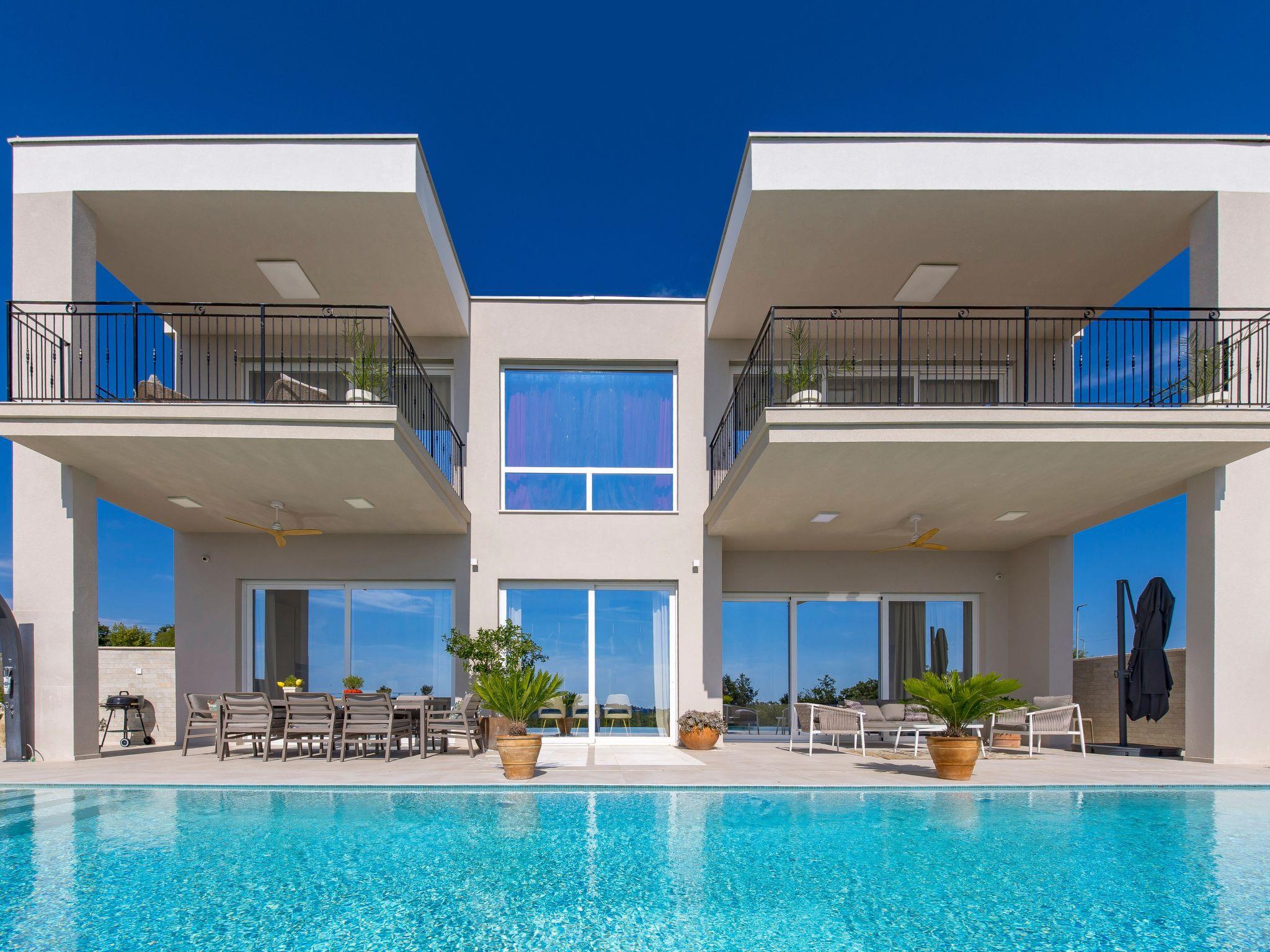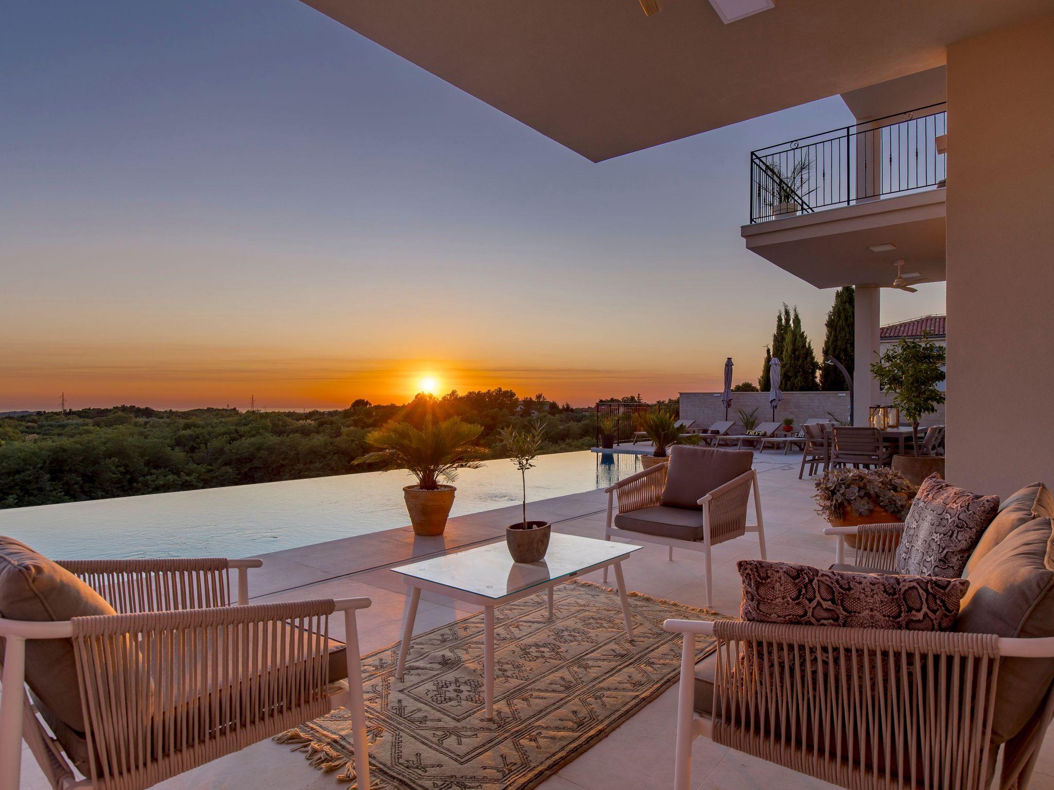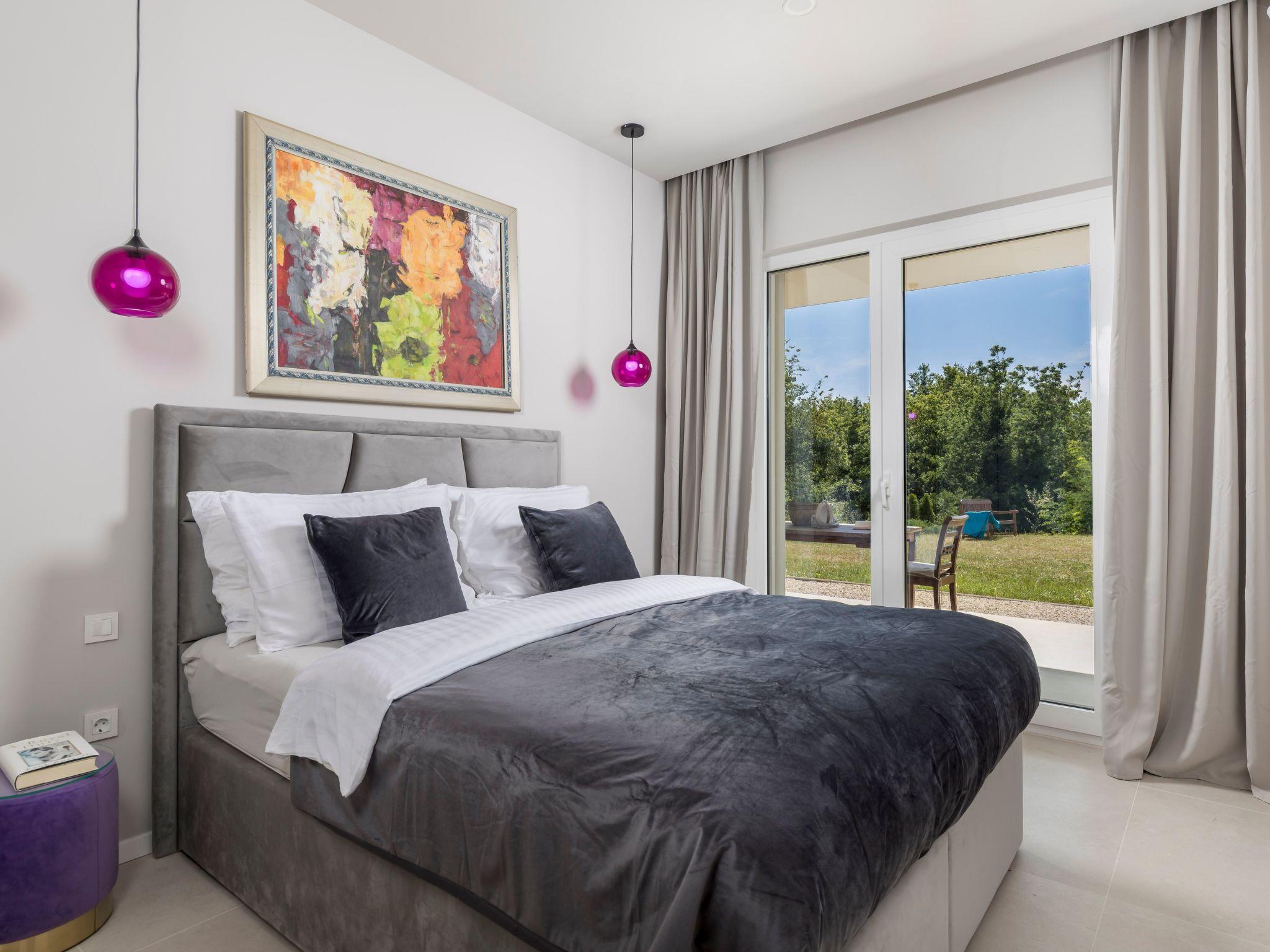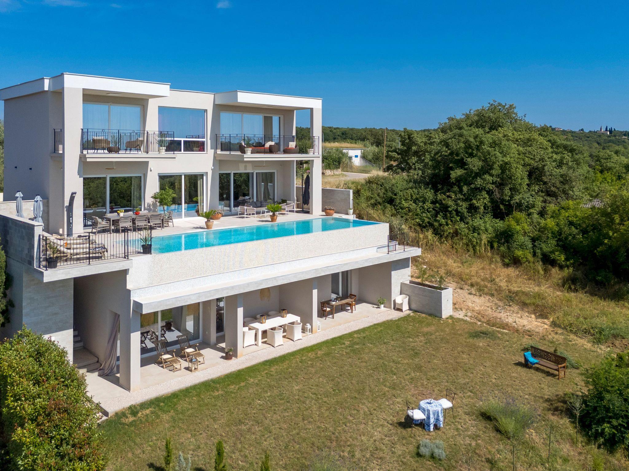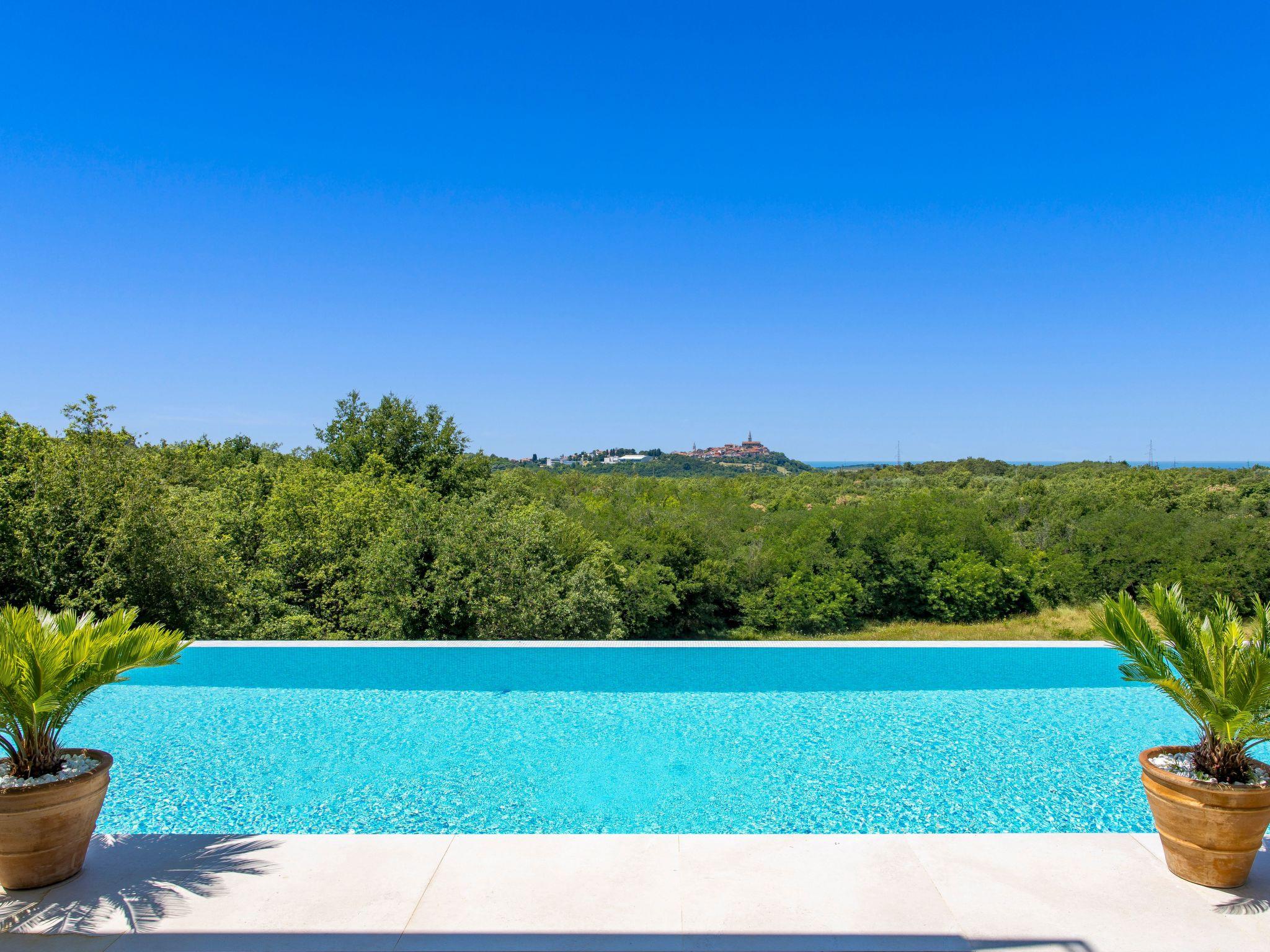 Willkommen in der exklusiven Villa Monte Bibali, einer luxuriösen Oase in idyllischer Lage, die einen atemberaubenden Ausblick verspricht. Vom großzügigen Infinity-Pool auf dem Dach blicken Sie auf das Meer, den Wald, die historische Stadt Buje und sogar auf die italienischen Alpen. Perfekt für diejenigen, die eine Mischung aus Komfort, Stil und atemberaubenden Panoramen suchen, garantiert diese Villa einen unvergesslichen Urlaub inmitten der Schönheit der Natur und der Verlockungen der nahe gelegenen historischen Städte.
