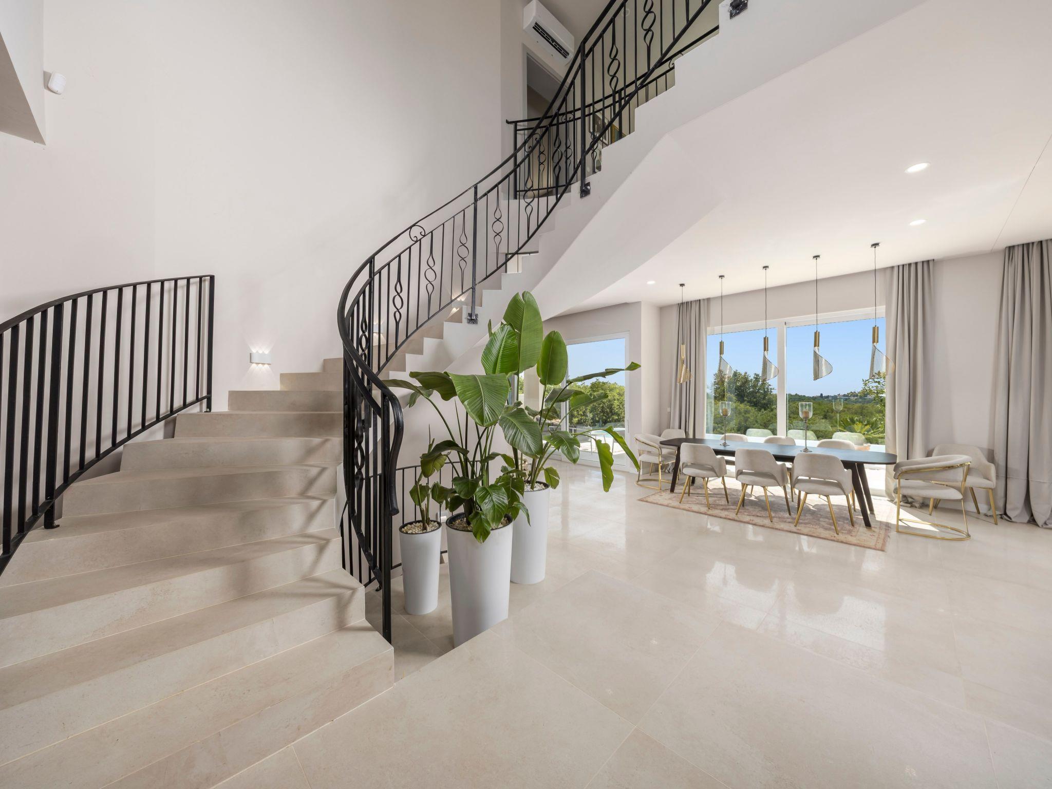 Die Innenausstattung der Villa Monte Bibali bietet höchsten Komfort und Raffinesse. Jedes der vier Schlafzimmer mit eigenem Bad bietet eine spektakuläre Aussicht und sorgt dafür, dass jedes Aufwachen so bezaubernd ist wie die Villa selbst. Die Villa ist stolz auf ihre erstklassige Ausstattung, darunter eine Bio-Himalaya-Salzsauna für Wellness-Fans, ein erstklassiger Kamado-Grill für kulinarische Abenteurer und ein Teppanyaki-Grill in der Küche für diejenigen, die die Kunst der japanischen Küche schätzen. Fußbodenheizung, Klimaanlage im ganzen Haus, Smart-TVs und ein Kamin machen den Innenbereich zu einem gemütlichen Refugium, egal zu welcher Jahreszeit.