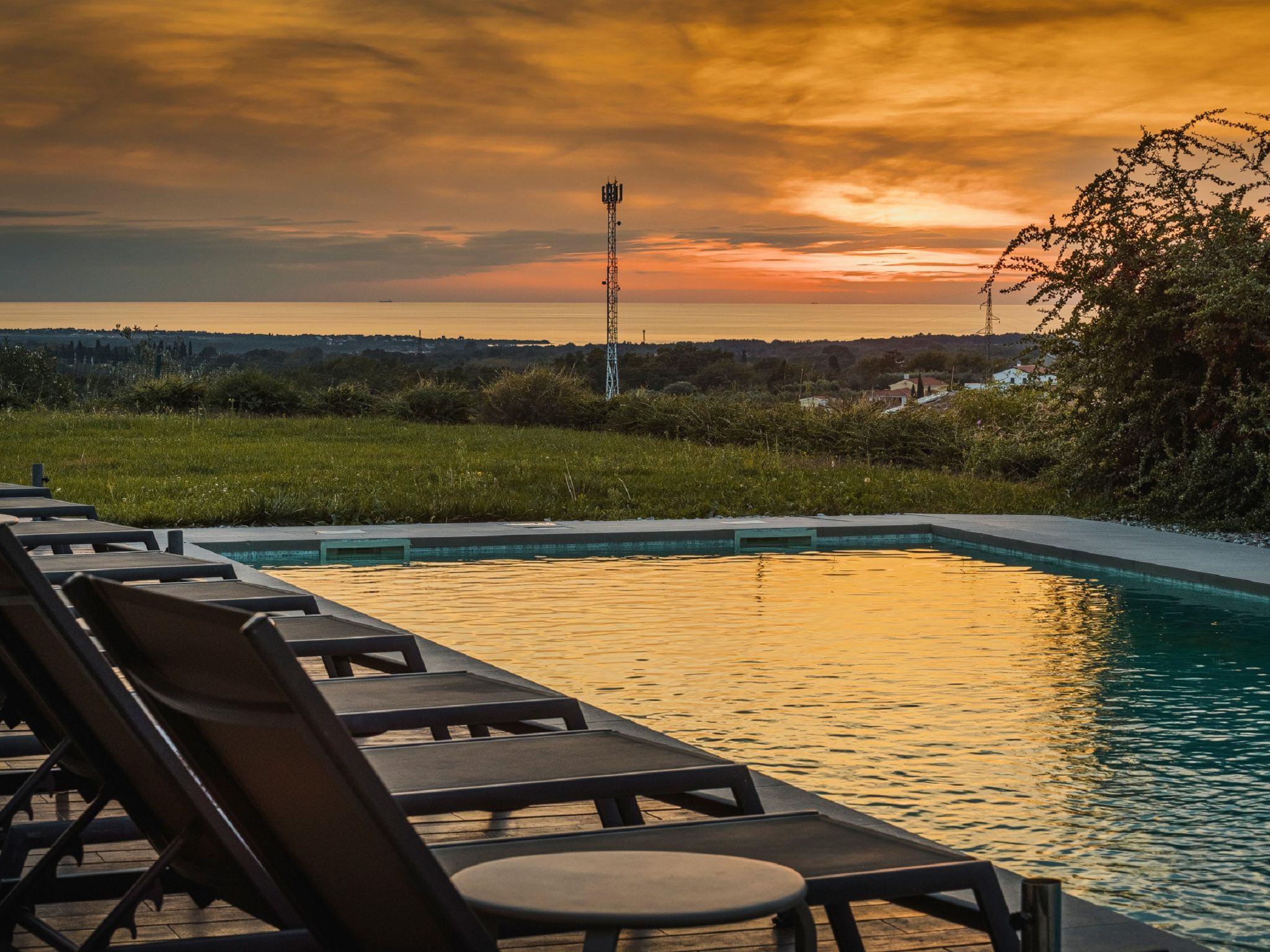 7-Zimmer-Villa 375 m2 auf 3 Stockwerken. Geräumig, geschmackvoll und gemütlich eingerichtet: Wohn-/Esszimmer mit Sat-TV. Ausgang zur Terrasse, zum Schwimmbad. Offene Küche (Backofen, Geschirrspüler, 4 Glaskeramikplatten, Toaster, Wasserkocher, Mikrowelle, Tiefkühler, elektrische Kaffeemaschine). Sep. WC. Unteres Geschoss: 1 Zimmer mit 1 franz. Bett (180 cm, Länge 200 cm), Dusche/WC und Sat-TV. Ausgang zum Garten. 1 Zimmer mit 2 Betten (90 cm, Länge 200 cm), 1 Klappbett (90 cm, Länge 200 cm), Dusche/WC und Sat-TV. 1 Zimmer mit 1 franz. Bett (160 cm, Länge 200 cm), Dusche/WC, Sat-TV und Klimaanlage. Obergeschoss: 1 Zimmer mit 1 franz. Bett (180 cm, Länge 200 cm), 1 Klappbett (90 cm, Länge 200 cm), Dusche/WC, Sat-TV und Klimaanlage. 1 Zimmer mit 2 Betten (90 cm, Länge 200 cm), Dusche/WC, Sat-TV und Klimaanlage. 1 Zimmer mit 1 franz. Bett (160 cm, Länge 200 cm), Dusche/WC, Sat-TV und Klimaanlage. Bodenheizung, Warmluftheizung. Terrasse 70 m2 teilweise überdacht. Terrassenmöbel, Elektrogrill, Liegestühle. Panoramasicht auf das Meer. Zur Verfügung: Safe, Bügeleisen, Kinderhochstuhl, Babybett, Haartrockner. Internet (Wireless LAN, gratis). Parkplatz (überdacht, 2 Autos). Maximal 2 Haustiere/Hunde erlaubt.