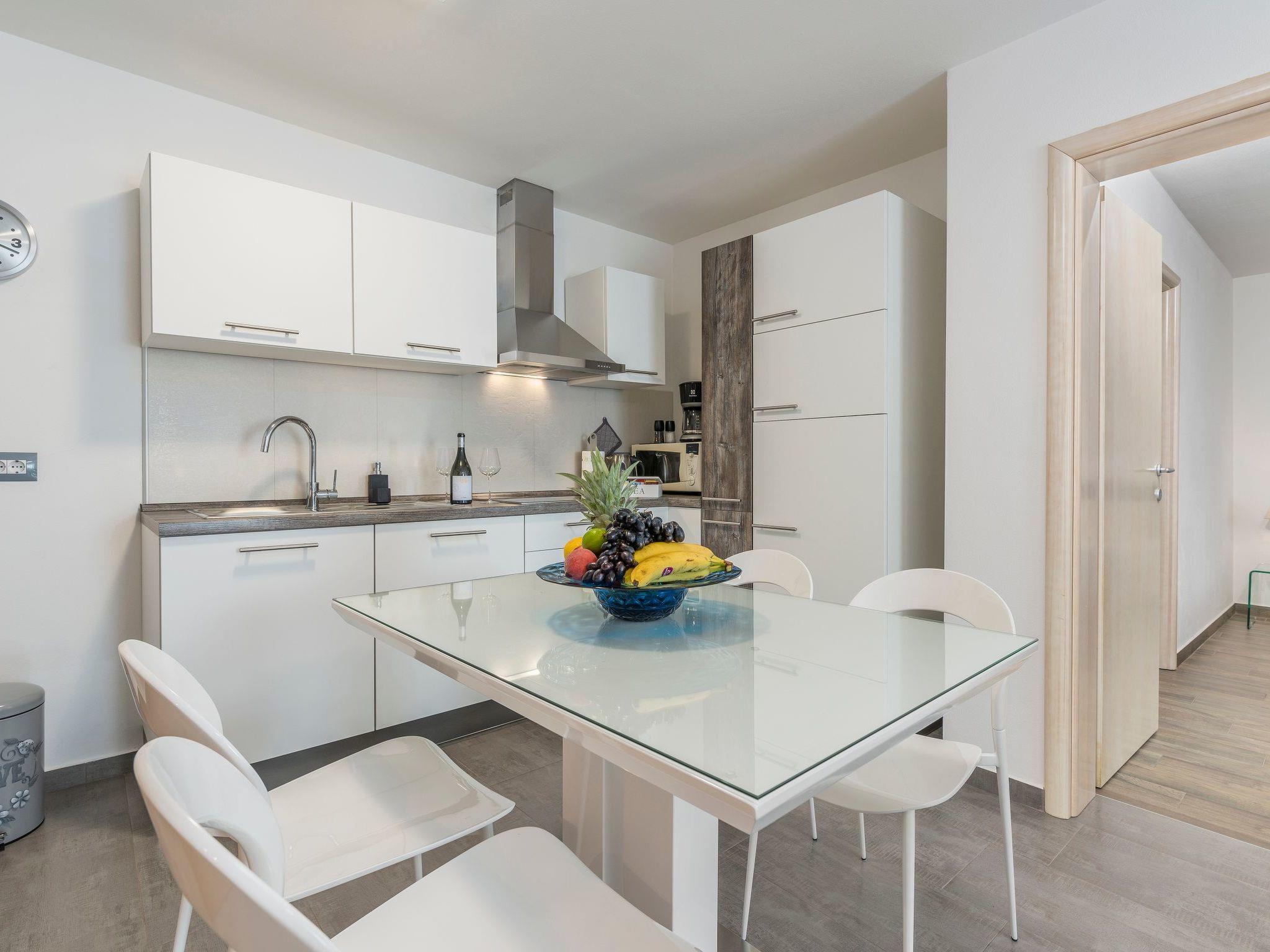 Die Wohnung ist 60 m2 groß und besteht aus: voll ausgestattete Küche mit Essbereich, Wohnzimmer, zwei Schlafzimmer (ein Doppelzimmer mit Kingsize-Bett, ein kleines Zimmer mit Einzelbett oder Etagenbett), Bad mit Dusche. Es enthält auch: Satelliten-TV, Wi-Fi, Klimaanlage, Heizung, Moskitonetze an allen Fenstern, Kinderbett (auf Anfrage),