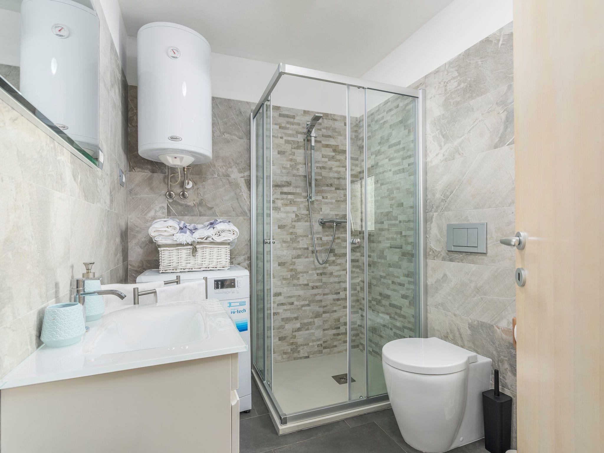 Lebensmittelläden, Apotheke, Bank, Restaurants sind 2 km entfernt. Mit der Blauen Flagge ausgezeichnete Strände mit kristallklarem Wasser (mit Schwimmbädern, Tennis- und Golfplätzen, Aquapark Istralandia), mehrere Reiterhöfe. Radwege führen Sie vorbei an istrischen Burgen, Weinbergen und Olivenhainen, versteckten Ruinen und malerischen Dörfern mit familiengeführten Restaurants. Die istrische Küste zeichnet sich durch zahlreiche mit der Blauen Flagge ausgezeichnete Strände aus. An der Küste zwischen Umag und Novigrad befinden sich einige der besten Strände Kroatiens. Sie zeichnen sich durch malerische Buchten und Landzungen aus, mit Fels- und Kieselstränden, die Sie in die ursprüngliche Welt des Meeres einladen. Viele Strände sind landschaftlich gestaltet, während andere ein wildes, ungezähmtes Aussehen bewahrt haben. Pinienwälder und Olivenhaine schützen Sie vor der Sommerhitze. Das Engagement für eine nachhaltige Entwicklung hat die Strände von Umag, Novigrad und Brtonigla mit zahlreichen blauen Flaggen ausgezeichnet. Empfehlenswert sind: - die Altstadt von Buje (Buje) mit ihren venezianischen Palästen, Mauern und einem Turm aus dem 15. Jahrhundert - Momjan mit seiner Burg aus dem 13. Jahrhundert, die vor allem für ihre Weine berühmt ist - Castelvenere (Kastel), bekannt als antike Nekropole mit einem schönen alten Stadtkern - Buzet (Buzet) mit dem alten Kapitänspalast, mehreren alten Wappen und einer Zisterne - Kotli und Mlini 2 malerische Steindörfer mit den Ruinen einer alten Mühle, Wasserfällen und Restaurants - Hum (Hum), die kleinste Stadt der Welt mit einer alten Burg aus dem 11. Jahrhundert - Roc (Rozzo) mit seinen steinernen Stadttoren, Mauern und fünf Türmen - Naturpark Ucka Groznjan mit seinen mittelalterlichen Mauern und dem Stadttor aus dem 15. Jahrhundert - Motovun, eine alte istrische Akropolis auf einem Hügel - Pazin mit seinen Bächen, Flüssen und Wasserfällen - Zminj mit seiner Burg aus dem 15.