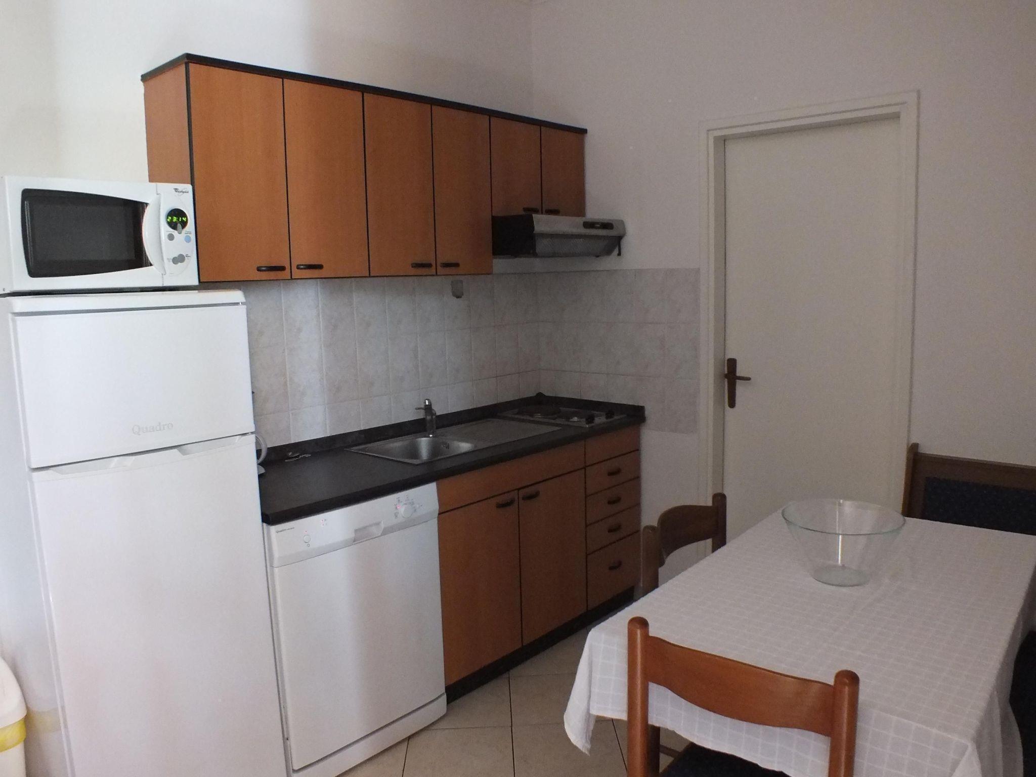 Villa Plavo more ist eine renovierte Villa mit 8 klimatisierten Appartements auf 3 Etagen. Villa Plavo more liegt in einer ruhigen Gegend mit schönem Garten und ist von mediterraner Vegetation umgeben. Im Garten befindet sich ein großer privater Pool, der von einer Sonnenterrasse mit Sonnenliegen und einer möblierten Terrasse mit Tischen, Bänken und einer Feuerstelle zum Grillen umgeben ist. Appartement B4 hat 2 Schlafzimmer: 1. Zimmer - französisches Bett für 2 Personen 2. Zimmer - Etagenbett für 2 Personen (Kinder), Bad und gut ausgestattete Küche.
