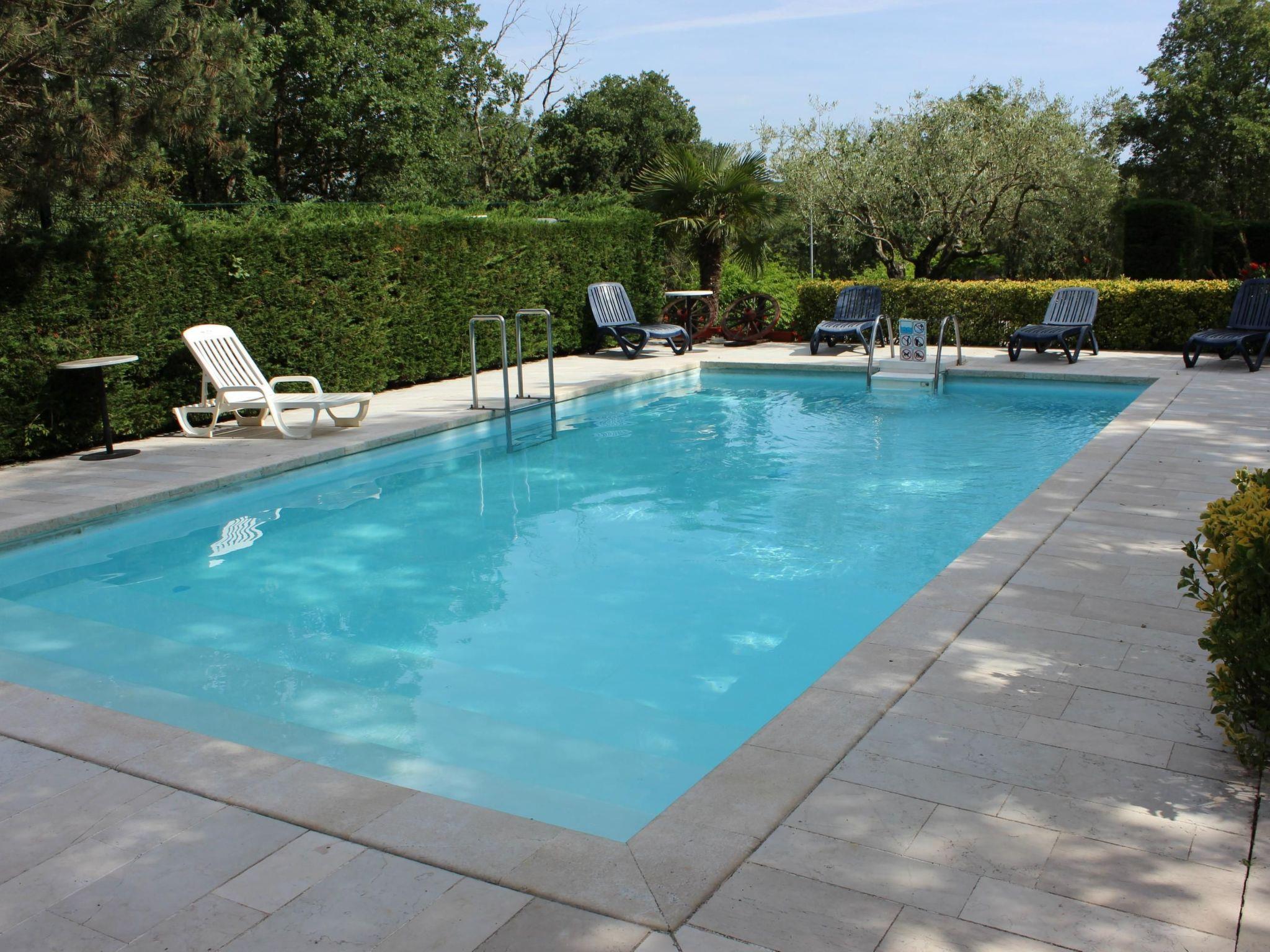 Großer, schöner Garten mit Tischen und Grill, großer Außenpool.
