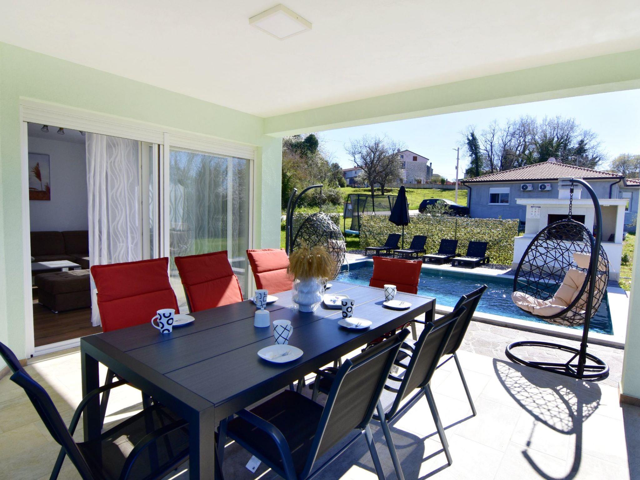 Entdecken Sie unser atemberaubendes neues 140 m² großes Villa mit Pool in Buroli, einem kleinen ruhigen Dorf am Meer, nur 5 km von den wunderschönen Stränden der Umag-Region entfernt. Dieses liebevoll und geschmackvoll eingerichtete Zuhause bietet Platz für bis zu 8 Personen und verspricht einen erholsamen Urlaub fernab der Hektik des Alltags. Genießen Sie die Ruhe, das Zwitschern der Vögel am Morgen und die wunderbaren Aussichten auf die natürliche Landschaft. Ob Sie nun auf den nahegelegenen Radwegen radeln oder einfach die Landschaft erkunden möchten, hier finden Sie den perfekten Ausgangspunkt.