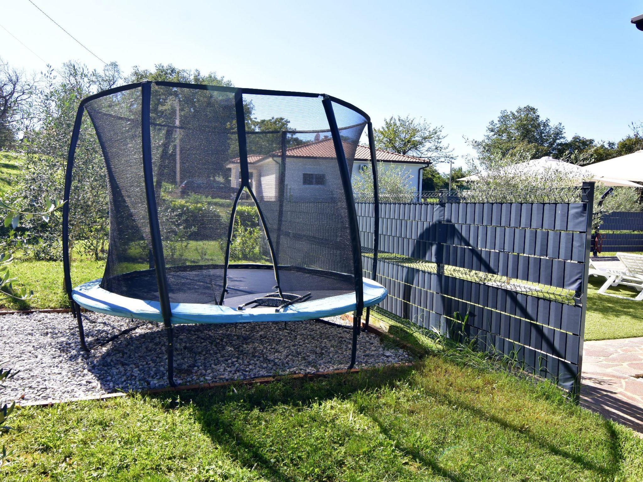 Im Außenbereich des Hauses, umgeben von viel Grün, erwartet Sie ein großzügiger privater Garten mit einem herrlichen Poolbereich, ausgestattet mit Liegestühlen, Sonnenschirmen, einer Außendusche, einem Grill und einem Trampolin für Kinder. Kostenlose Privatparkplätze stehen direkt vor dem Haus zur Verfügung, so dass Sie sich um die Sicherheit Ihres Fahrzeugs keine Sorgen machen müssen.