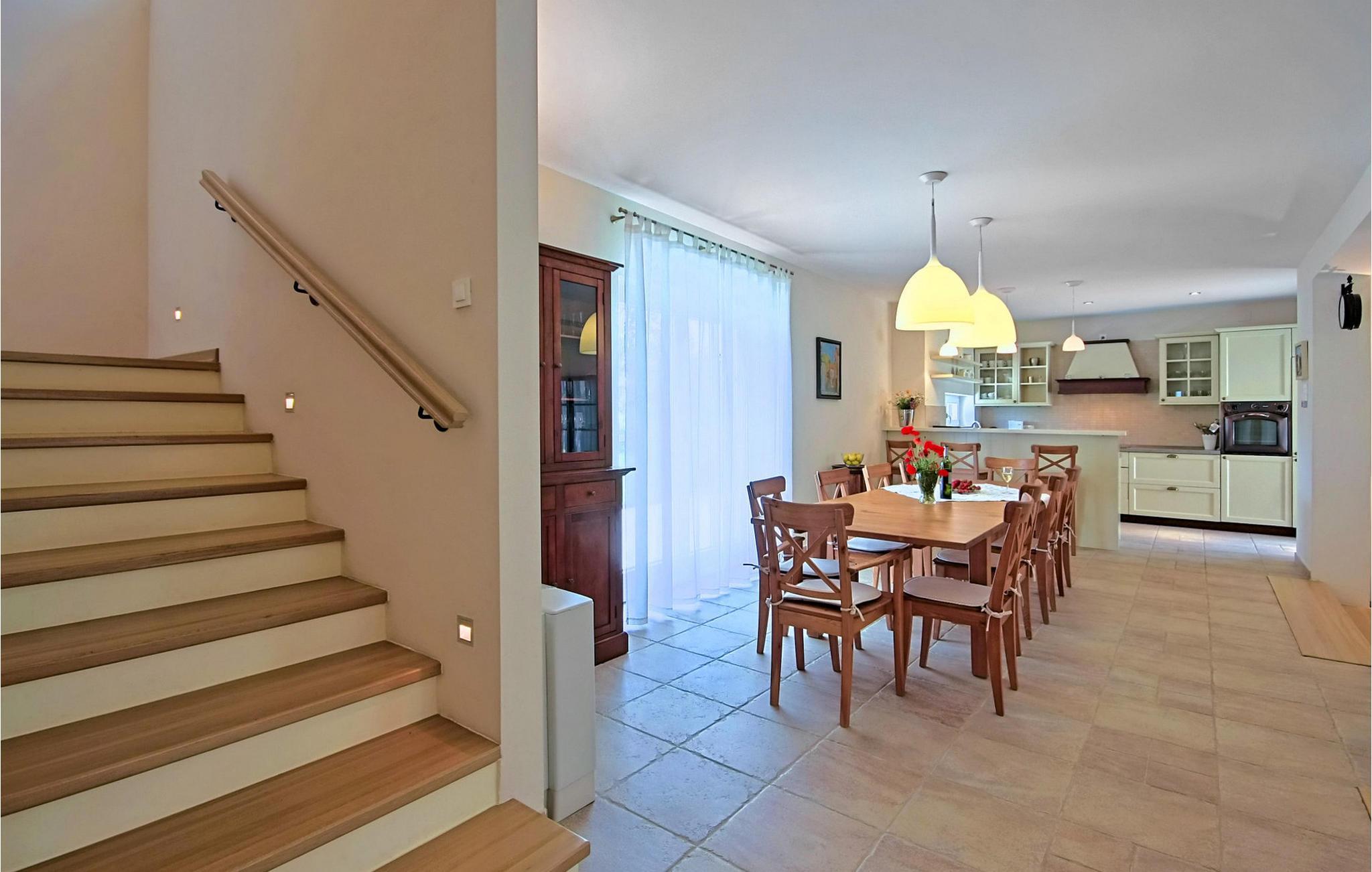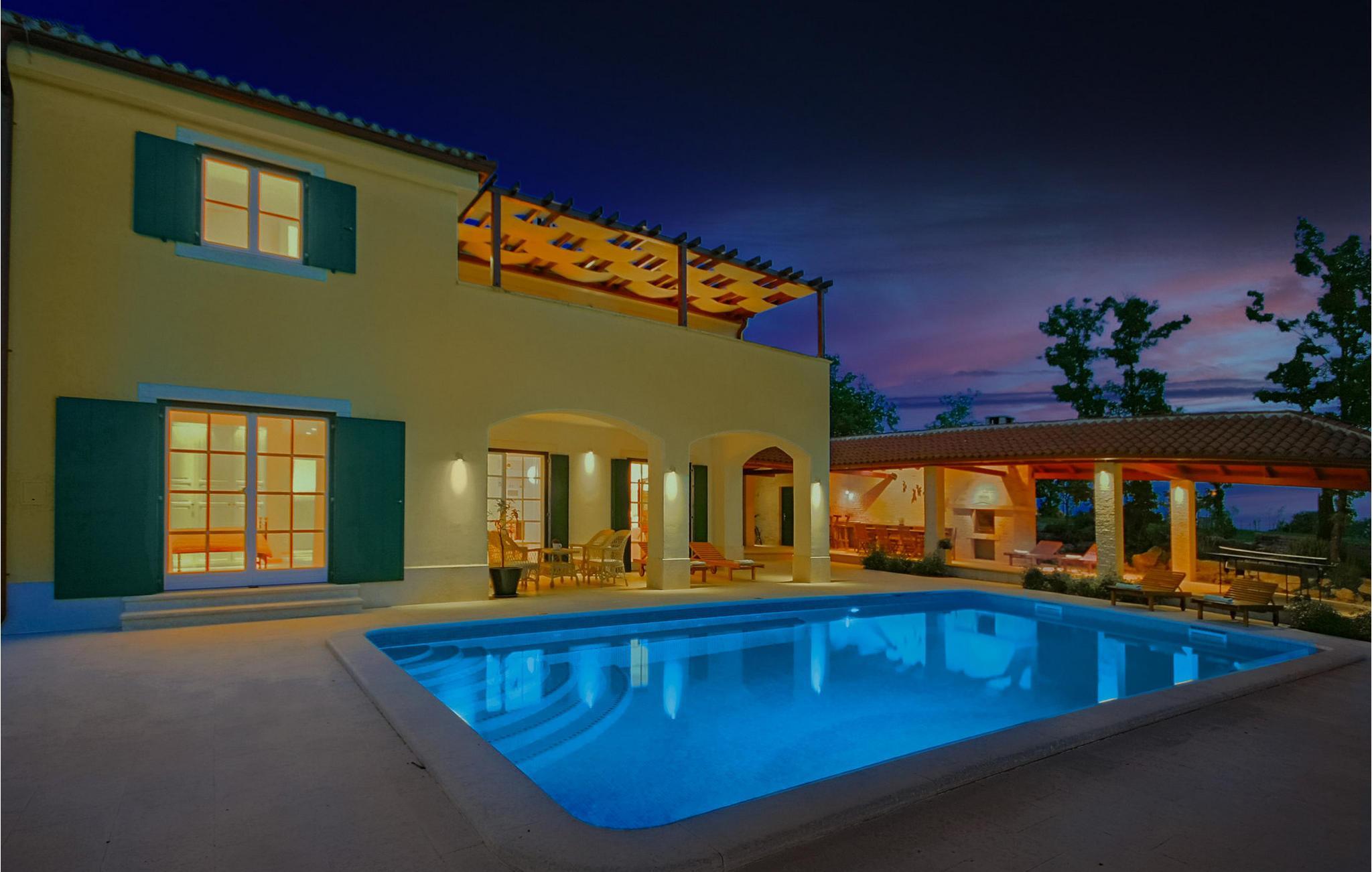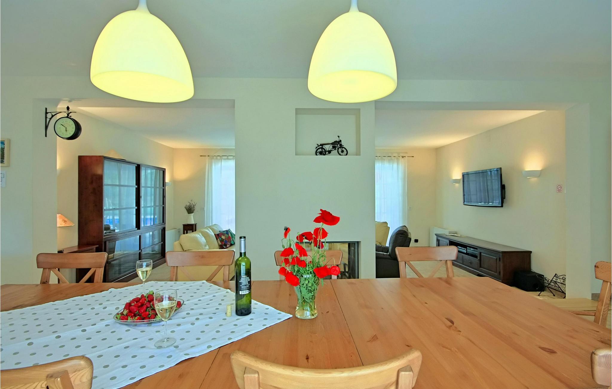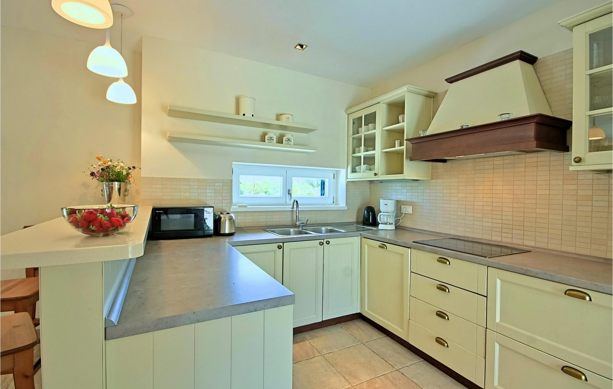 Die malerische Villa Alma liegt in der kleinen Stadt Svetvincenat im Süden Istriens, die Sie mit ihrem reichhaltigen touristischen und gastronomischen Angebot sowie zahlreichen kulturellen und historischen Sehenswürdigkeiten und Orten begeistern wird. Umgeben von wunderschönen Rasenflächen und duftender mediterraner Vegetation liegt die Villa Alma 20 Autominuten von den wunderschönen Stränden Istriens entfernt und ist eine ausgezeichnete Wahl für einen Urlaub. Mit einer Fläche von 350 m2 besteht die Villa Alma aus 4 Schlafzimmern, von denen sich drei im ersten Stock befinden und über eine eigene Terrasse mit Tisch und zwei Stühlen verfügen. Das Bürozimmer befindet sich ebenfalls im ersten Stock und ist mit einem Bett ausgestattet, während sich das letzte Zimmer im Erdgeschoss der Villa befindet und einen direkten Ausgang zum Pool hat. Drei Schlafzimmer sind mit Doppelbetten ausgestattet, eines verfügt über zwei Einzelbetten, die bei Bedarf zusammengestellt werden können. Jedes Zimmer verfügt über ein eigenes Badezimmer mit Fußbodenheizung und einem Heizkörper. Das zusätzliche Badezimmer befindet sich in der Nebenanlage in der Nähe von Sauna und Pool. Außerdem gibt es ein separates WC, eine voll ausgestattete, moderne Küche mit Essbereich und ein Wohnzimmer, das mit einem Fernseher, einer PlayStation-Konsole und einem Kamin ausgestattet ist. Zusammen mit drei anderen Villen befindet sich die Villa Alma auf einem 25.000 m² großen Grundstück, auf dem den Gästen Privatsphäre garantiert ist, da die Innenhöfe durch Hecken und Bäume getrennt sind, um einen intimeren Raum zu schaffen. Alle Villen teilen sich 2 Tennisplätze, einen halben Basketballplatz (1 Korb), 2 Spielplätze und einen Bowlingbereich. Der 3000 m² große Garten verfügt über einen schönen Swimmingpool (50 m²) mit Heizung und Massagemöglichkeit, umgeben von Liegestühlen sowie einen Essbereich und einen Außengrill. Das reichhaltige Unterhaltungsangebot der Villa umfasst Tischfußball, Billard, Weinkeller, 5 Fahrräder, einen Whirlpool und eine Sauna. Außerdem befindet sich im Objekt neben dem Grillplatz eine Stereoanlage mit externen Lautsprechern. Villa Alma verfügt über 3 private Parkplätze und es besteht die Möglichkeit, zwei weitere Fahrzeuge zu parken. Für die Nutzung des Tennisplatzes in den Nachtstunden wird eine Gebühr von 10 € pro Stunde erhoben, zahlbar vor Ort. Die tägliche Nutzung ist kostenlos. Der Pool ist von November bis April geschlossen. Haustiere sind in dieser Unterkunft nach Ermessen des Eigentümers oder gegen eine Gebühr gestattet. Bitte beachten Sie, dass diese Unterkunft Jugendgruppen oder Junggesellenabschiede nur gegen Zahlung einer erstattbaren Kaution akzeptiert. Wenn Sie eine Jugendgruppe oder ein Junggesellenabschied sind, werden Sie bei der Ankunft gebeten, die Kaution zu hinterlegen. Alle Beträge, die zur Behebung von Schäden an der Unterkunft erforderlich sind, die Sie während Ihres Aufenthalts verursacht haben, werden von der Kaution abgezogen und anschließend an Sie zurückerstattet.