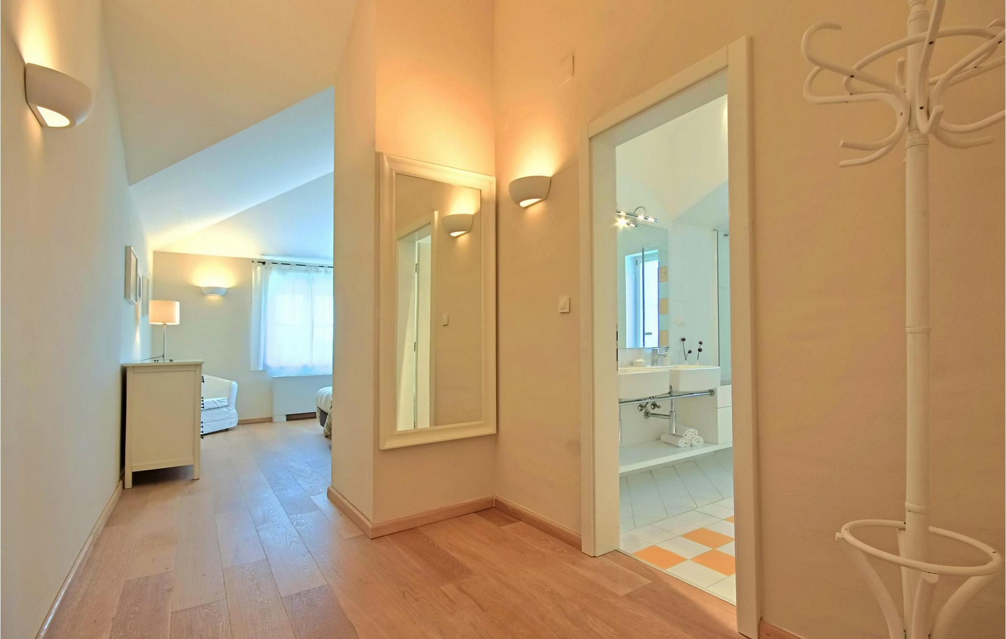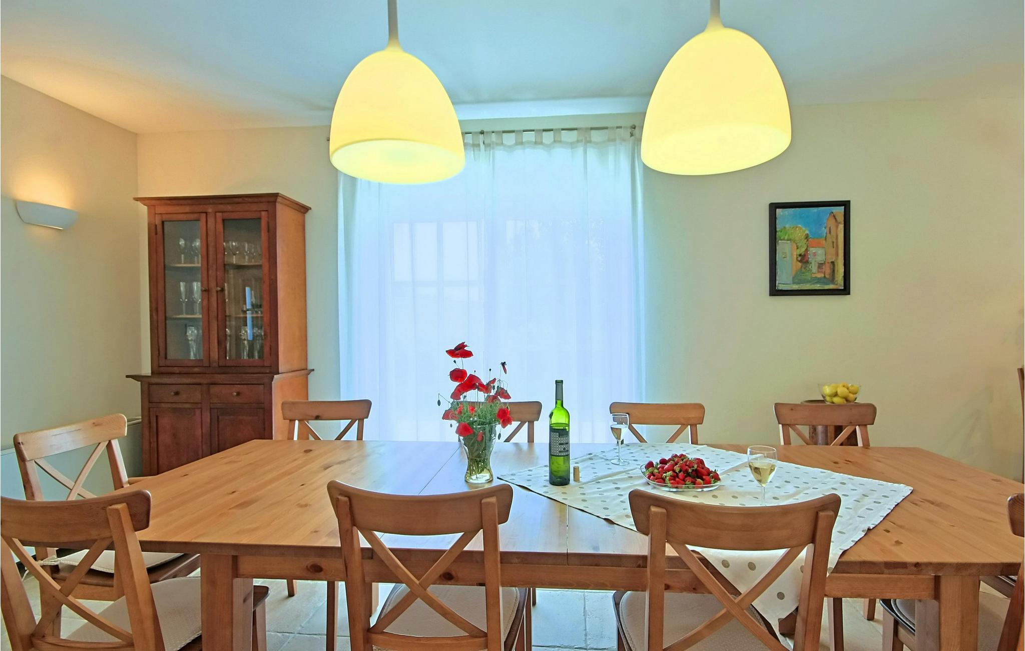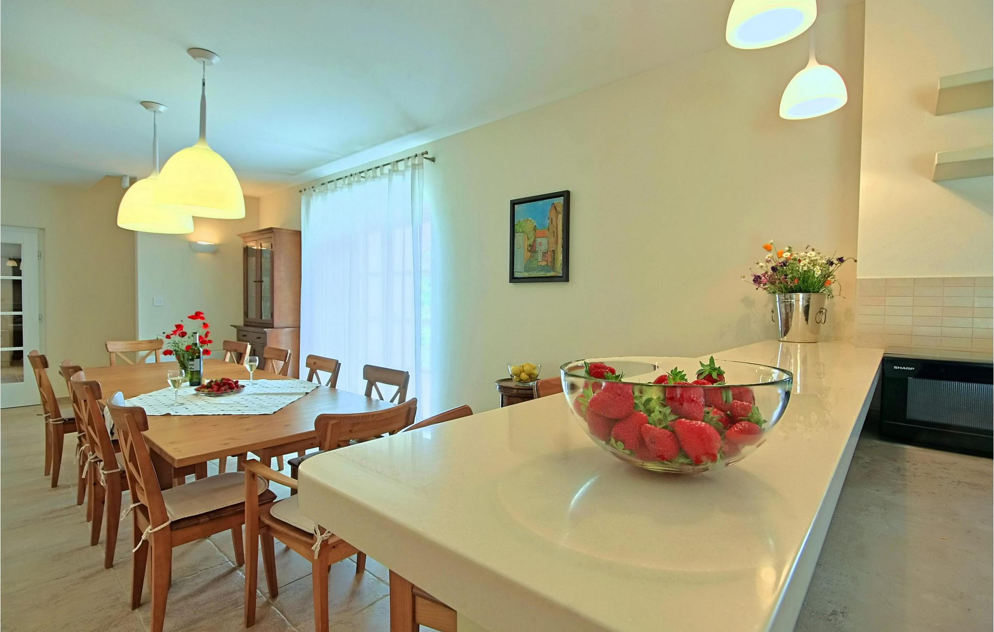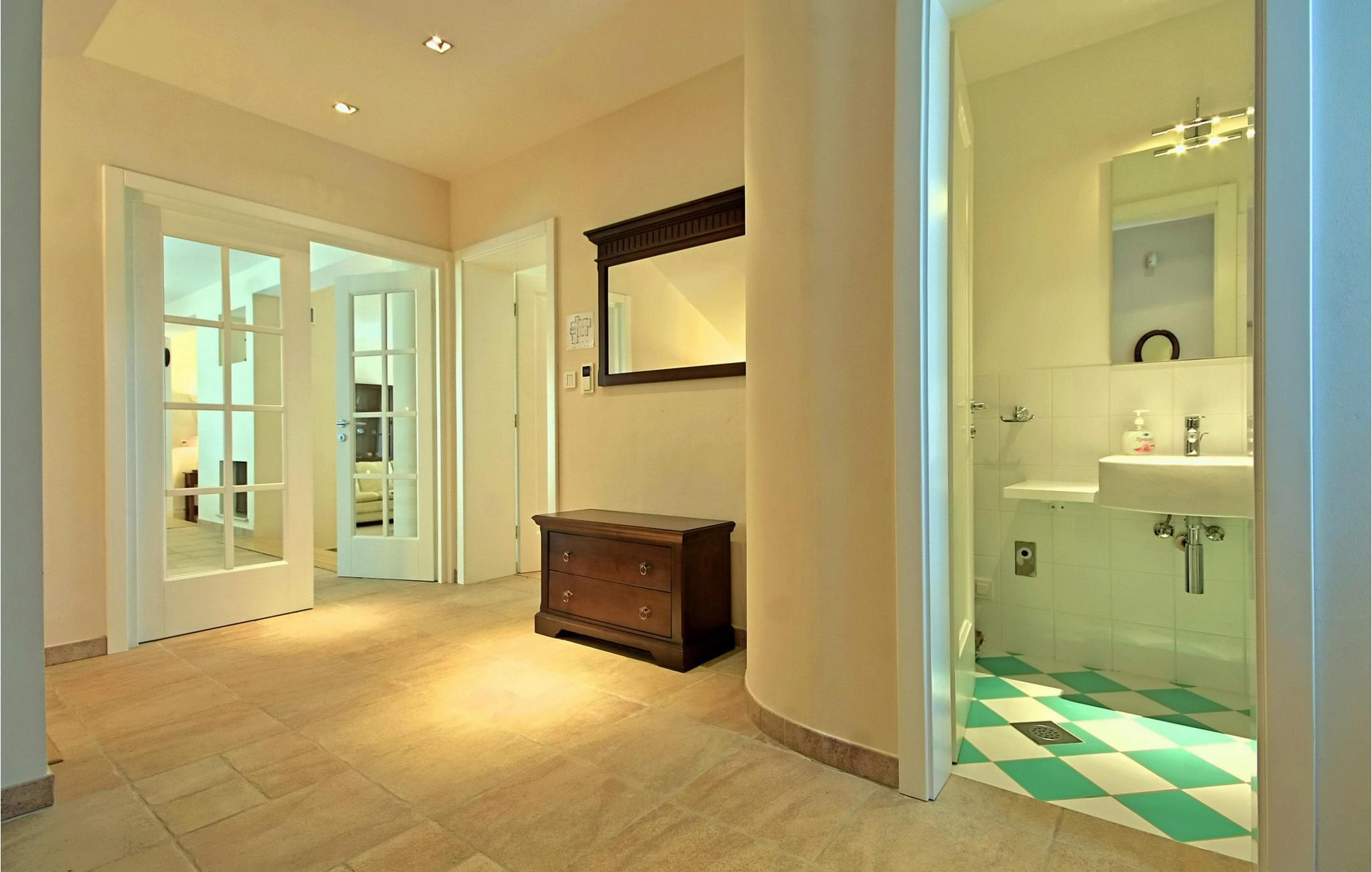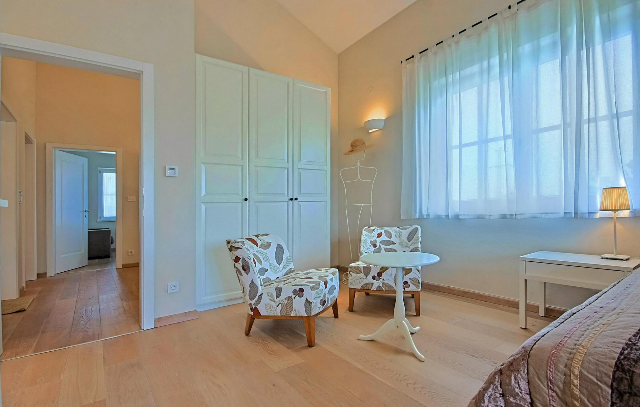 Die malerische Villa Alma liegt in der kleinen Stadt Svetvincenat im Süden Istriens, die Sie mit ihrem reichhaltigen touristischen und gastronomischen Angebot sowie zahlreichen kulturellen und historischen Sehenswürdigkeiten und Orten begeistern wird. Umgeben von wunderschönen Rasenflächen und duftender mediterraner Vegetation liegt die Villa Alma 20 Autominuten von den wunderschönen Stränden Istriens entfernt und ist eine ausgezeichnete Wahl für einen Urlaub. Mit einer Fläche von 350 m2 besteht die Villa Alma aus 4 Schlafzimmern, von denen sich drei im ersten Stock befinden und über eine eigene Terrasse mit Tisch und zwei Stühlen verfügen. Das Bürozimmer befindet sich ebenfalls im ersten Stock und ist mit einem Bett ausgestattet, während sich das letzte Zimmer im Erdgeschoss der Villa befindet und einen direkten Ausgang zum Pool hat. Drei Schlafzimmer sind mit Doppelbetten ausgestattet, eines verfügt über zwei Einzelbetten, die bei Bedarf zusammengestellt werden können. Jedes Zimmer verfügt über ein eigenes Badezimmer mit Fußbodenheizung und einem Heizkörper. Das zusätzliche Badezimmer befindet sich in der Nebenanlage in der Nähe von Sauna und Pool. Außerdem gibt es ein separates WC, eine voll ausgestattete, moderne Küche mit Essbereich und ein Wohnzimmer, das mit einem Fernseher, einer PlayStation-Konsole und einem Kamin ausgestattet ist. Zusammen mit drei anderen Villen befindet sich die Villa Alma auf einem 25.000 m² großen Grundstück, auf dem den Gästen Privatsphäre garantiert ist, da die Innenhöfe durch Hecken und Bäume getrennt sind, um einen intimeren Raum zu schaffen. Alle Villen teilen sich 2 Tennisplätze, einen halben Basketballplatz (1 Korb), 2 Spielplätze und einen Bowlingbereich. Der 3000 m² große Garten verfügt über einen schönen Swimmingpool (50 m²) mit Heizung und Massagemöglichkeit, umgeben von Liegestühlen sowie einen Essbereich und einen Außengrill. Das reichhaltige Unterhaltungsangebot der Villa umfasst Tischfußball, Billard, Weinkeller, 5 Fahrräder, einen Whirlpool und eine Sauna. Außerdem befindet sich im Objekt neben dem Grillplatz eine Stereoanlage mit externen Lautsprechern. Villa Alma verfügt über 3 private Parkplätze und es besteht die Möglichkeit, zwei weitere Fahrzeuge zu parken. Für die Nutzung des Tennisplatzes in den Nachtstunden wird eine Gebühr von 10 € pro Stunde erhoben, zahlbar vor Ort. Die tägliche Nutzung ist kostenlos. Der Pool ist von November bis April geschlossen. Haustiere sind in dieser Unterkunft nach Ermessen des Eigentümers oder gegen eine Gebühr gestattet. Bitte beachten Sie, dass diese Unterkunft Jugendgruppen oder Junggesellenabschiede nur gegen Zahlung einer erstattbaren Kaution akzeptiert. Wenn Sie eine Jugendgruppe oder ein Junggesellenabschied sind, werden Sie bei der Ankunft gebeten, die Kaution zu hinterlegen. Alle Beträge, die zur Behebung von Schäden an der Unterkunft erforderlich sind, die Sie während Ihres Aufenthalts verursacht haben, werden von der Kaution abgezogen und anschließend an Sie zurückerstattet.