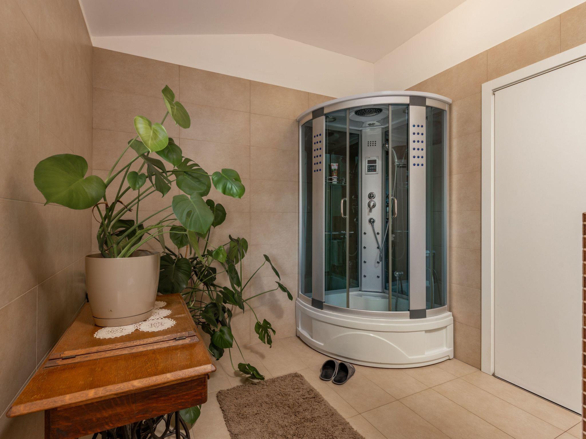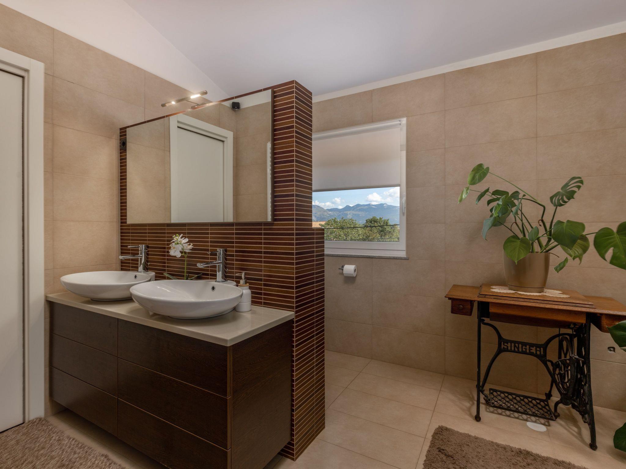 Das Dreibettzimmer Terra Magica befindet sich in einer Familienvilla im ersten Stock, 30 m2, umgeben von Landschaftsgärten und Obstbäumen. Dieses Deluxe-Dreibettzimmer verfügt über einen Balkon mit herrlichem Blick auf die Kvarner-Bucht und die Sonnenuntergänge sowie ein äußerst komfortables Badezimmer mit Hydromassage-Dusche direkt gegenüber dem Zimmer. Es gibt zwei Betten im Zimmer: ein Doppelbett von 160x200 und ein Einzelbett von 100x200. Das Zimmer ist mit Zentralheizung, einem 43-Zoll-Flachbild-HD-TV mit verschiedenen Streaming-Kanälen, einer Minibar, kostenlosem WIFI und Internet ausgestattet. Vor dem Haus gibt es einen kostenlosen Parkplatz. Toller Ort zum Entspannen in der Stille der Natur und doch in der Nähe der Stadt. Perfekt für Gäste, die Sicherheit und Abgeschiedenheit wünschen und dennoch in der Nähe aller Arten von Attraktionen in unserer Gegend sein möchten.