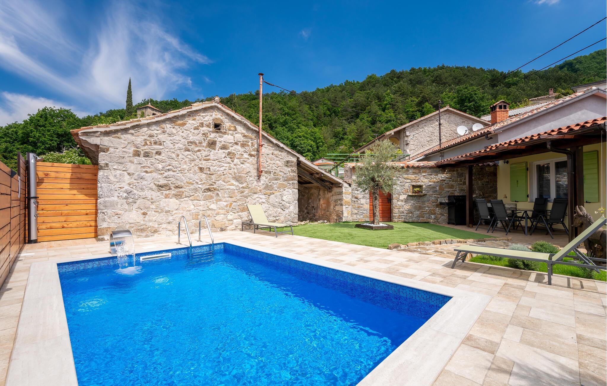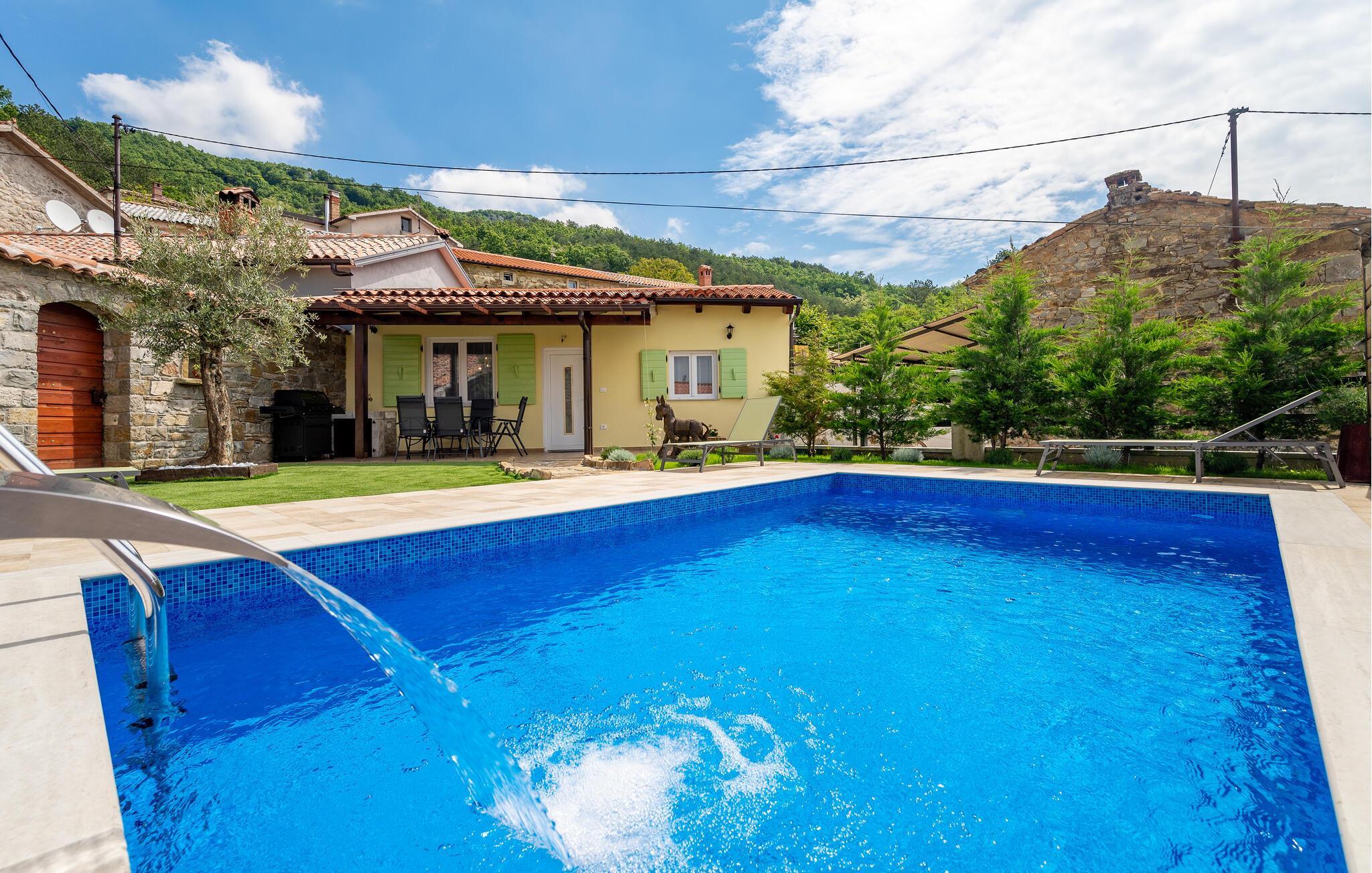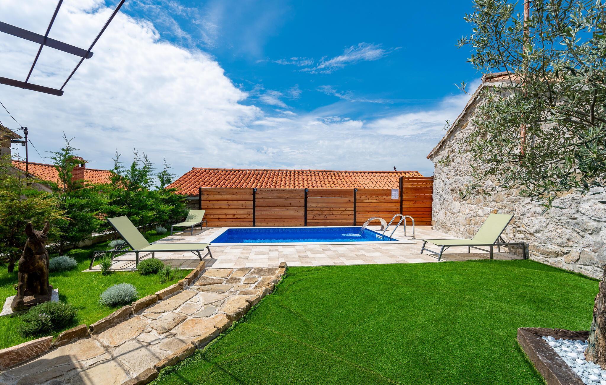 Entfliehen Sie dem Alltag und genießen Sie sonnige Tage in diesem ruhig gelegenen Ferienhaus mit Pool.
