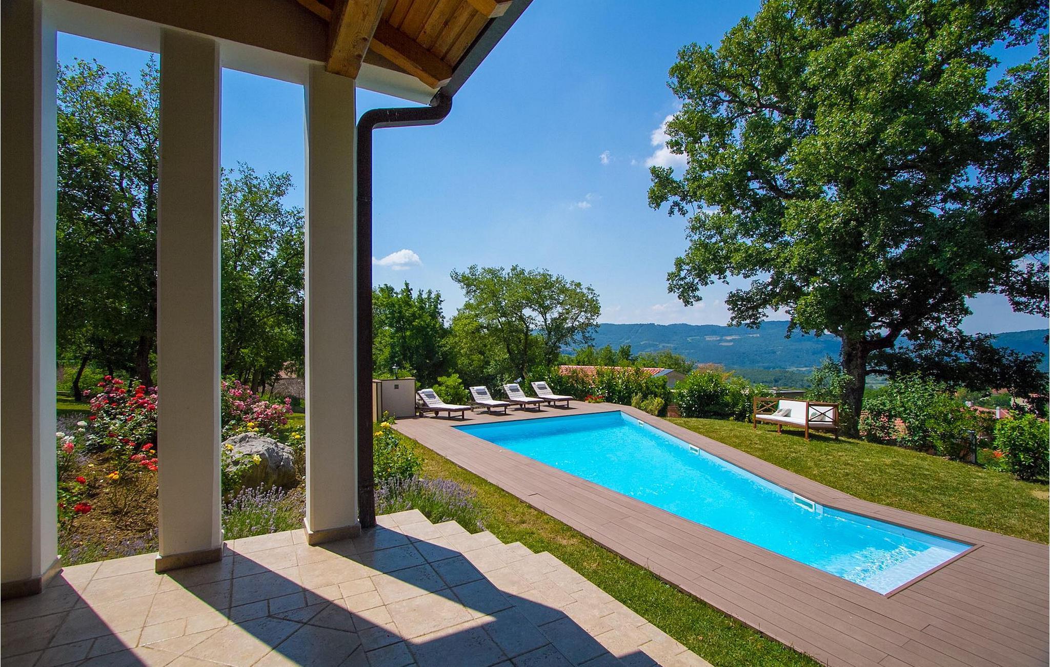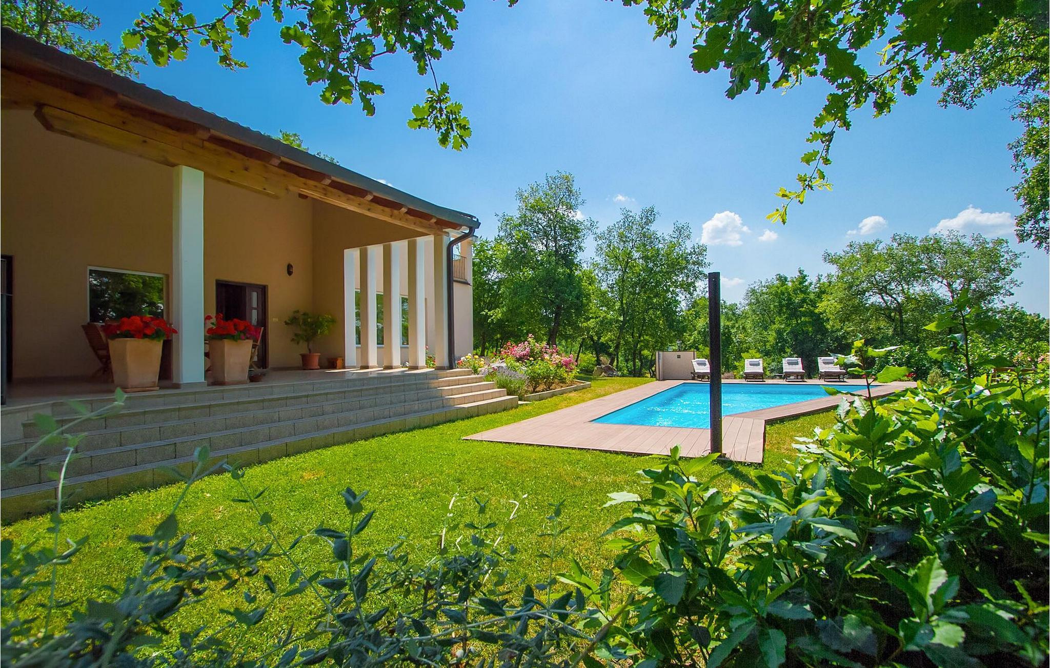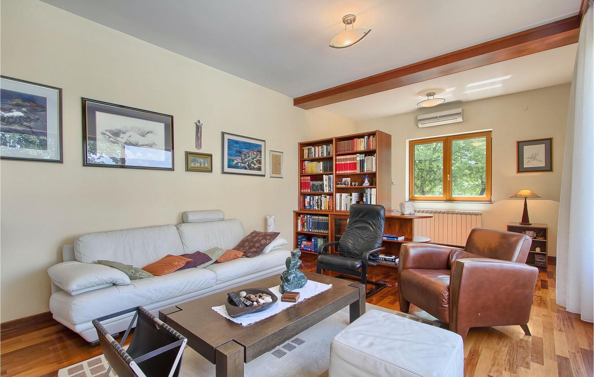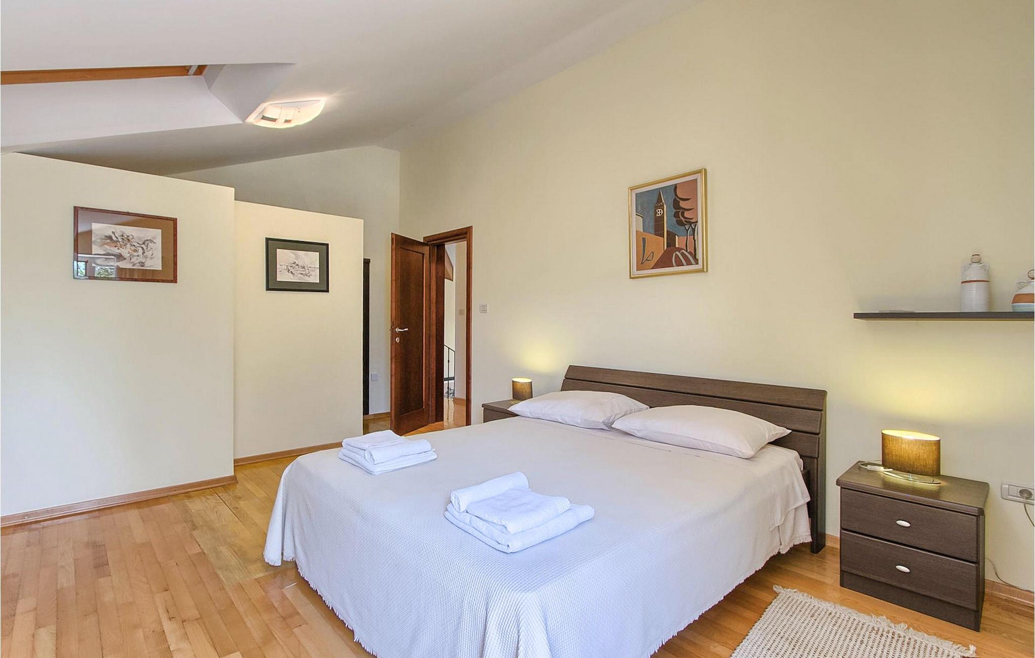 Dies ist eine Villa ideal für Familienurlaube und Entspannung in Privatsphäre. Villa Vesna ist eine schöne moderne Unterkunft welche Platz für bis zu 8 Personen bietet. Die Villa verfügt über insgesamt 4 Schlafzimmer, davon sind 3 mit Doppelbetten und eins mit 2 Einzelbetten. Im Erdgeschoss gibt es eine geräumige Wohn-Ess-Küche mit direktem Zugang zum privaten Pool im Garten, wo Sie auch einen Lounge-Bereich vorfinden werden. Der große Pool hat 40m2 und ist modern gestaltet. Der schöne mediterrane Garten bietet den Gästen Privatsphäre und Ruhe. Auf dem Grundstück befindet sich eine Garage für 2 Fahrzeuge und eine typische istrische Konoba- ein Ort, wo Sie wahrscheinlich den Großteil Ihrer Zeit, während des Aufenthaltes in der Villa Vesna, verbringen werden. Dies ist ein geräumiges Zimmer mit offenem Kamin und einem großen Tisch wo alle zusammenfinden können.
