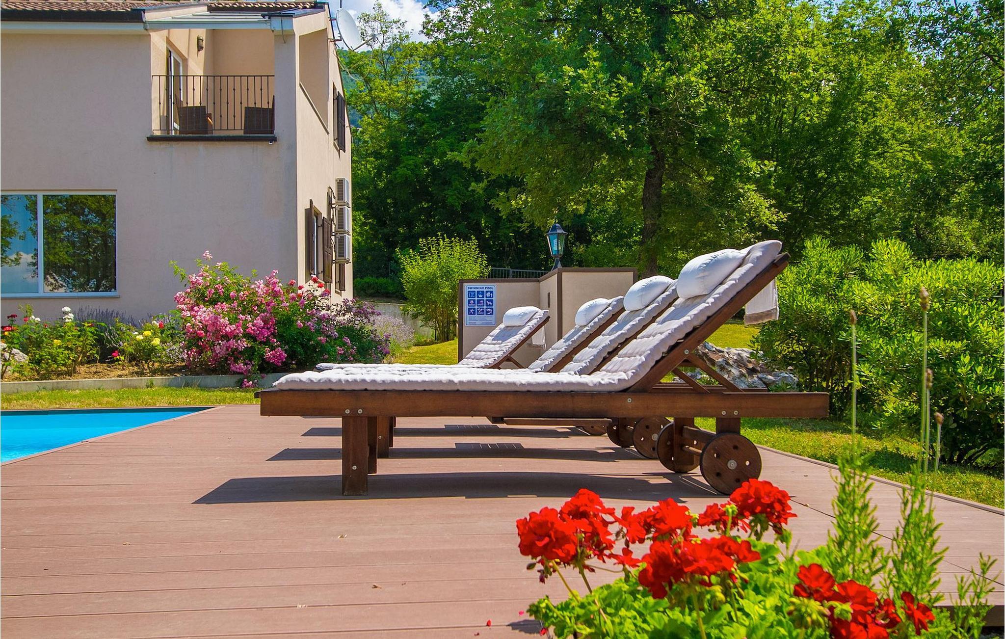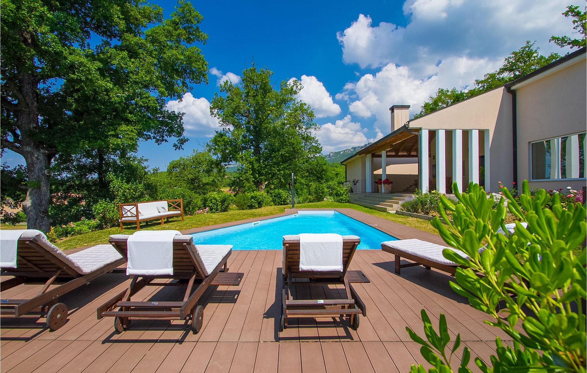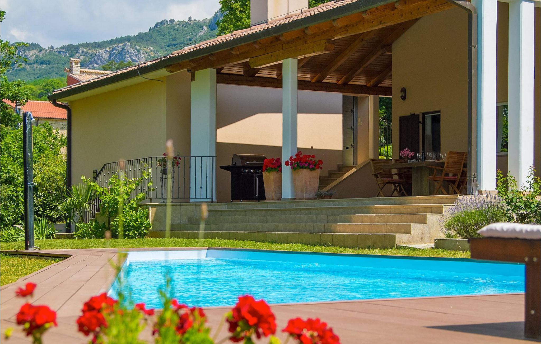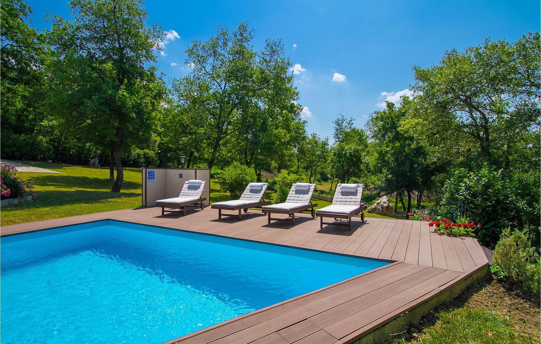 Dies ist eine Villa ideal für Familienurlaube und Entspannung in Privatsphäre. Villa Vesna ist eine schöne moderne Unterkunft welche Platz für bis zu 8 Personen bietet. Die Villa verfügt über insgesamt 4 Schlafzimmer, davon sind 3 mit Doppelbetten und eins mit 2 Einzelbetten. Im Erdgeschoss gibt es eine geräumige Wohn-Ess-Küche mit direktem Zugang zum privaten Pool im Garten, wo Sie auch einen Lounge-Bereich vorfinden werden. Der große Pool hat 40m2 und ist modern gestaltet. Der schöne mediterrane Garten bietet den Gästen Privatsphäre und Ruhe. Auf dem Grundstück befindet sich eine Garage für 2 Fahrzeuge und eine typische istrische Konoba- ein Ort, wo Sie wahrscheinlich den Großteil Ihrer Zeit, während des Aufenthaltes in der Villa Vesna, verbringen werden. Dies ist ein geräumiges Zimmer mit offenem Kamin und einem großen Tisch wo alle zusammenfinden können.