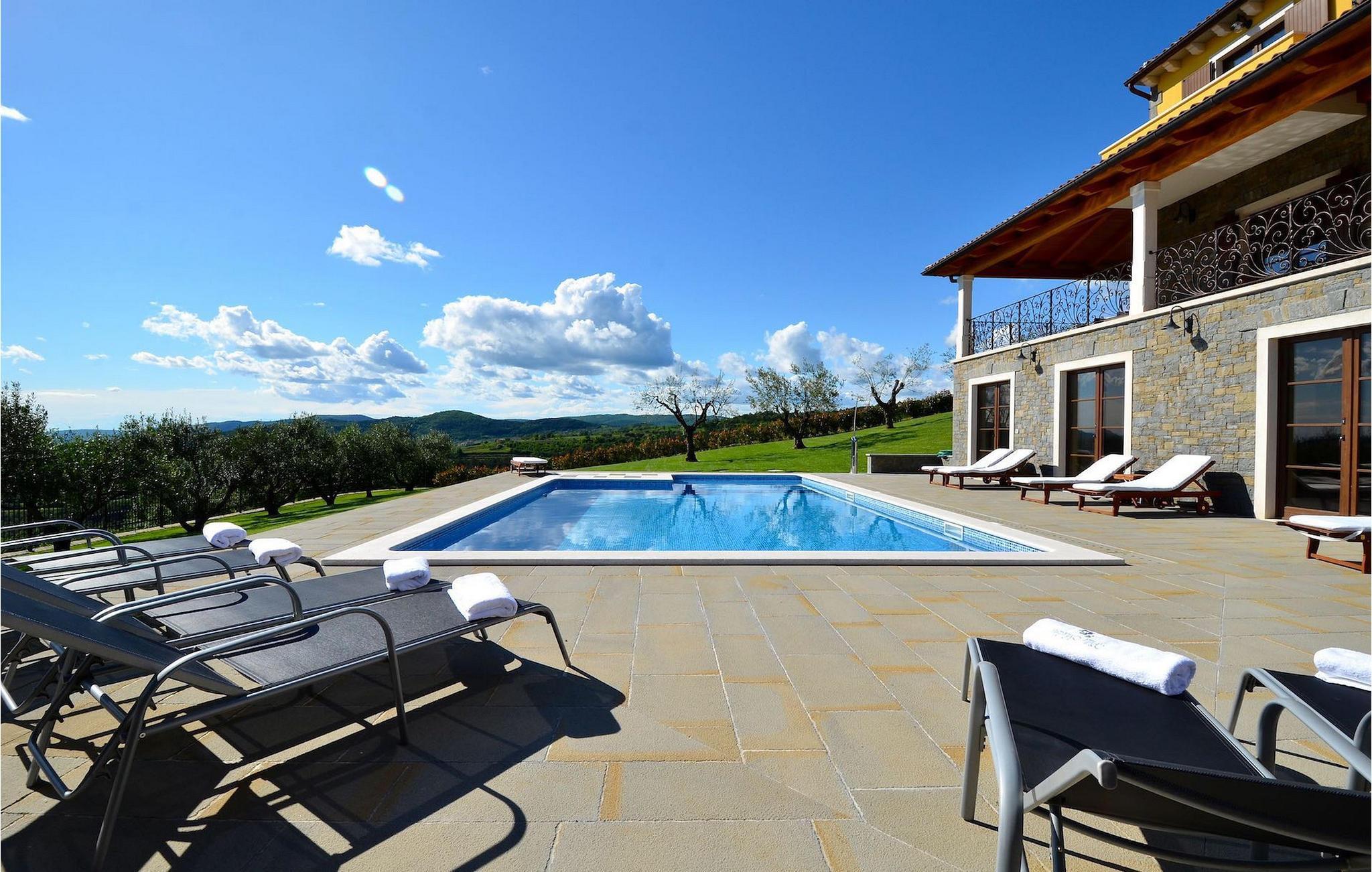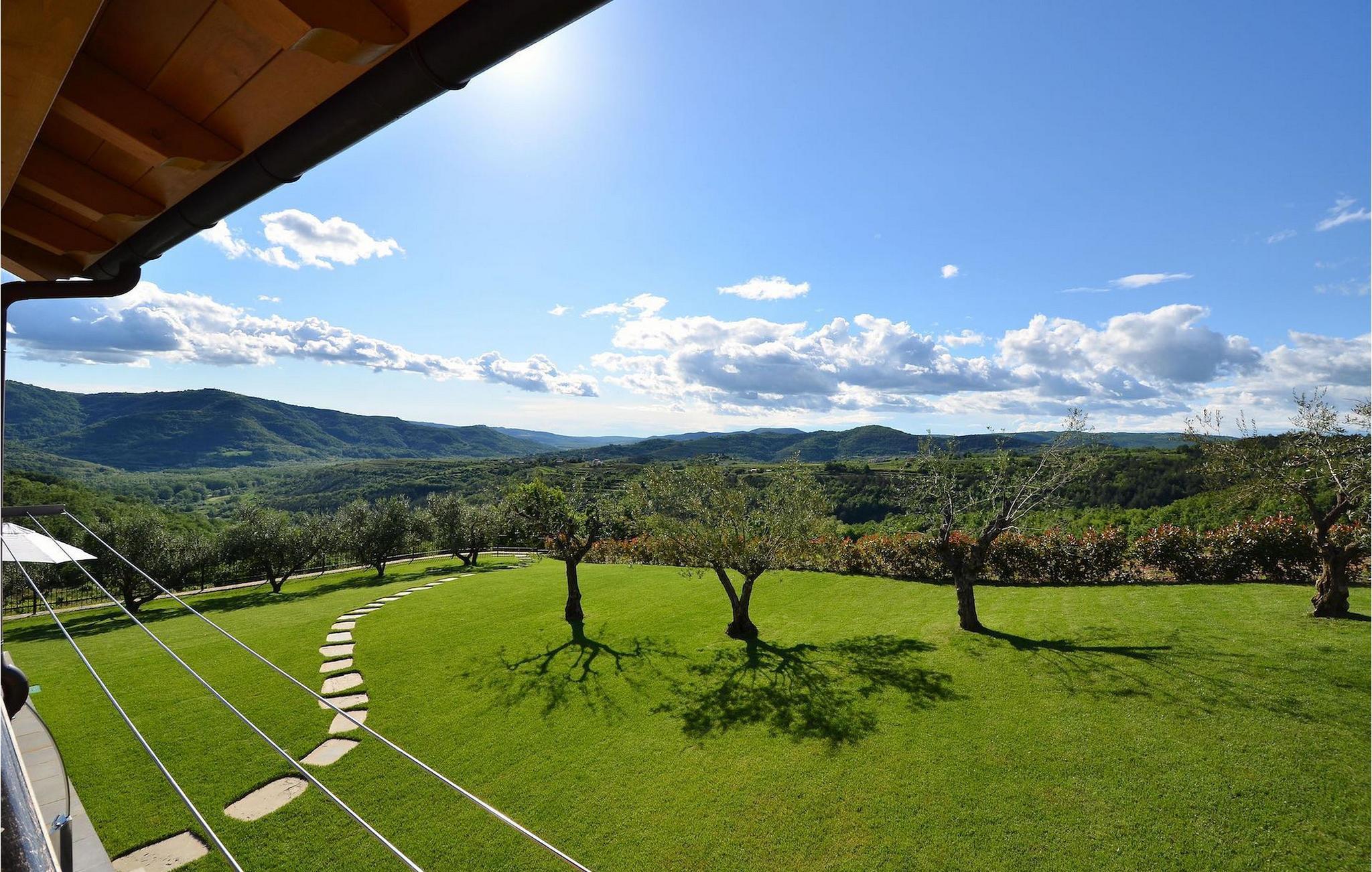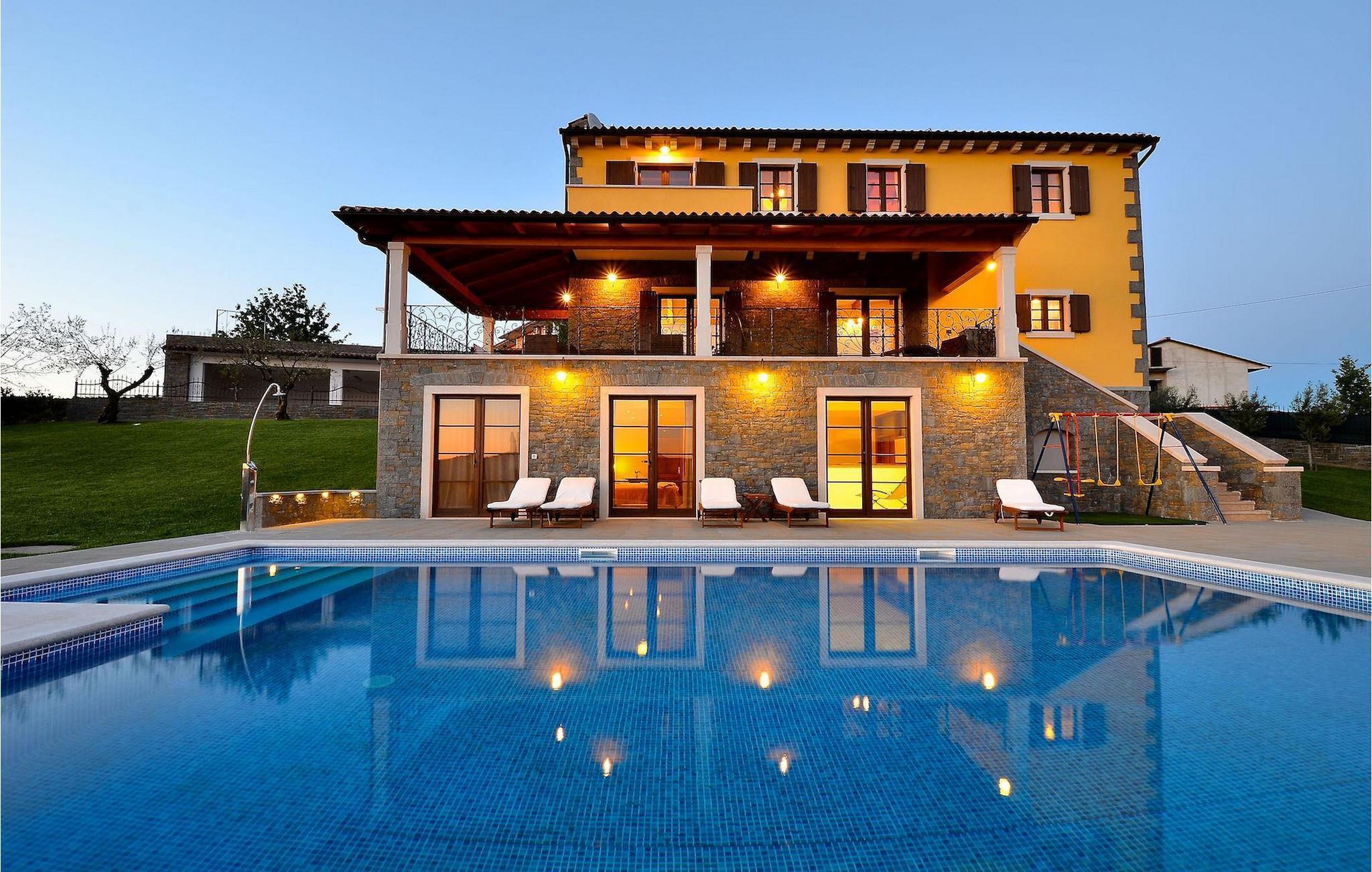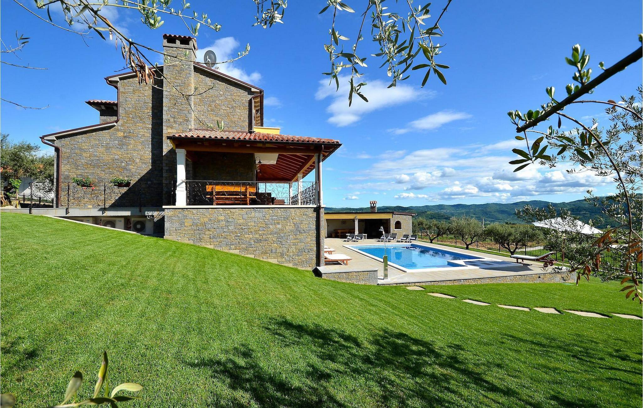 Wenn Sie sich nach einer Erfrischung in den heißen Sommermonaten sehnen, gibt es einen 50 m2 großen Pool Hydro-Massagepumpen. Sie können etwas Sonne tanken auf einem der zwölf Liegestühle und wenn Sie einen weniger isolierten Ort wünschen, nehmen Sie sich einen der Olivenbäume, die Ihnen etwas Schatten spenden können. Während Sie sorglos den Blick auf den See und die umgebenden hundert Jahre alten Bäume genießen, können Ihre jüngsten sich im Sandkasten, auf der Wippe oder den Schaukeln vergnügen. Im Garten befindet sich auch eine überdachte Außenküche mit einem Grill, einem Gasherd, 1 Waschbecken, 1 Kühlschrank und einem Tisch für zwölf Personen. Hier können Sie selbst eine istrische Spezialität zubereiten oder auf professionelle Hilfe vertrauen.
