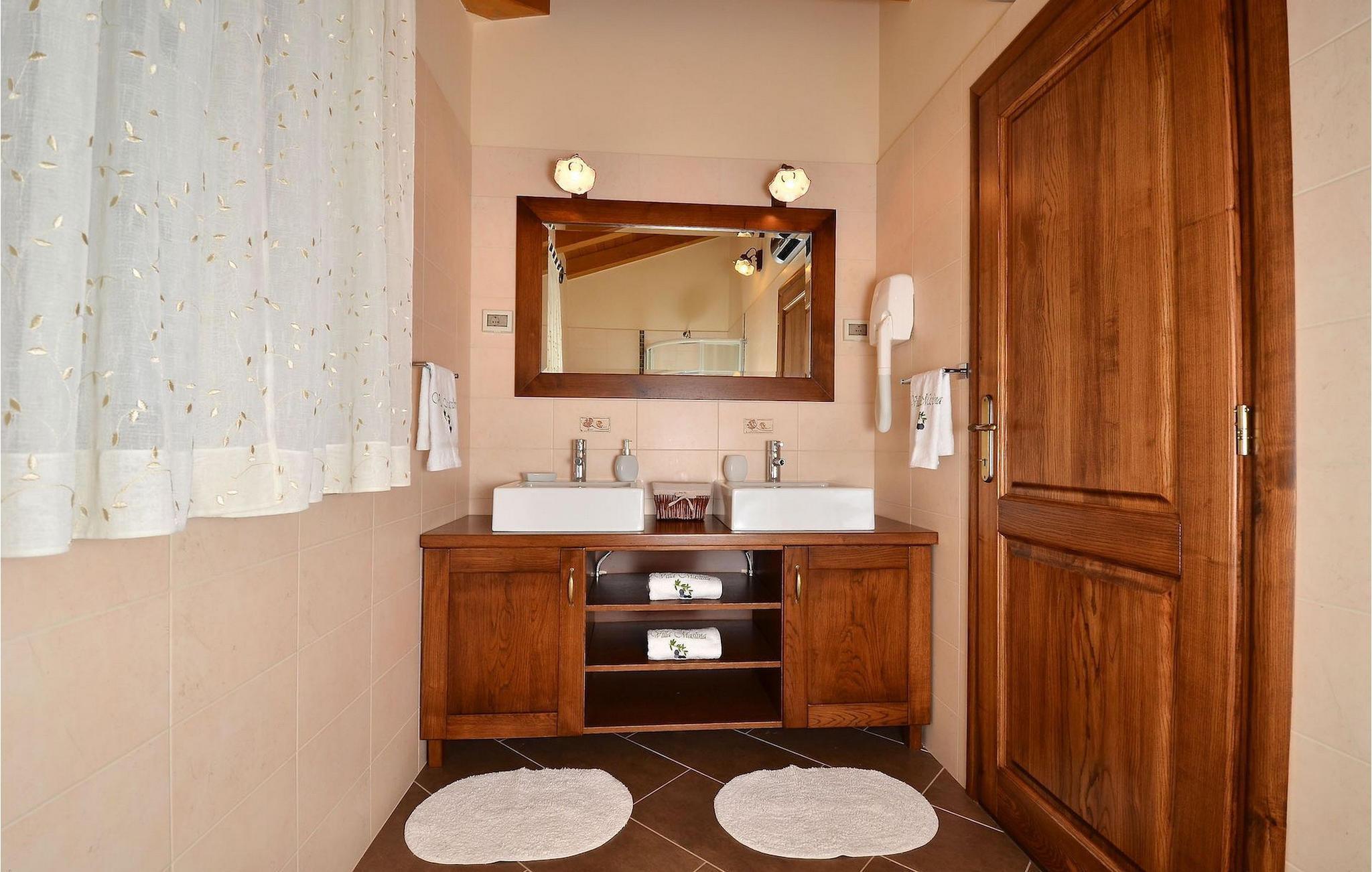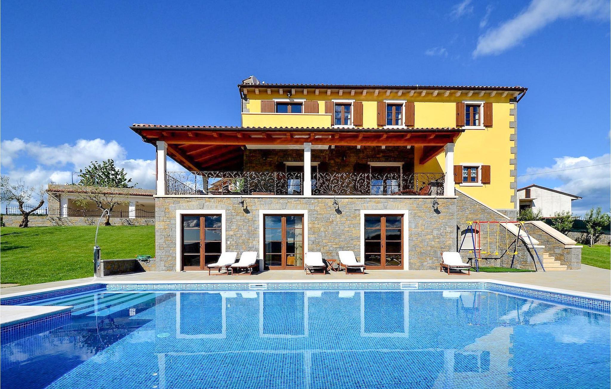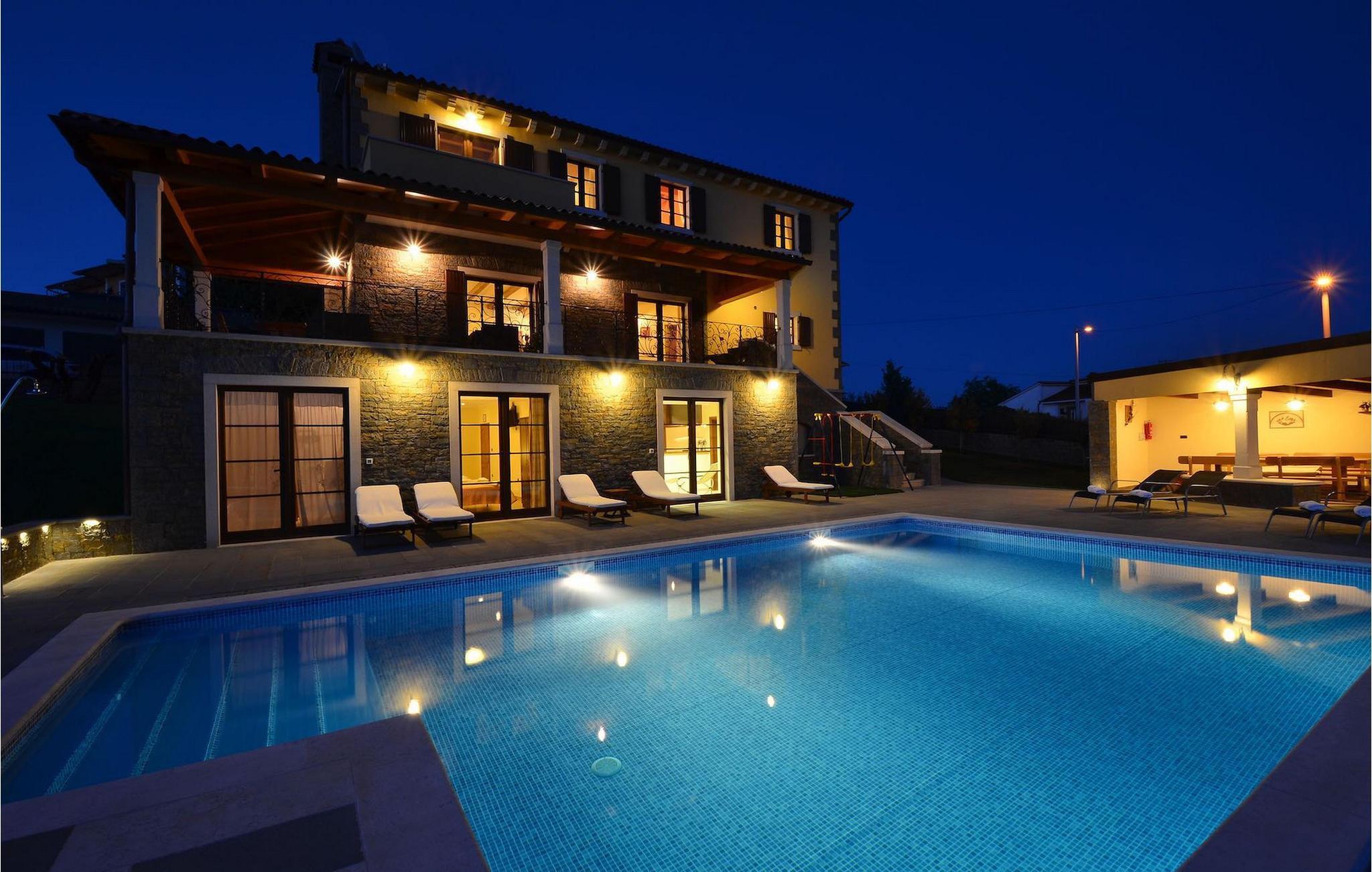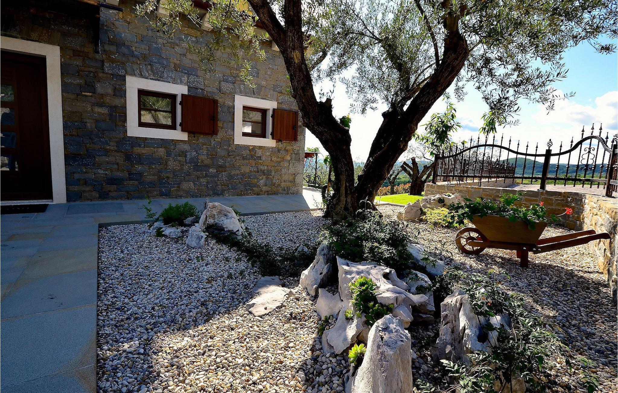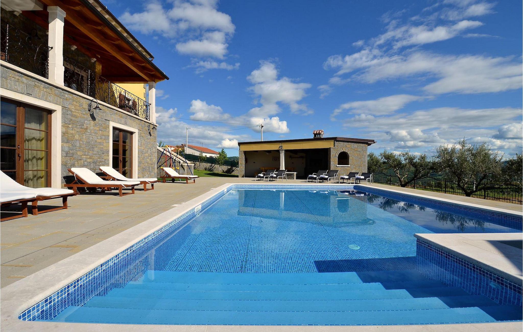 Wenn Sie sich nach einer Erfrischung in den heißen Sommermonaten sehnen, gibt es einen 50 m2 großen Pool Hydro-Massagepumpen. Sie können etwas Sonne tanken auf einem der zwölf Liegestühle und wenn Sie einen weniger isolierten Ort wünschen, nehmen Sie sich einen der Olivenbäume, die Ihnen etwas Schatten spenden können. Während Sie sorglos den Blick auf den See und die umgebenden hundert Jahre alten Bäume genießen, können Ihre jüngsten sich im Sandkasten, auf der Wippe oder den Schaukeln vergnügen. Im Garten befindet sich auch eine überdachte Außenküche mit einem Grill, einem Gasherd, 1 Waschbecken, 1 Kühlschrank und einem Tisch für zwölf Personen. Hier können Sie selbst eine istrische Spezialität zubereiten oder auf professionelle Hilfe vertrauen.
