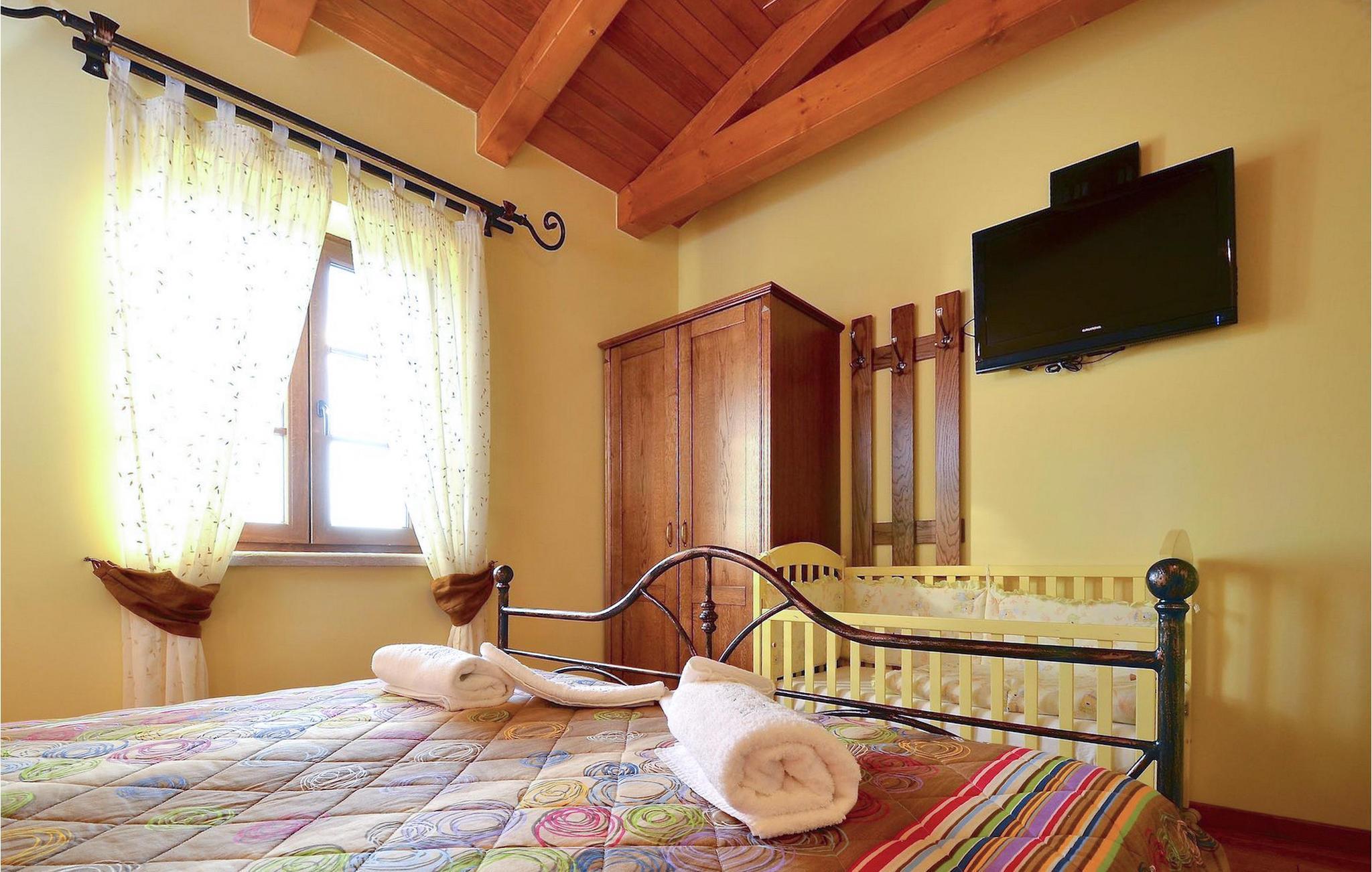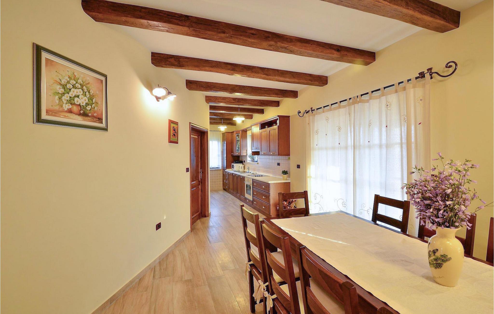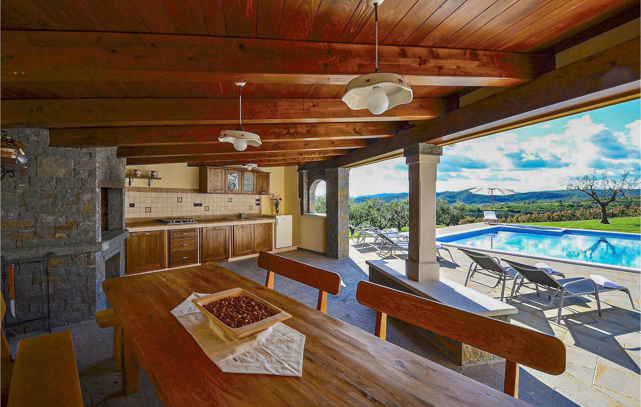 Nach dem Eintritt in ein geräumiges Wohnzimmer sehen Sie einen massiven Holztisch für 12 Personen und sobald Sie den unvermeidbaren Teil des istrischen Hauses betreten sehen Sie einen traditionellen Kamin. Während die Öffnung auf der linken Seite in eine Küche führt, die modern eingerichtet ist, führt Sie die Vorderseite zu einer Terrasse mit Blick über das Habitat der weißen Trüffel, den Stausee Butoniga und mehrere malerische, historische Kleinstädte. Die Preise beinhalten eine kostenfreie Trüffel-Kostprobe, organisiert von dem Eigentümer.