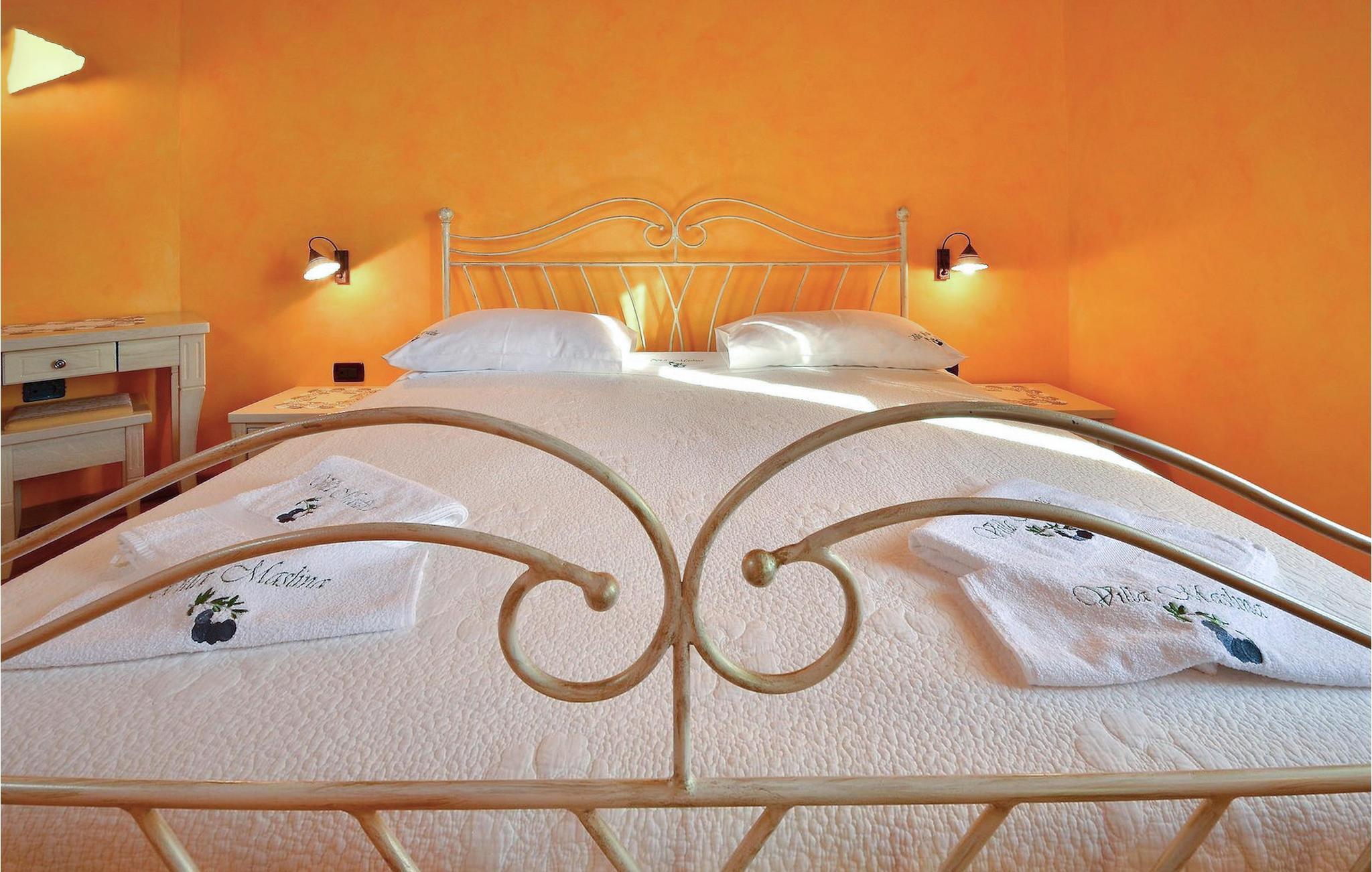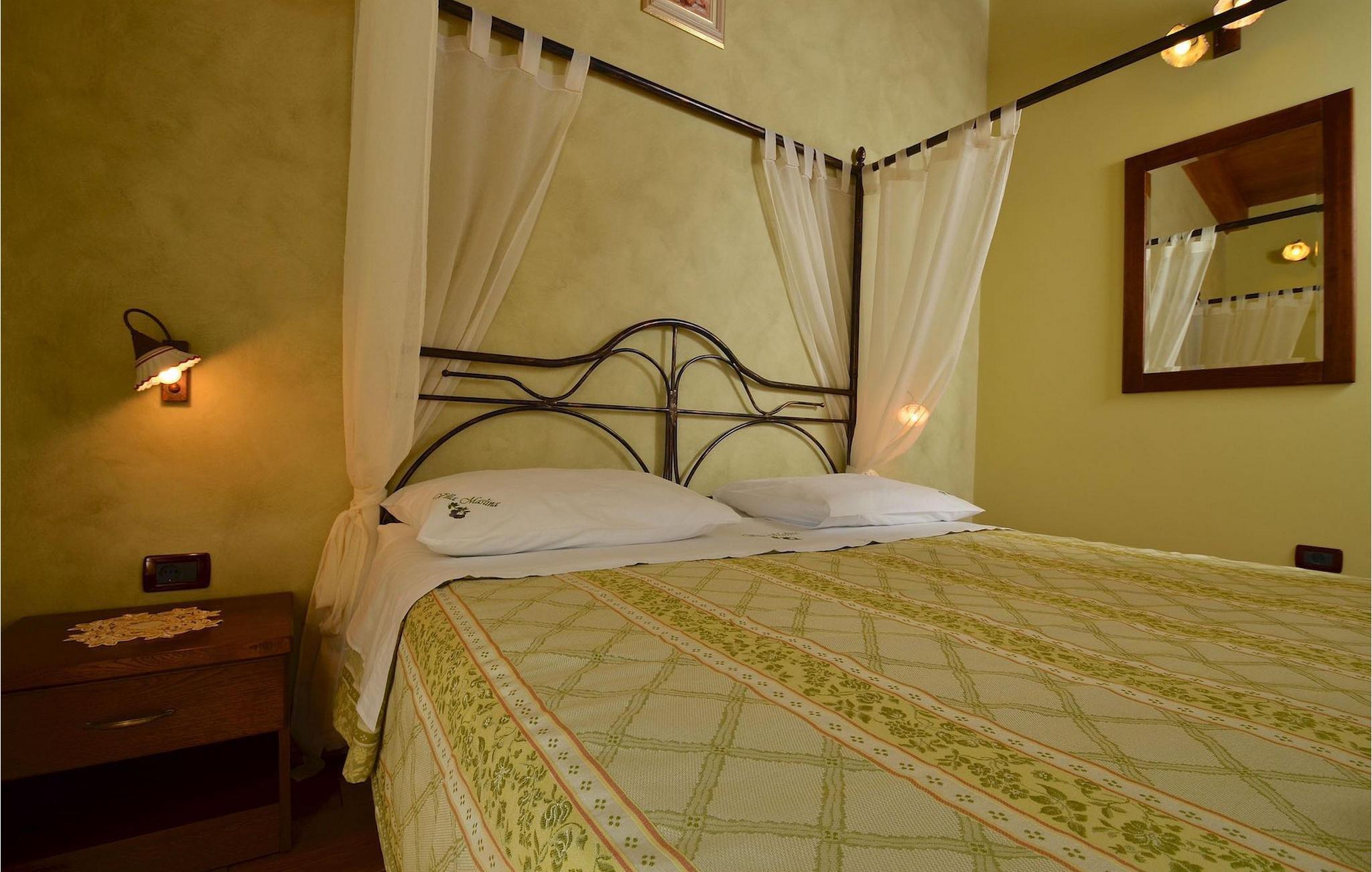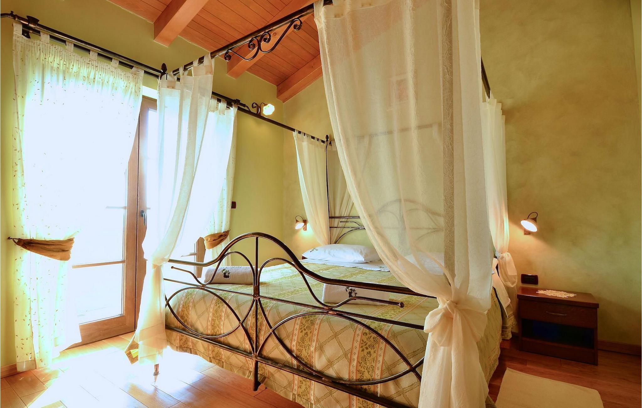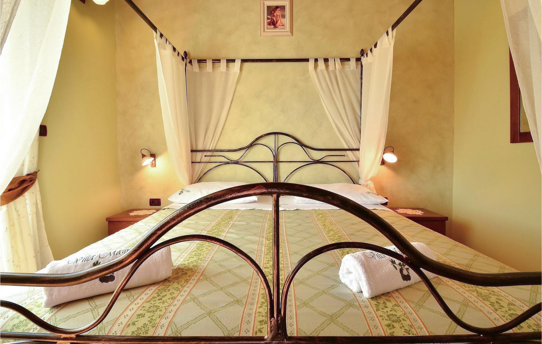 Im selben Stock befindet sich ein geräumiges Schlafzimmer für zwei Personen mit eigenem Bad und einem Weg auf die Terrasse.