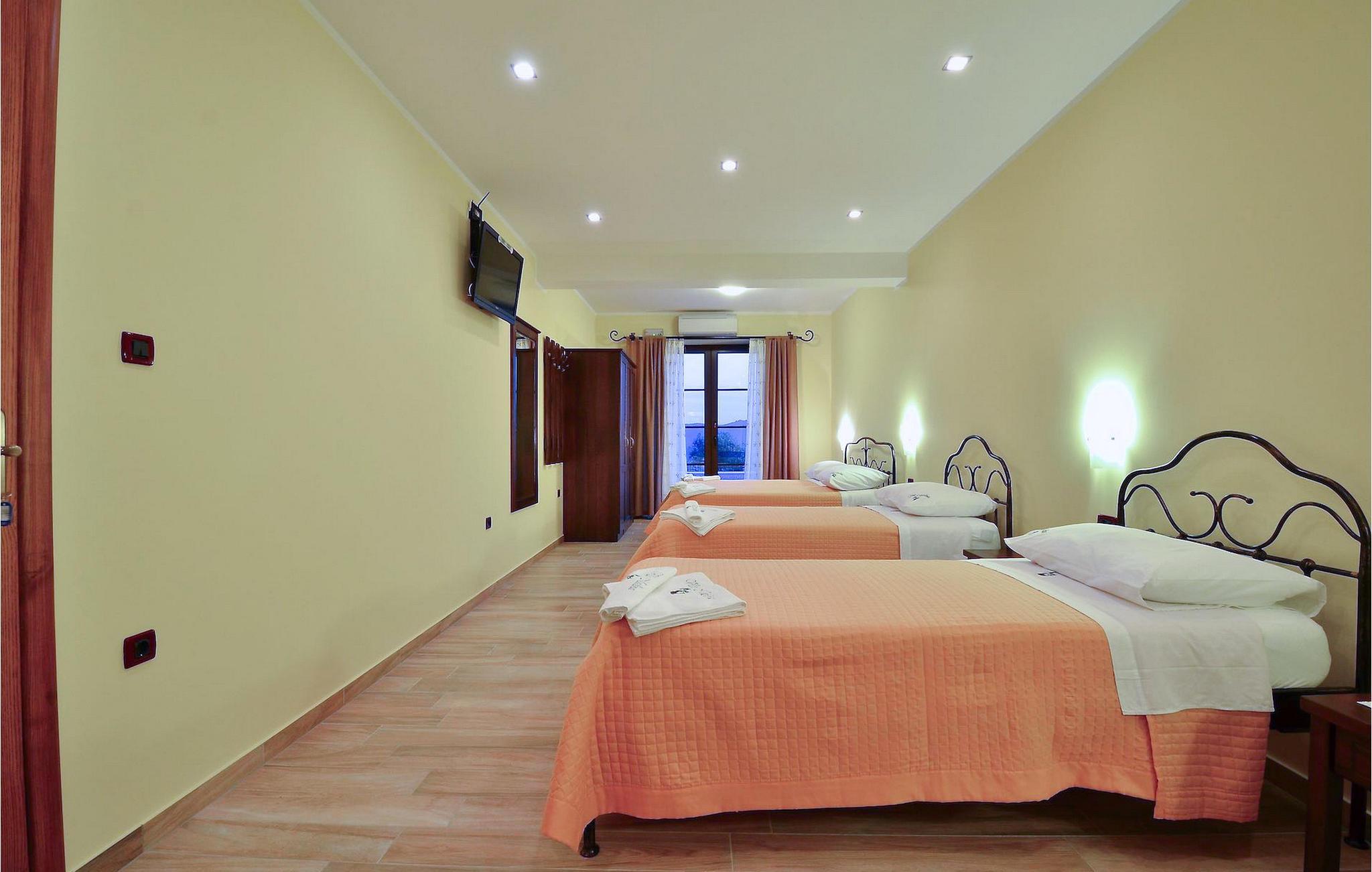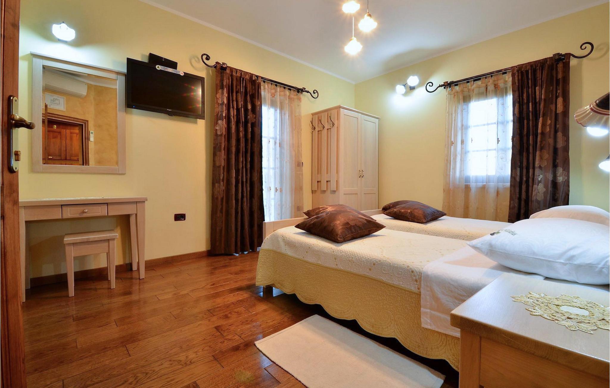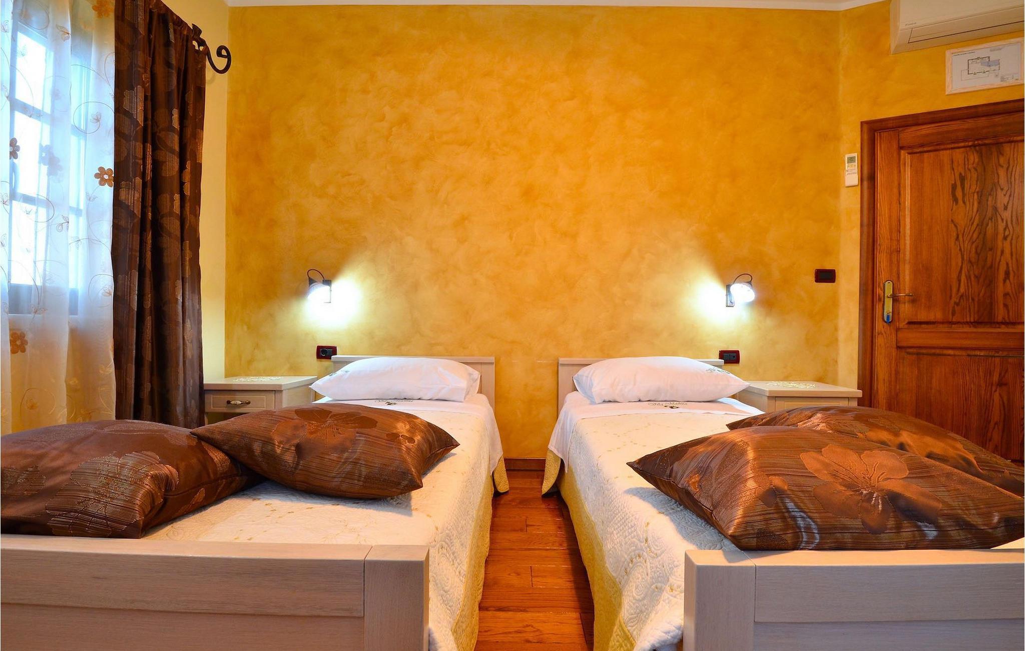 Das fünfte und auch größte Schlafzimmer befindet sich im Erdgeschoss, es verfügt über ein Doppel- und 2 Einzelbetten, ein modernes eigenes Bad und einen direkten Ausgang in den Garten.