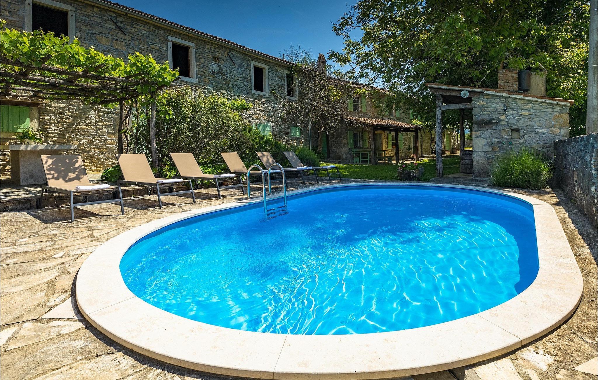 Im Innenhof der Villa befindet sich ein privater Pool mit Sonnenliegen, wo Sie die schöne Aussicht in die Natur genießen können. Genießen Sie es, mit Ihren Lieben Grillgerichte zuzubereiten und unvergessliche Abende zu verbringen. Buchen Sie die Villa Elena Buzet für einen perfekten Urlaub mit Familie und Freunden.In Zentralistrien, oder genauer gesagt im Tal von Istriens längstem Fluss Mirna, befindet sich die Villa Elena Buzet. Die Stadt mit beeindruckender, hunderte Jahre alter Architektur lädt Sie ein, dort eine besonders authentische Zeit zu verbringen. Während Sie die Straßen von Buzet und die Umgebung erkunden, werden Sie auf Weingüter, Brauereien und traditionelle Gasthäuser stoßen. Dort können Sie lokale Spezialitäten, von Essen bis zu Getränken, kosten. Dank der reichhaltigen Vegetation entlang des Flusses Mirna wird Buzet auch als “Stadt der Trüffel” bezeichnet. Neben Delikatessen hat dieses Gebiet mit zahlreichen Wander- und Radwegen ein großes Angebot an diversen Aktivitäten. Für abenteuerlichen Spaß wie Drachen- oder Gleitschirmfliegen können Sie das Camp “Raspadalica” nach ein paar Fahrminuten erreichen - Sie werden von der beeindruckenden Aussicht begeistert sein. Nicht weit weg von Buzet, sollten Sie definitiv die kleinste Stadt der Welt, Hum, besuchen und einen Blick auf den Wachturm, die Glocke und die Stadtloggia werfen. Im alten, kleinen Dorf Kotli können Sie das Naturerbe und die schöne Strömung des Flusses Recina mit seinen Wasserfällen und türkisfarbenen Becken bewundern - ein Naturphänomen, eine Wellness-Oase sowie tolle Idee für einen Tagesausflug.