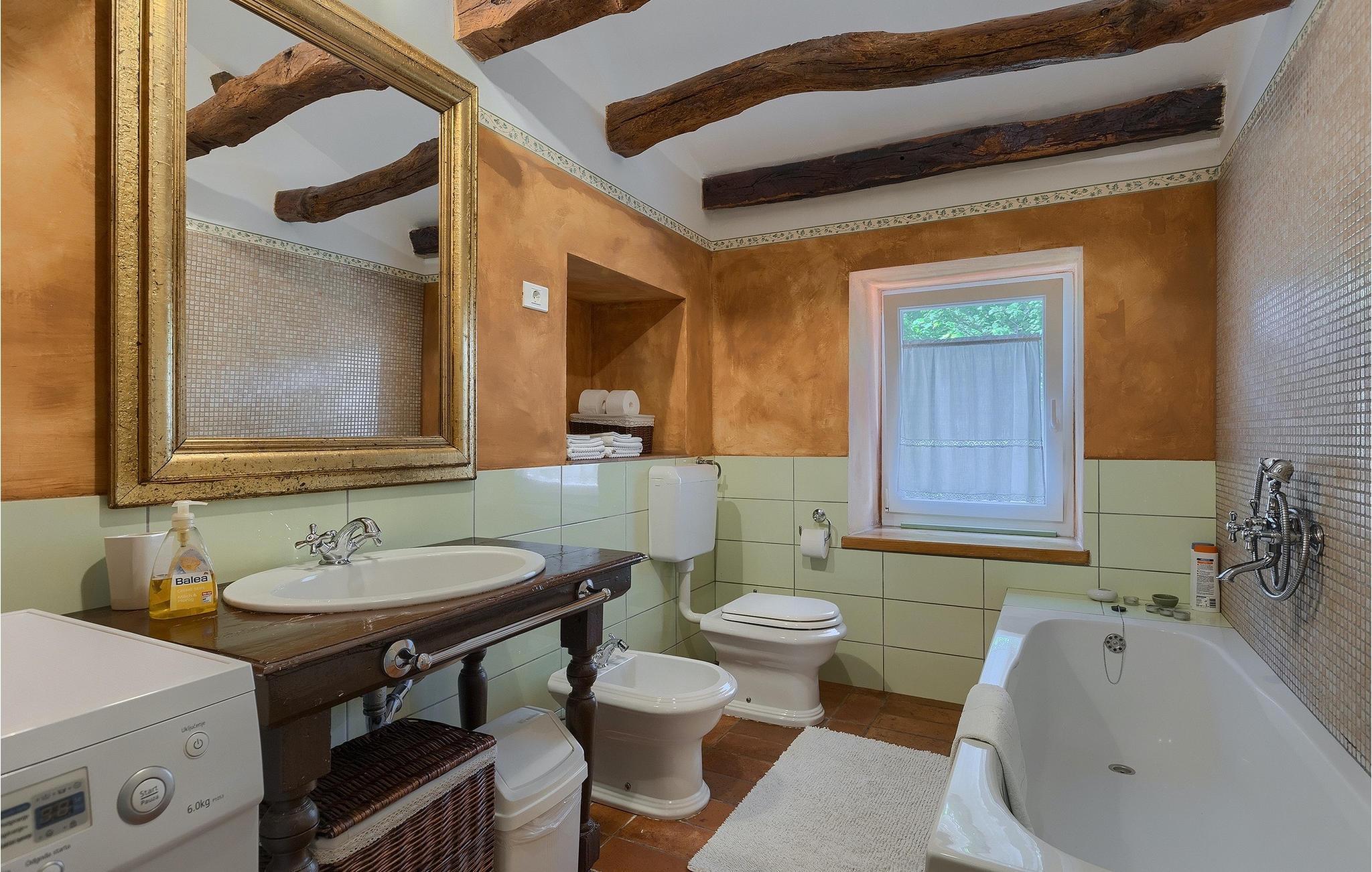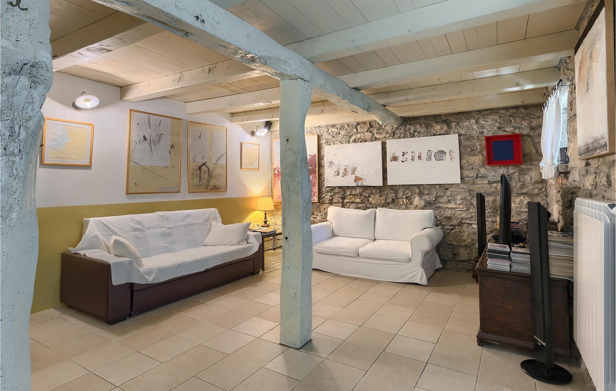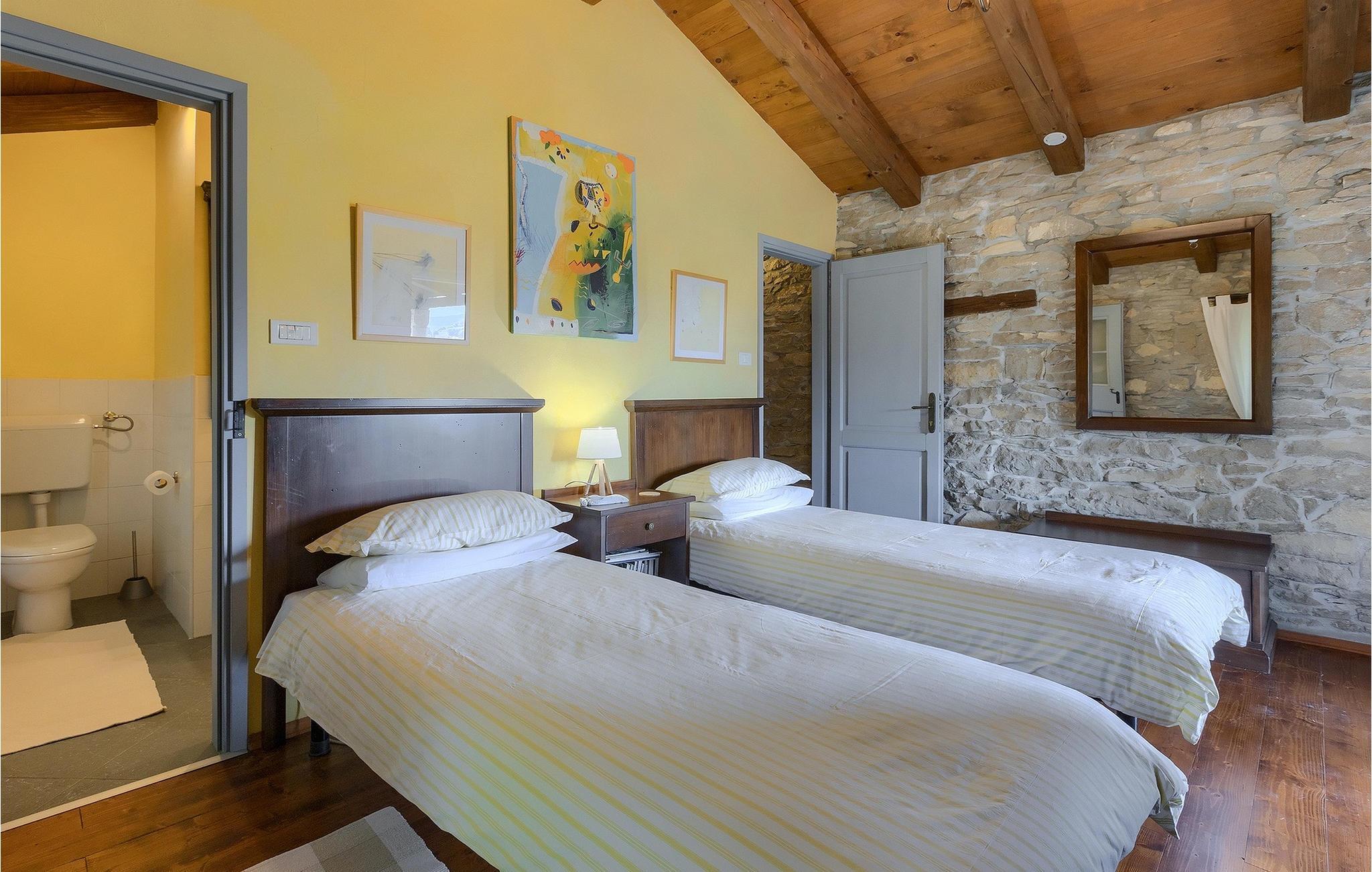 Das Erdgeschoss verfügt über eine Küche und ein Esszimmer, ein geräumiges Wohnzimmer, ein Schlafzimmer mit eigenem Bad und ein Wohnzimmer mit separatem Eingang. Auf der zweiten Etage befinden sich zwei Schlafzimmer mit ein suite Badezimmern. Das Innere der Villa ist mit Steinmauern dekoriert und bietet Ihnen ein echtes istrisches Erlebnis. Villa Elena Buzet ist von wunderschöner Natur umgeben und wir sind sicher, dass Sie die schöne Aussicht auf die Stadt Buzet genießen werden.