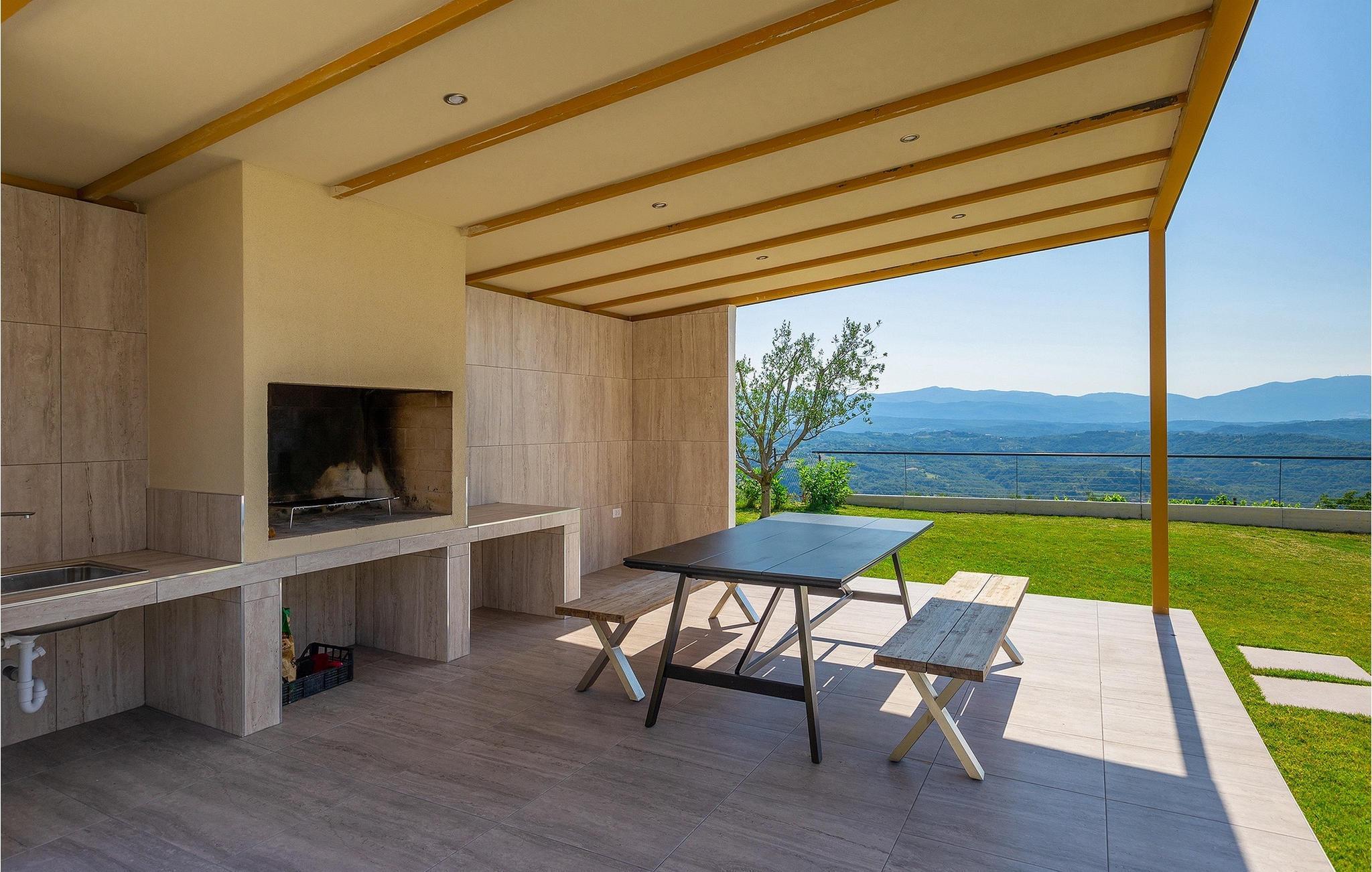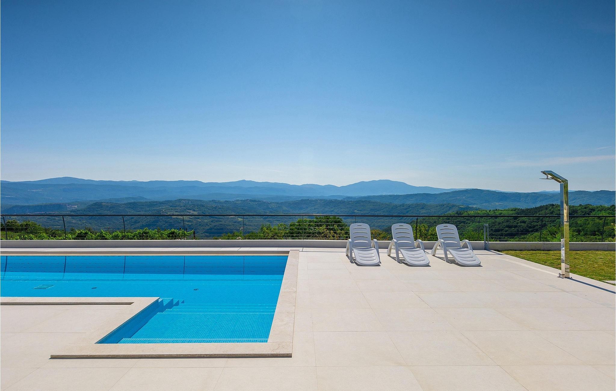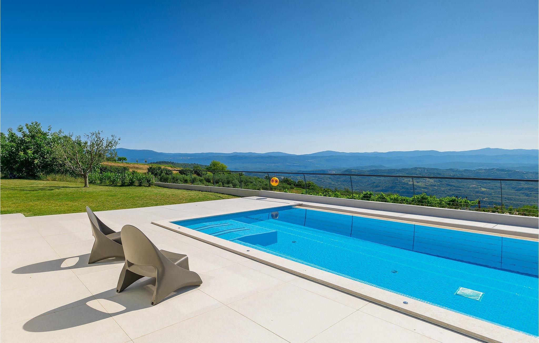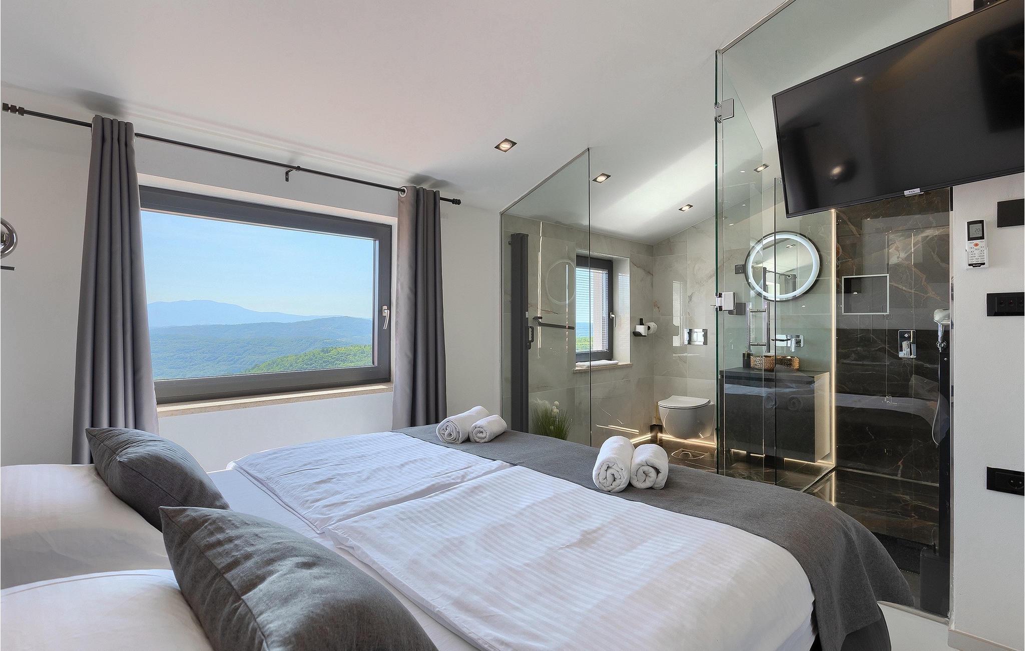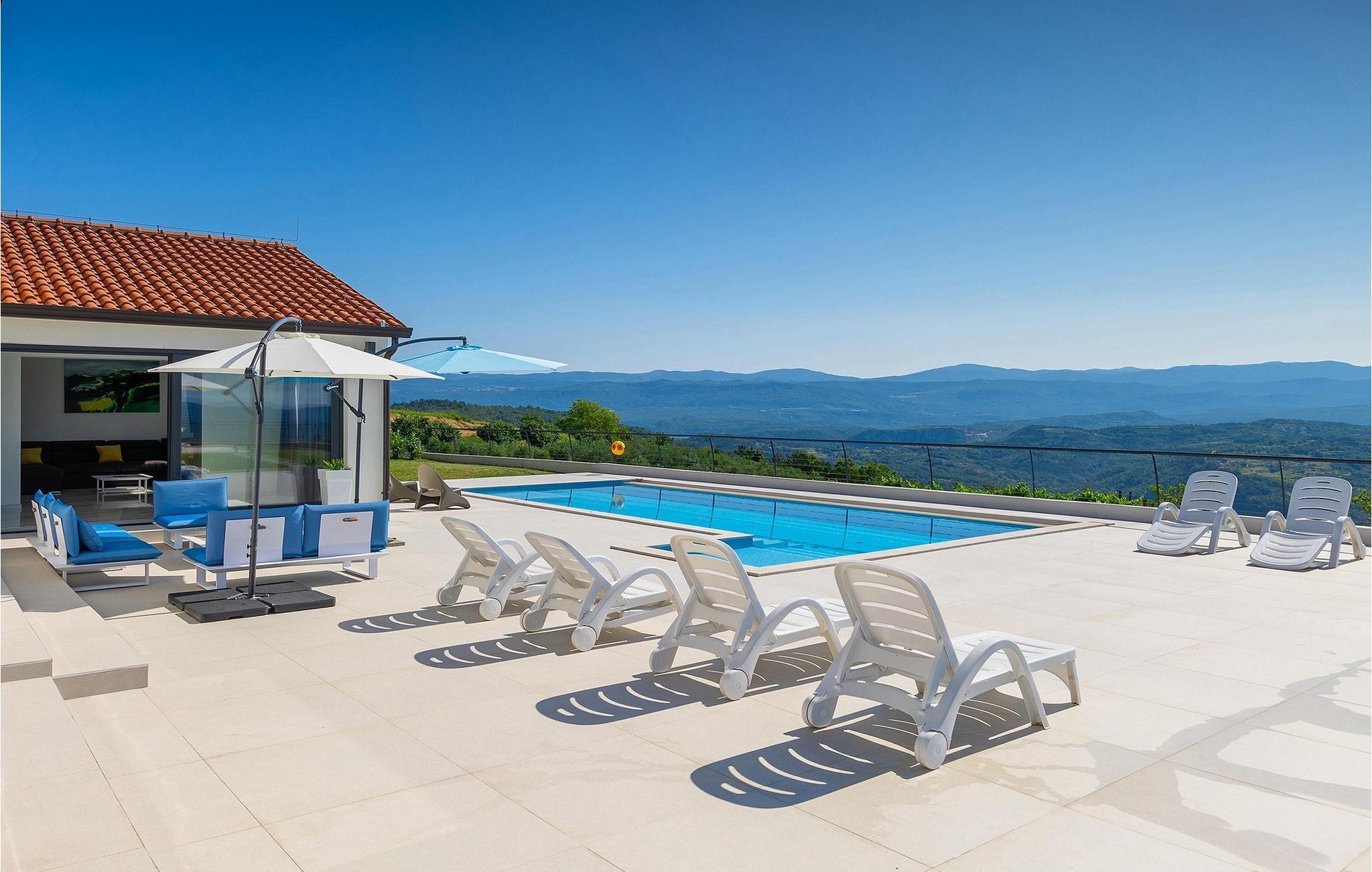 Villa Panorama ist eine wunderschöne moderne Villa für einen erholsamen Urlaub in der ruhigen Umgebung unberührter Natur. Diese Villa ist ideal für Liebhaber eines aktiven Urlaubs. Die Villa bietet einen privaten Pool mit Hydromassage von 60 m2, ein Fitnessstudio im Erdgeschoss der Villa, Tischtennis, Badminton, Darts... Outdoor-Spaß erwartet die jüngsten Gäste auf dem Kinderspielplatz mit Rutsche, Schaukel und Klettergerüst. Treffen Sie sich mit Ihren Lieben am Esstisch im Freien mit 8 Sitzplätzen und genießen Sie die auf dem Grill zubereiteten Mahlzeiten. Im Inneren der Villa finden Sie einen offenen Raum mit 2 Wohnzimmern, einer voll ausgestatteten Küche und einem Esszimmer für 8 Personen. Jedes Zimmer ist mit einer wunderschönen Aussicht dekoriert, als wäre es mit einem Pinsel gemalt worden, was den Namen der Villa rechtfertigt. Entspannen Sie sich im Wohnzimmer auf dem Massagesessel. Außerhalb der Villa finden Sie Entspannung und Erfrischung im schönen Pool mit Liegestühlen oder im Whirlpool im Freien. Genießen Sie das zweite Wohnzimmer voller Tageslicht und mit Blick auf den Pool und die umliegende Landschaft. Die Villa verfügt über 2 Schlafzimmer mit Doppelbetten und eigenem Bad im ersten Stock und ein Schlafzimmer mit Doppelbett und separatem Bad im Erdgeschoss. Verpassen Sie nicht einen Urlaub in der wunderschönen modernen Villa Panorama, wo Sie jeden Tag von einer märchenhaften Aussicht verzaubert werden und in einem charmanten istrischen Dorf mit seinen Inhalten entspannen können. Die Villa Panorama befindet sich im istrischen Dorf Vrh, in der Nähe von Buzet. Der Name des Ortes deutet auf seine Lage auf einem Hügel nördlich des Butoniga-Sees hin. Von der Spitze des Glockenturms aus haben Sie sicherlich den schönsten Panoramablick auf Istrien. Neben der schönen Aussicht wird Sie auch das gastronomische Angebot dieser Region begeistern. Buzet ist die Heimat der berühmten schwarzen und weißen Trüffel. Probieren Sie es auf einem örtlichen Trüffelfest oder gehen Sie mit den Einheimischen auf Trüffelsuche. Setzen Sie Ihr gastronomisches Vergnügen auf den Spuren von Olivenöl und Wein fort und lassen Sie sich in zahlreichen Tavernen und Restaurants mit traditionellen Gerichten verwöhnen, die von den Gastgebern mit Liebe zubereitet werden. Entdecken Sie das reiche historische und kulturelle Erbe auf den “Straßen des glagolitischen Volkes”. Für Abenteurer bietet dieses Gebiet zahlreiche Wander- und Radwege, Paragliding, Freeclimbing sowie versteckte Höhlen und Grotten. Schwimmen Sie am schönsten Strand mit kristallklarem Meer in Novigrad.