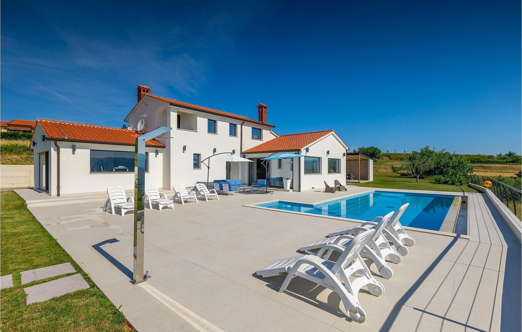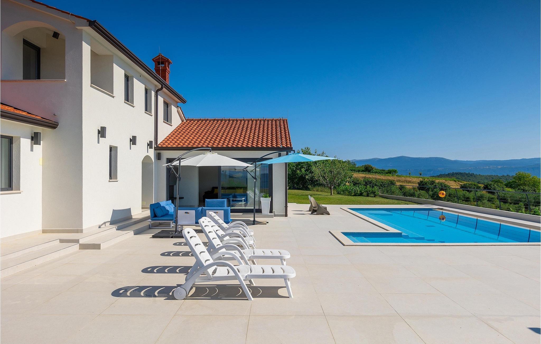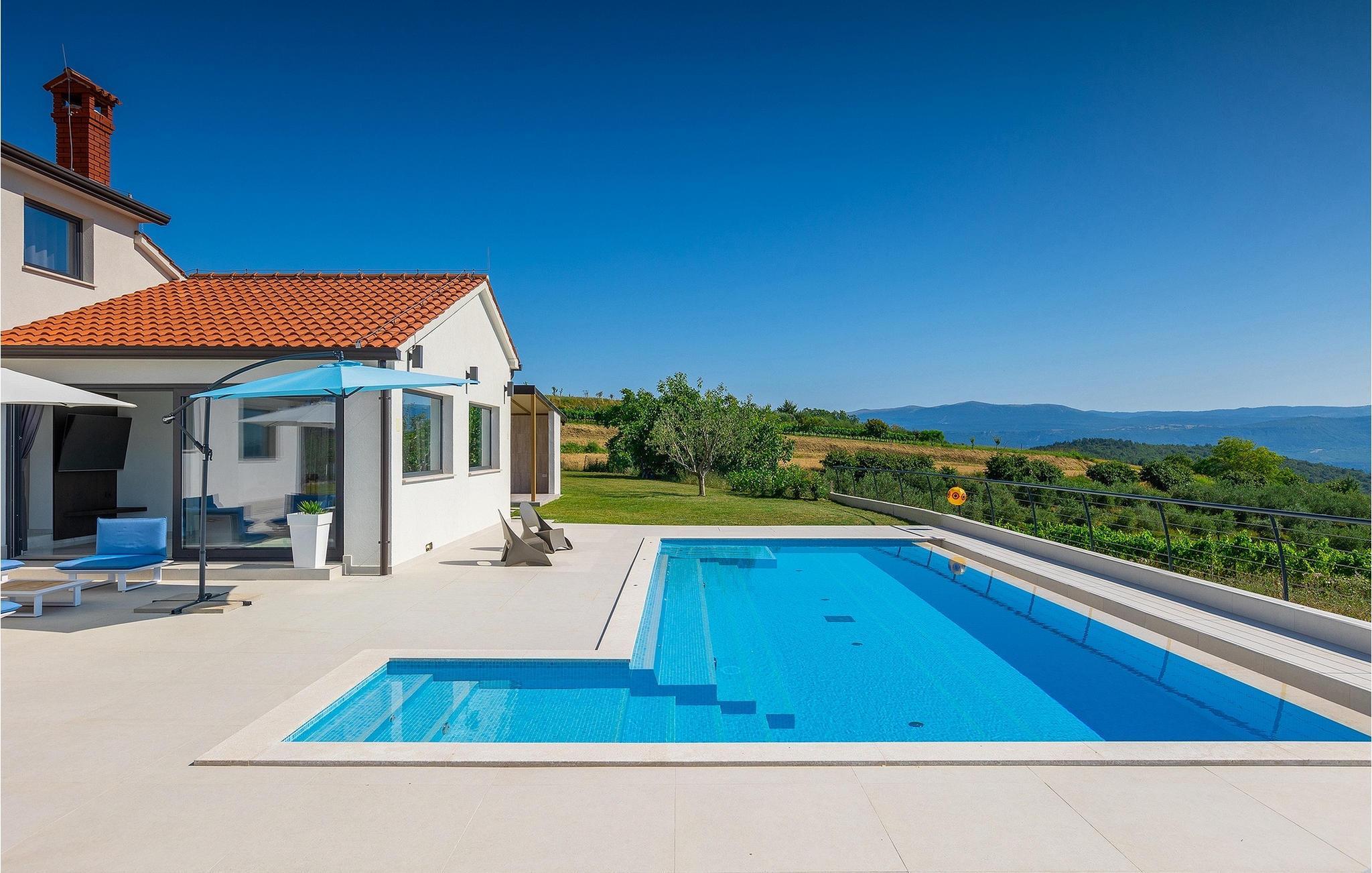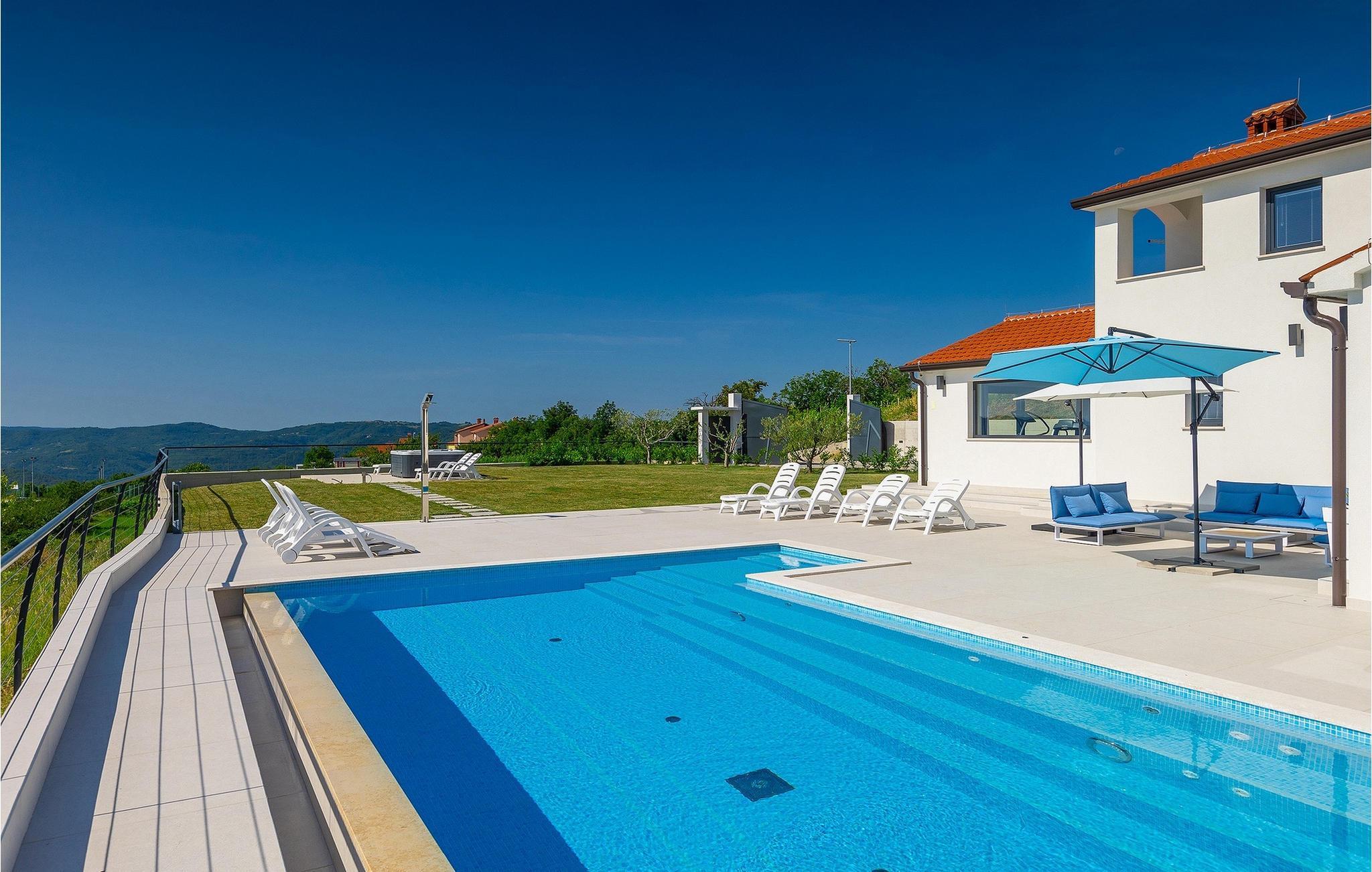 Villa Panorama ist eine wunderschöne moderne Villa für einen erholsamen Urlaub in der ruhigen Umgebung unberührter Natur. Diese Villa ist ideal für Liebhaber eines aktiven Urlaubs. Die Villa bietet einen privaten Pool mit Hydromassage von 60 m2, ein Fitnessstudio im Erdgeschoss der Villa, Tischtennis, Badminton, Darts... Outdoor-Spaß erwartet die jüngsten Gäste auf dem Kinderspielplatz mit Rutsche, Schaukel und Klettergerüst. Treffen Sie sich mit Ihren Lieben am Esstisch im Freien mit 8 Sitzplätzen und genießen Sie die auf dem Grill zubereiteten Mahlzeiten. Im Inneren der Villa finden Sie einen offenen Raum mit 2 Wohnzimmern, einer voll ausgestatteten Küche und einem Esszimmer für 8 Personen. Jedes Zimmer ist mit einer wunderschönen Aussicht dekoriert, als wäre es mit einem Pinsel gemalt worden, was den Namen der Villa rechtfertigt. Entspannen Sie sich im Wohnzimmer auf dem Massagesessel. Außerhalb der Villa finden Sie Entspannung und Erfrischung im schönen Pool mit Liegestühlen oder im Whirlpool im Freien. Genießen Sie das zweite Wohnzimmer voller Tageslicht und mit Blick auf den Pool und die umliegende Landschaft. Die Villa verfügt über 2 Schlafzimmer mit Doppelbetten und eigenem Bad im ersten Stock und ein Schlafzimmer mit Doppelbett und separatem Bad im Erdgeschoss. Verpassen Sie nicht einen Urlaub in der wunderschönen modernen Villa Panorama, wo Sie jeden Tag von einer märchenhaften Aussicht verzaubert werden und in einem charmanten istrischen Dorf mit seinen Inhalten entspannen können. Die Villa Panorama befindet sich im istrischen Dorf Vrh, in der Nähe von Buzet. Der Name des Ortes deutet auf seine Lage auf einem Hügel nördlich des Butoniga-Sees hin. Von der Spitze des Glockenturms aus haben Sie sicherlich den schönsten Panoramablick auf Istrien. Neben der schönen Aussicht wird Sie auch das gastronomische Angebot dieser Region begeistern. Buzet ist die Heimat der berühmten schwarzen und weißen Trüffel. Probieren Sie es auf einem örtlichen Trüffelfest oder gehen Sie mit den Einheimischen auf Trüffelsuche. Setzen Sie Ihr gastronomisches Vergnügen auf den Spuren von Olivenöl und Wein fort und lassen Sie sich in zahlreichen Tavernen und Restaurants mit traditionellen Gerichten verwöhnen, die von den Gastgebern mit Liebe zubereitet werden. Entdecken Sie das reiche historische und kulturelle Erbe auf den “Straßen des glagolitischen Volkes”. Für Abenteurer bietet dieses Gebiet zahlreiche Wander- und Radwege, Paragliding, Freeclimbing sowie versteckte Höhlen und Grotten. Schwimmen Sie am schönsten Strand mit kristallklarem Meer in Novigrad.