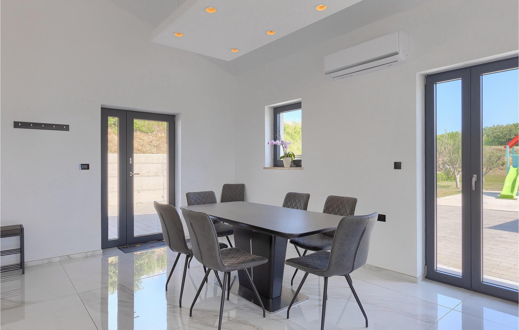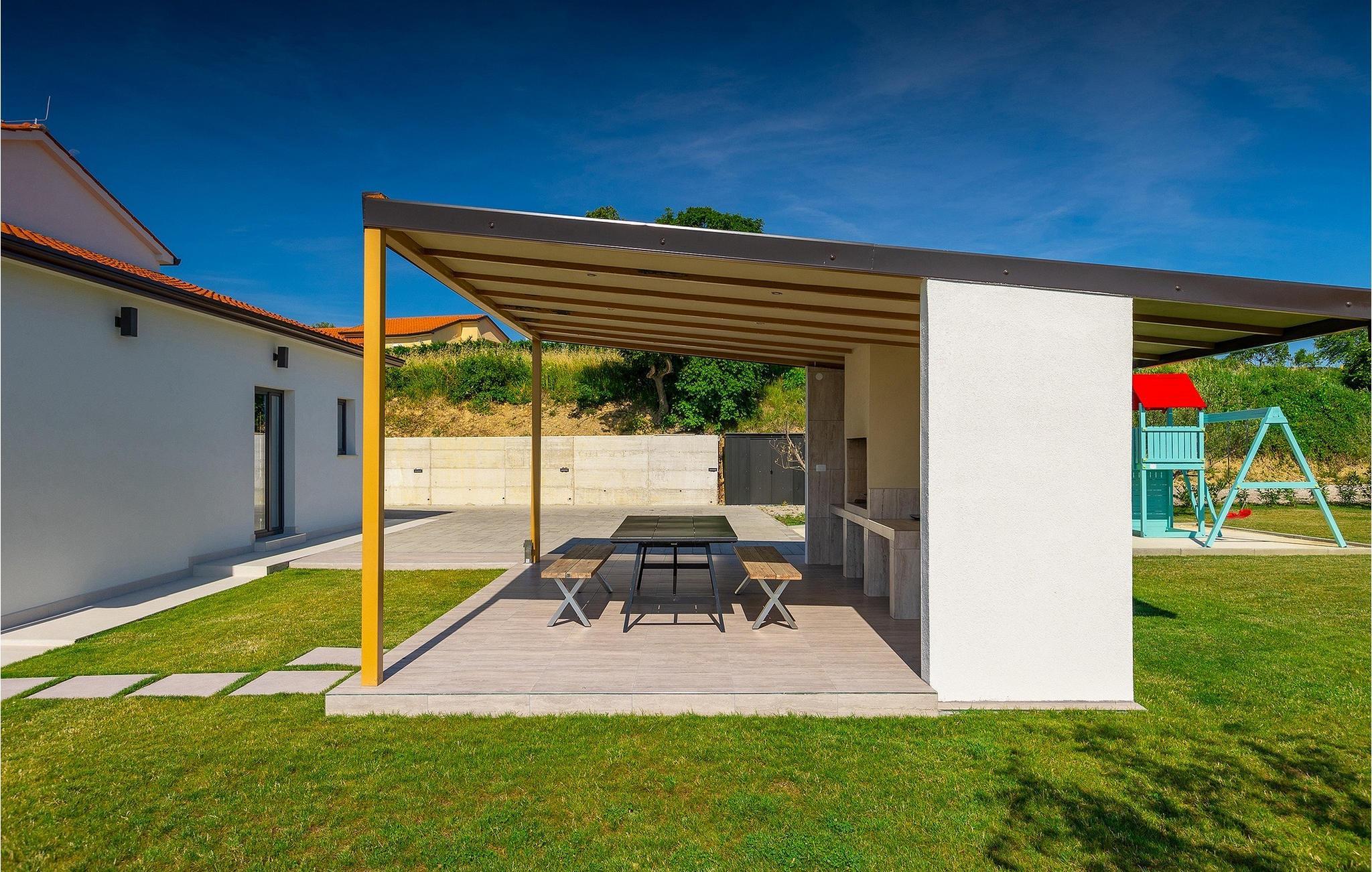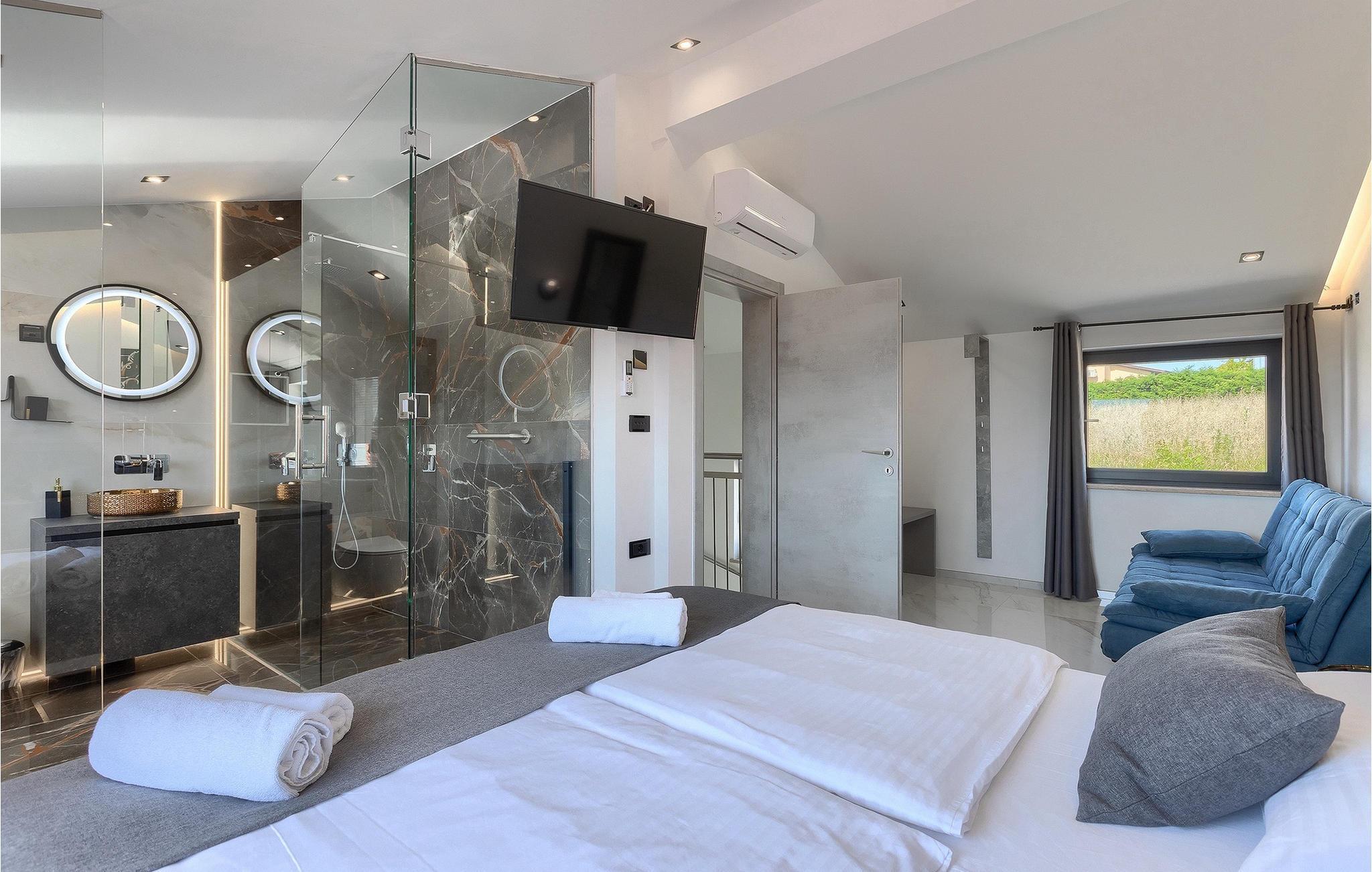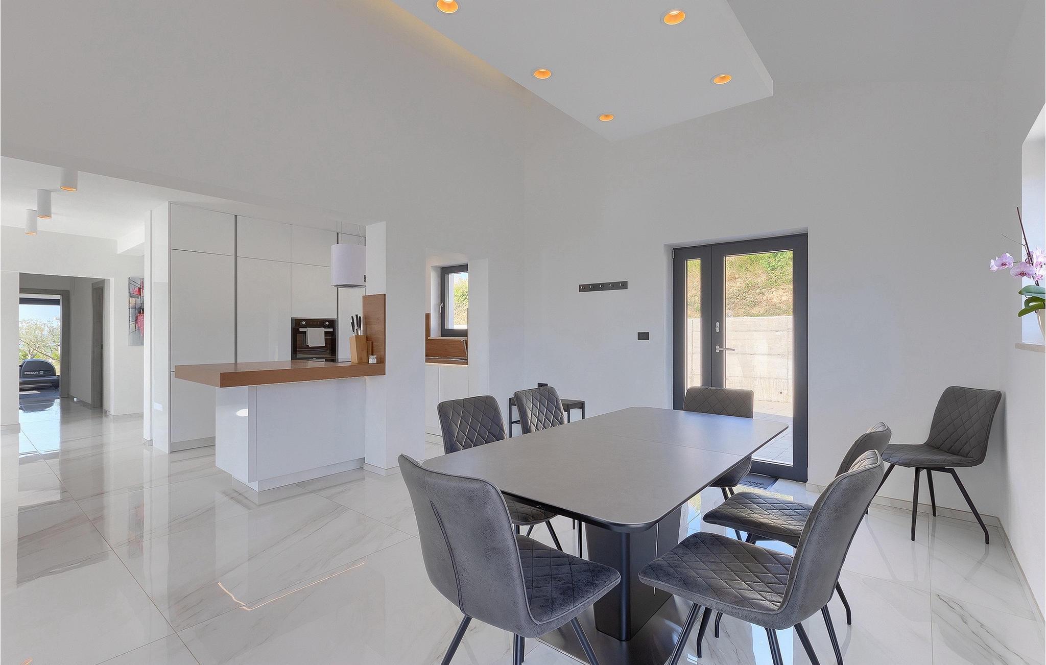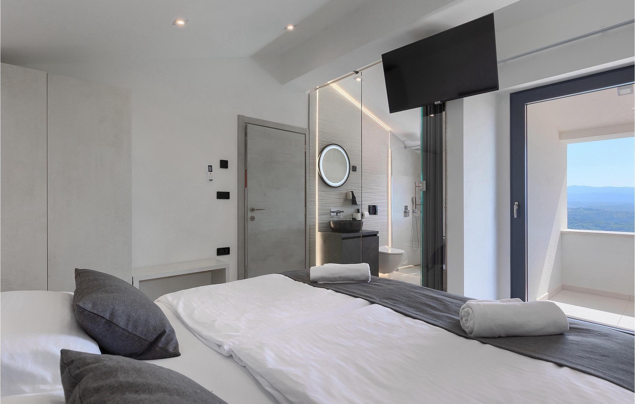 Villa Panorama ist eine wunderschöne moderne Villa für einen erholsamen Urlaub in der ruhigen Umgebung unberührter Natur. Diese Villa ist ideal für Liebhaber eines aktiven Urlaubs. Die Villa bietet einen privaten Pool mit Hydromassage von 60 m2, ein Fitnessstudio im Erdgeschoss der Villa, Tischtennis, Badminton, Darts... Outdoor-Spaß erwartet die jüngsten Gäste auf dem Kinderspielplatz mit Rutsche, Schaukel und Klettergerüst. Treffen Sie sich mit Ihren Lieben am Esstisch im Freien mit 8 Sitzplätzen und genießen Sie die auf dem Grill zubereiteten Mahlzeiten. Im Inneren der Villa finden Sie einen offenen Raum mit 2 Wohnzimmern, einer voll ausgestatteten Küche und einem Esszimmer für 8 Personen. Jedes Zimmer ist mit einer wunderschönen Aussicht dekoriert, als wäre es mit einem Pinsel gemalt worden, was den Namen der Villa rechtfertigt. Entspannen Sie sich im Wohnzimmer auf dem Massagesessel. Außerhalb der Villa finden Sie Entspannung und Erfrischung im schönen Pool mit Liegestühlen oder im Whirlpool im Freien. Genießen Sie das zweite Wohnzimmer voller Tageslicht und mit Blick auf den Pool und die umliegende Landschaft. Die Villa verfügt über 2 Schlafzimmer mit Doppelbetten und eigenem Bad im ersten Stock und ein Schlafzimmer mit Doppelbett und separatem Bad im Erdgeschoss. Verpassen Sie nicht einen Urlaub in der wunderschönen modernen Villa Panorama, wo Sie jeden Tag von einer märchenhaften Aussicht verzaubert werden und in einem charmanten istrischen Dorf mit seinen Inhalten entspannen können. Die Villa Panorama befindet sich im istrischen Dorf Vrh, in der Nähe von Buzet. Der Name des Ortes deutet auf seine Lage auf einem Hügel nördlich des Butoniga-Sees hin. Von der Spitze des Glockenturms aus haben Sie sicherlich den schönsten Panoramablick auf Istrien. Neben der schönen Aussicht wird Sie auch das gastronomische Angebot dieser Region begeistern. Buzet ist die Heimat der berühmten schwarzen und weißen Trüffel. Probieren Sie es auf einem örtlichen Trüffelfest oder gehen Sie mit den Einheimischen auf Trüffelsuche. Setzen Sie Ihr gastronomisches Vergnügen auf den Spuren von Olivenöl und Wein fort und lassen Sie sich in zahlreichen Tavernen und Restaurants mit traditionellen Gerichten verwöhnen, die von den Gastgebern mit Liebe zubereitet werden. Entdecken Sie das reiche historische und kulturelle Erbe auf den “Straßen des glagolitischen Volkes”. Für Abenteurer bietet dieses Gebiet zahlreiche Wander- und Radwege, Paragliding, Freeclimbing sowie versteckte Höhlen und Grotten. Schwimmen Sie am schönsten Strand mit kristallklarem Meer in Novigrad.