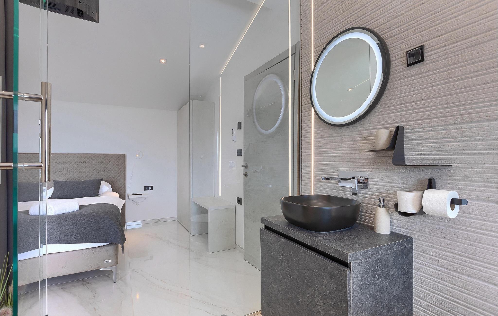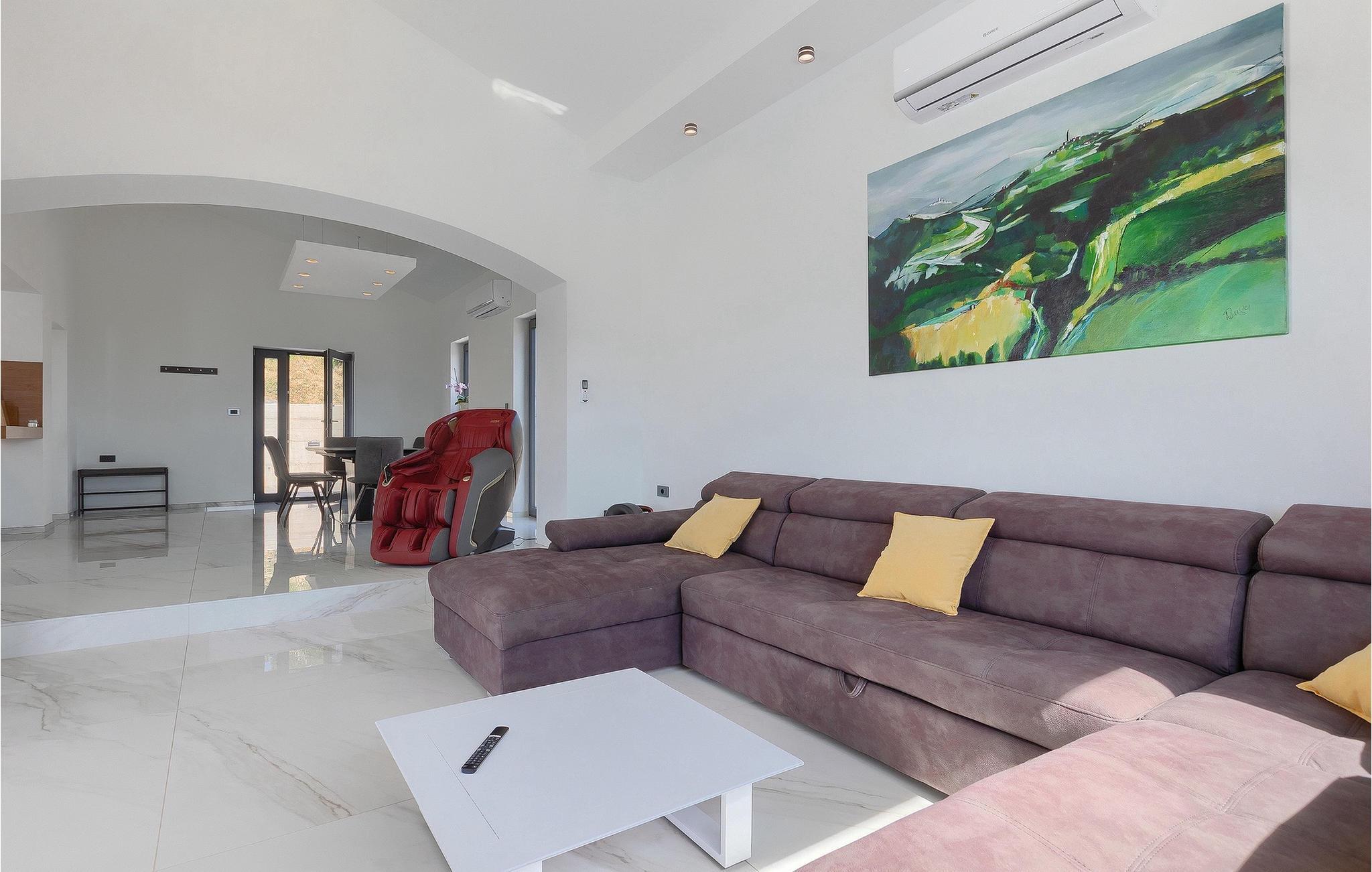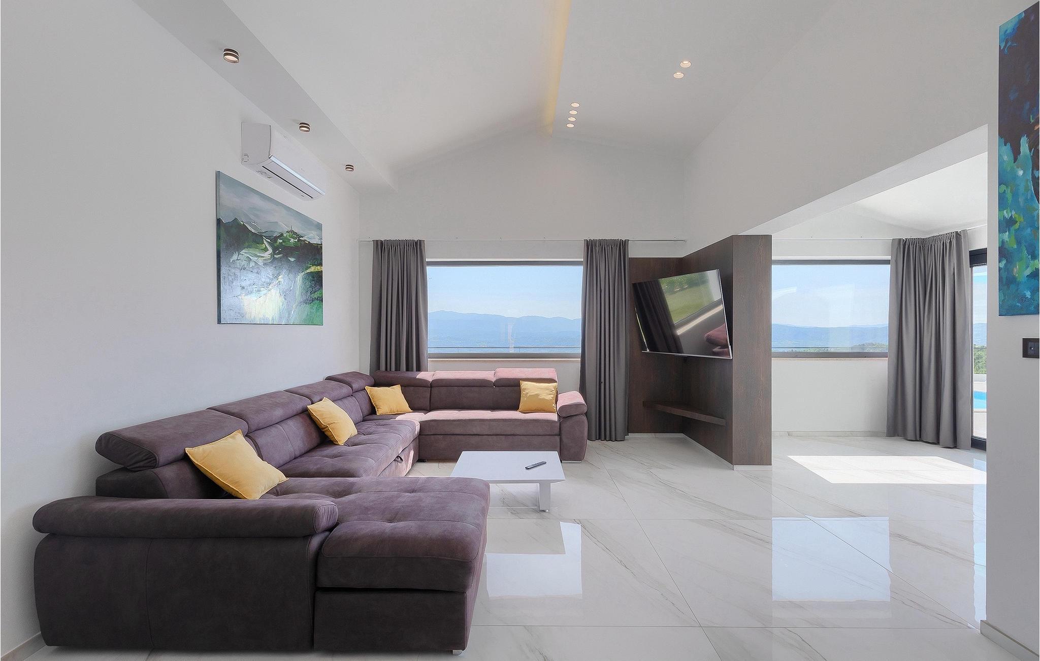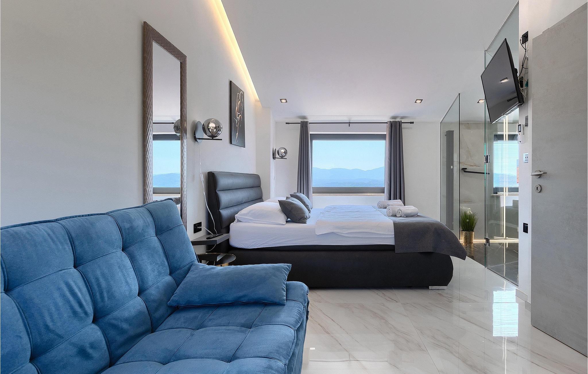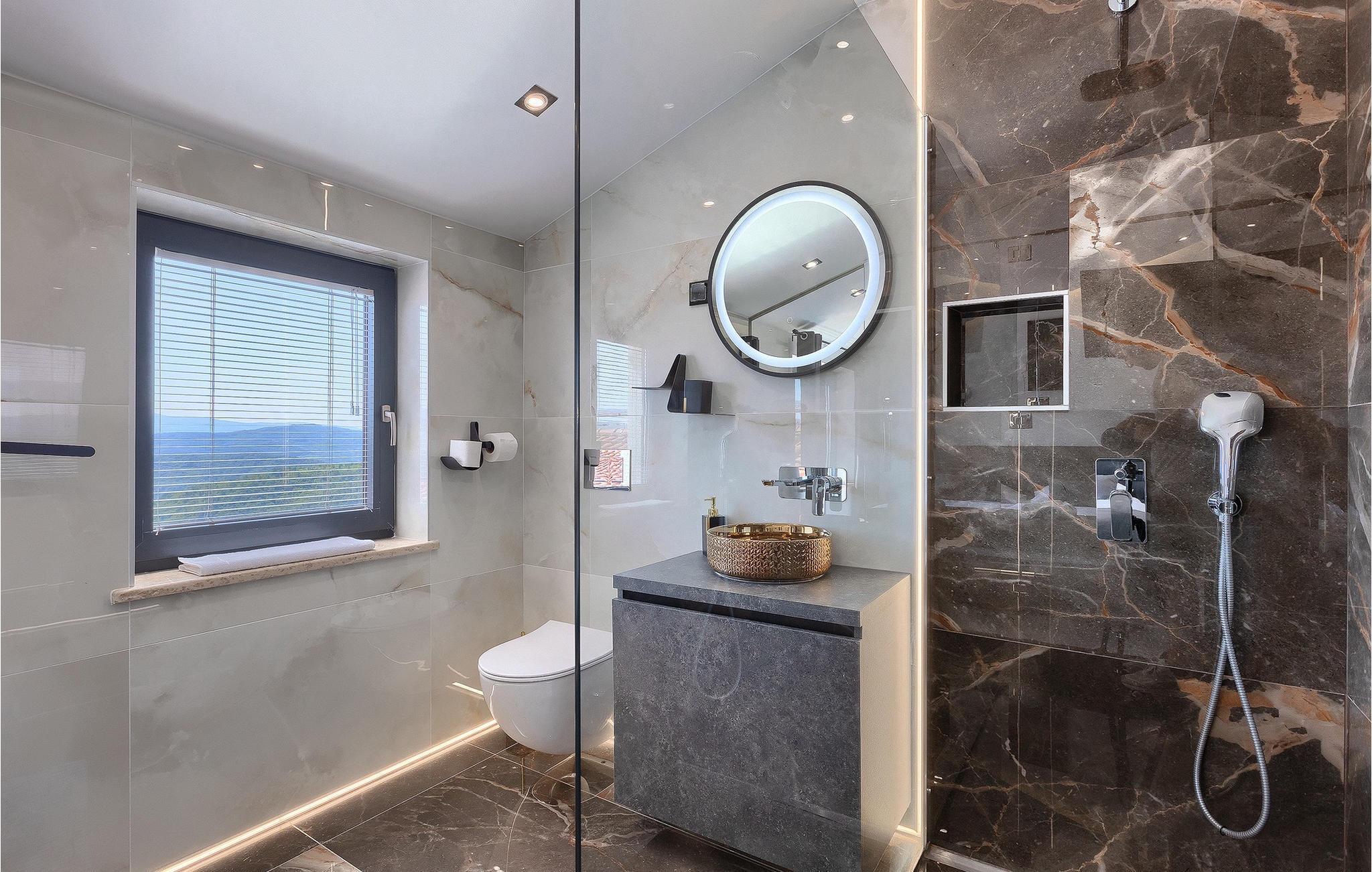 Villa Panorama ist eine wunderschöne moderne Villa für einen erholsamen Urlaub in der ruhigen Umgebung unberührter Natur. Diese Villa ist ideal für Liebhaber eines aktiven Urlaubs. Die Villa bietet einen privaten Pool mit Hydromassage von 60 m2, ein Fitnessstudio im Erdgeschoss der Villa, Tischtennis, Badminton, Darts... Outdoor-Spaß erwartet die jüngsten Gäste auf dem Kinderspielplatz mit Rutsche, Schaukel und Klettergerüst. Treffen Sie sich mit Ihren Lieben am Esstisch im Freien mit 8 Sitzplätzen und genießen Sie die auf dem Grill zubereiteten Mahlzeiten. Im Inneren der Villa finden Sie einen offenen Raum mit 2 Wohnzimmern, einer voll ausgestatteten Küche und einem Esszimmer für 8 Personen. Jedes Zimmer ist mit einer wunderschönen Aussicht dekoriert, als wäre es mit einem Pinsel gemalt worden, was den Namen der Villa rechtfertigt. Entspannen Sie sich im Wohnzimmer auf dem Massagesessel. Außerhalb der Villa finden Sie Entspannung und Erfrischung im schönen Pool mit Liegestühlen oder im Whirlpool im Freien. Genießen Sie das zweite Wohnzimmer voller Tageslicht und mit Blick auf den Pool und die umliegende Landschaft. Die Villa verfügt über 2 Schlafzimmer mit Doppelbetten und eigenem Bad im ersten Stock und ein Schlafzimmer mit Doppelbett und separatem Bad im Erdgeschoss. Verpassen Sie nicht einen Urlaub in der wunderschönen modernen Villa Panorama, wo Sie jeden Tag von einer märchenhaften Aussicht verzaubert werden und in einem charmanten istrischen Dorf mit seinen Inhalten entspannen können. Die Villa Panorama befindet sich im istrischen Dorf Vrh, in der Nähe von Buzet. Der Name des Ortes deutet auf seine Lage auf einem Hügel nördlich des Butoniga-Sees hin. Von der Spitze des Glockenturms aus haben Sie sicherlich den schönsten Panoramablick auf Istrien. Neben der schönen Aussicht wird Sie auch das gastronomische Angebot dieser Region begeistern. Buzet ist die Heimat der berühmten schwarzen und weißen Trüffel. Probieren Sie es auf einem örtlichen Trüffelfest oder gehen Sie mit den Einheimischen auf Trüffelsuche. Setzen Sie Ihr gastronomisches Vergnügen auf den Spuren von Olivenöl und Wein fort und lassen Sie sich in zahlreichen Tavernen und Restaurants mit traditionellen Gerichten verwöhnen, die von den Gastgebern mit Liebe zubereitet werden. Entdecken Sie das reiche historische und kulturelle Erbe auf den “Straßen des glagolitischen Volkes”. Für Abenteurer bietet dieses Gebiet zahlreiche Wander- und Radwege, Paragliding, Freeclimbing sowie versteckte Höhlen und Grotten. Schwimmen Sie am schönsten Strand mit kristallklarem Meer in Novigrad.