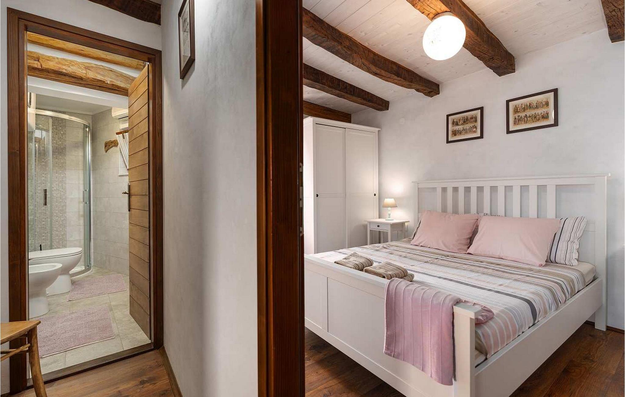 Casa Bombic liegt im ersten Stock erreichbar durch den Baladur, (typische Terrasse in Istrien mit Treppen aus dem Hof mit Eingang zum Haus) mit Sitzgarnitur. Ferienhaus von 75 qm mit klimatisiertem Wohnzimmer mit SAT-TV, Sofa, Esszimmer und voll ausgestatteter Küche mit alten Schreinertisch als praktischen Küchenschank auf den ersten Stock. Auf diesen Stock ist auch ein Schlafzimmer mit Doppelbett und eine Dusche/WC. Mit Treppen ist der zweite Stock/Dachgeschoss erreichbar, hier gibt es ein Schlafzimmer mit Doppelbett. Bitte beachten Sie, dass diese Unterkunft auf Anfrage möglicherweise Jugendgruppen akzeptiert. Bitte kontaktieren Sie uns, um dies zu überprüfen. Eine Jugendgruppe in dieser Unterkunft besteht aus Personen im Alter von 26 Jahren oder jünger. Wenn Sie eine Jugendgruppe sind [oder einen Junggesellenabschied planen], werden Sie möglicherweise bei der Ankunft um die Zahlung einer zusätzlichen Kaution gebeten. Etwaige Beträge, die zur Behebung von Schäden an der Immobilie erforderlich sind, werden von der Kaution abgezogen.