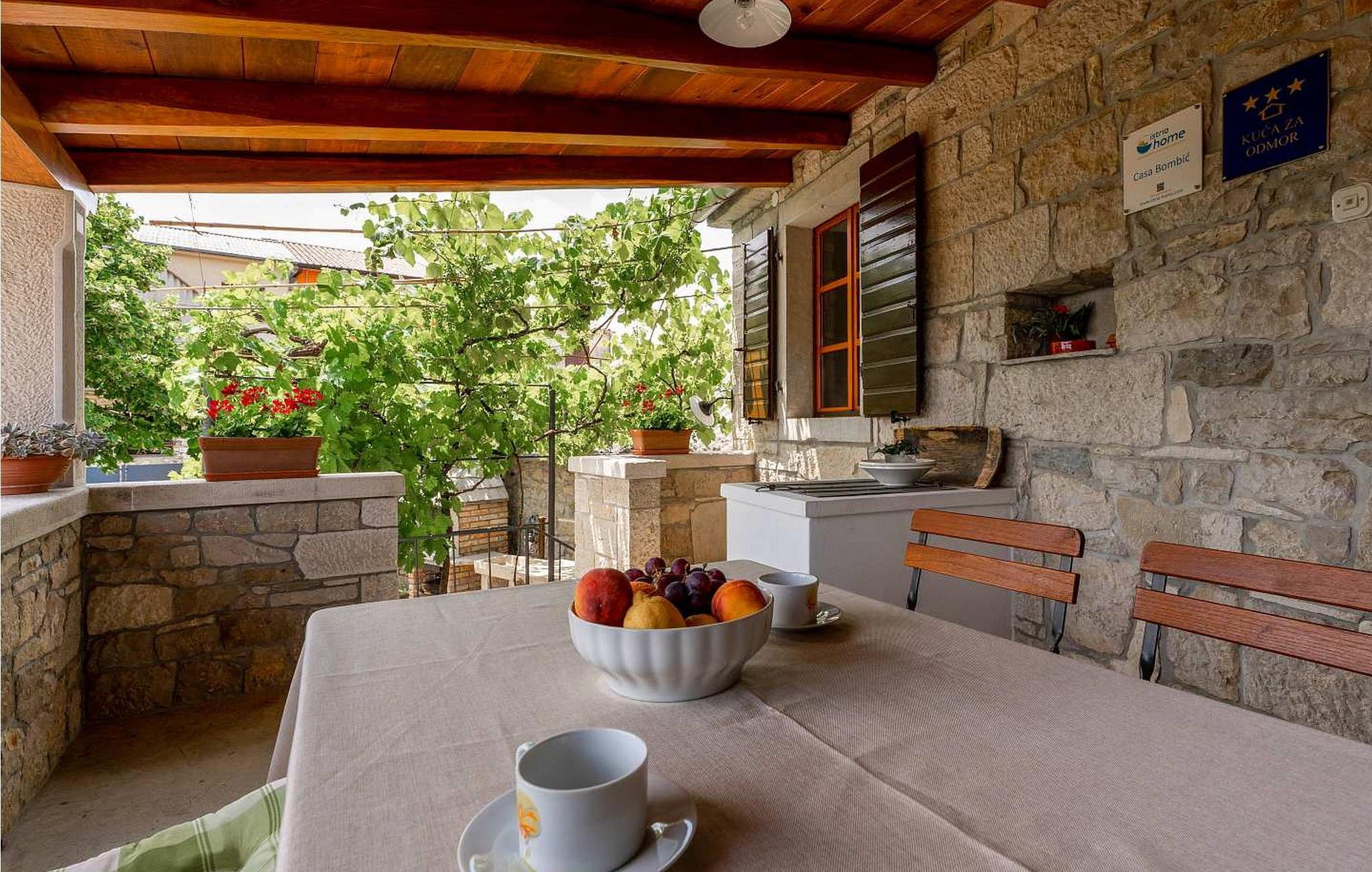 Das Haus wurde 2018 vom Vater, der hier aufgewachsen ist, und Sohn vollkommen renoviert. Besonders wurde auf die Erhaltung des authentischen Aussehens und des einzigartigen Charms der alten Steinhäuser in Istrien geachtet. Die Dörfer in Istrien sind bekannt für Kosenamen, so bekam auch Casa Bombic den Kosenamen der Besitzerfamilie. Umgeben von Weinreben, Olivenhainen und Obstgärten ist es ein idealer Platz weg vom alltägigen Trubel. Hier erholen Sie sich bei endlosen Spaziergängen auf den Hügeln in der Umgebung, beim Erforschen der mittelalterlichen Städtchen oder beim Besuch der Konoben in der Nähe, die den teuren weißen Trüffel täglich anbieten.