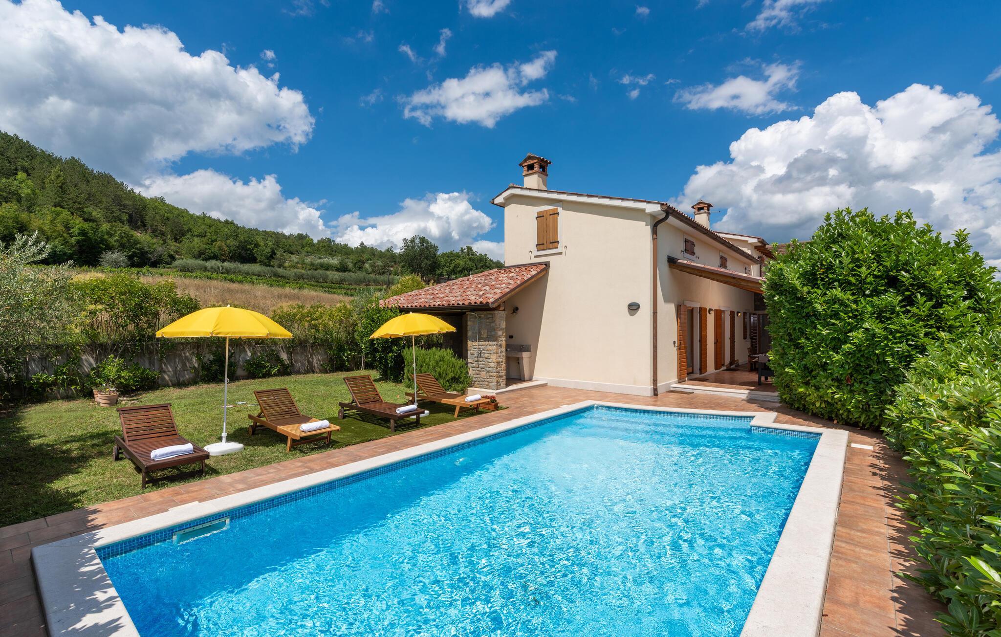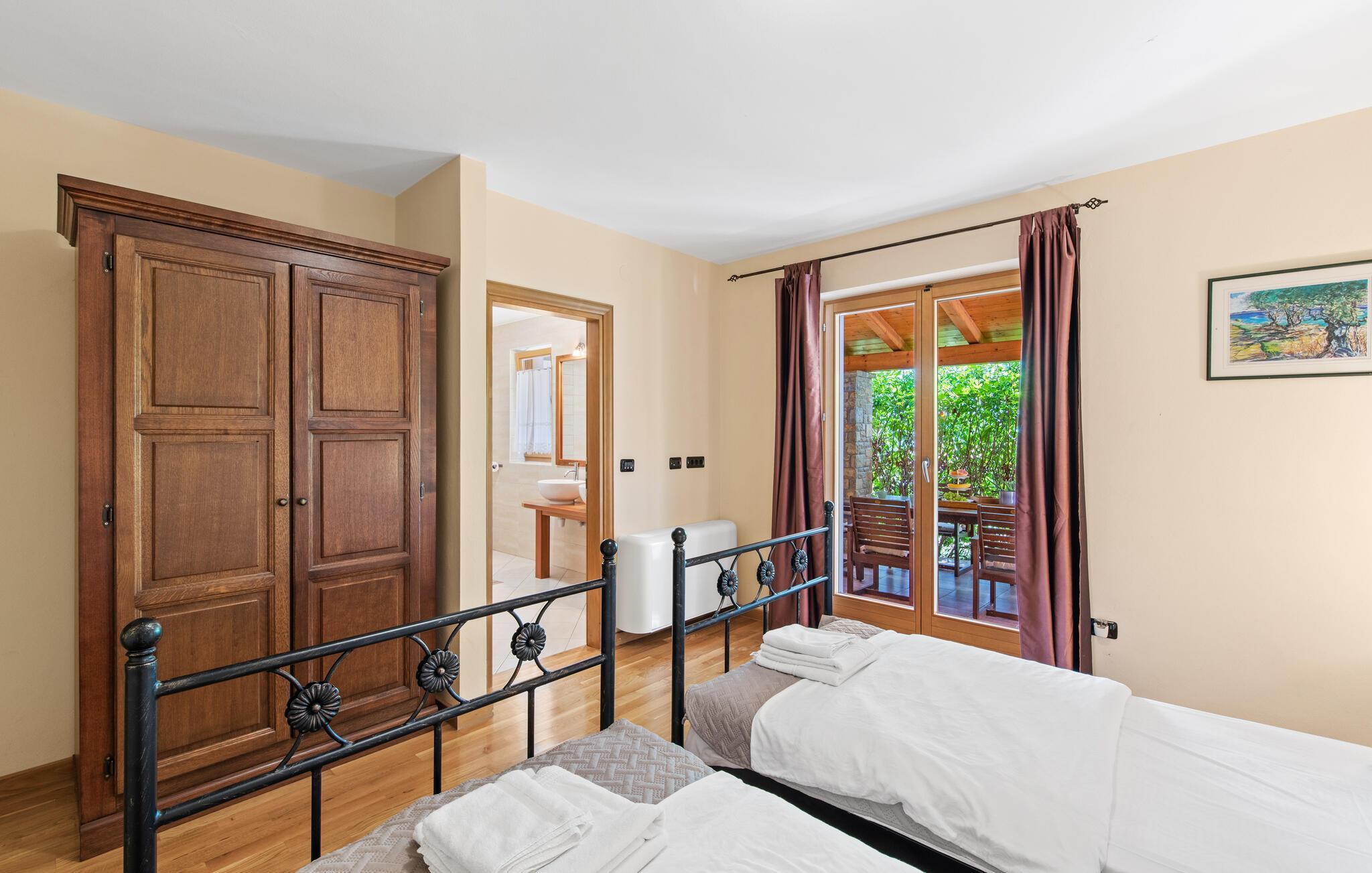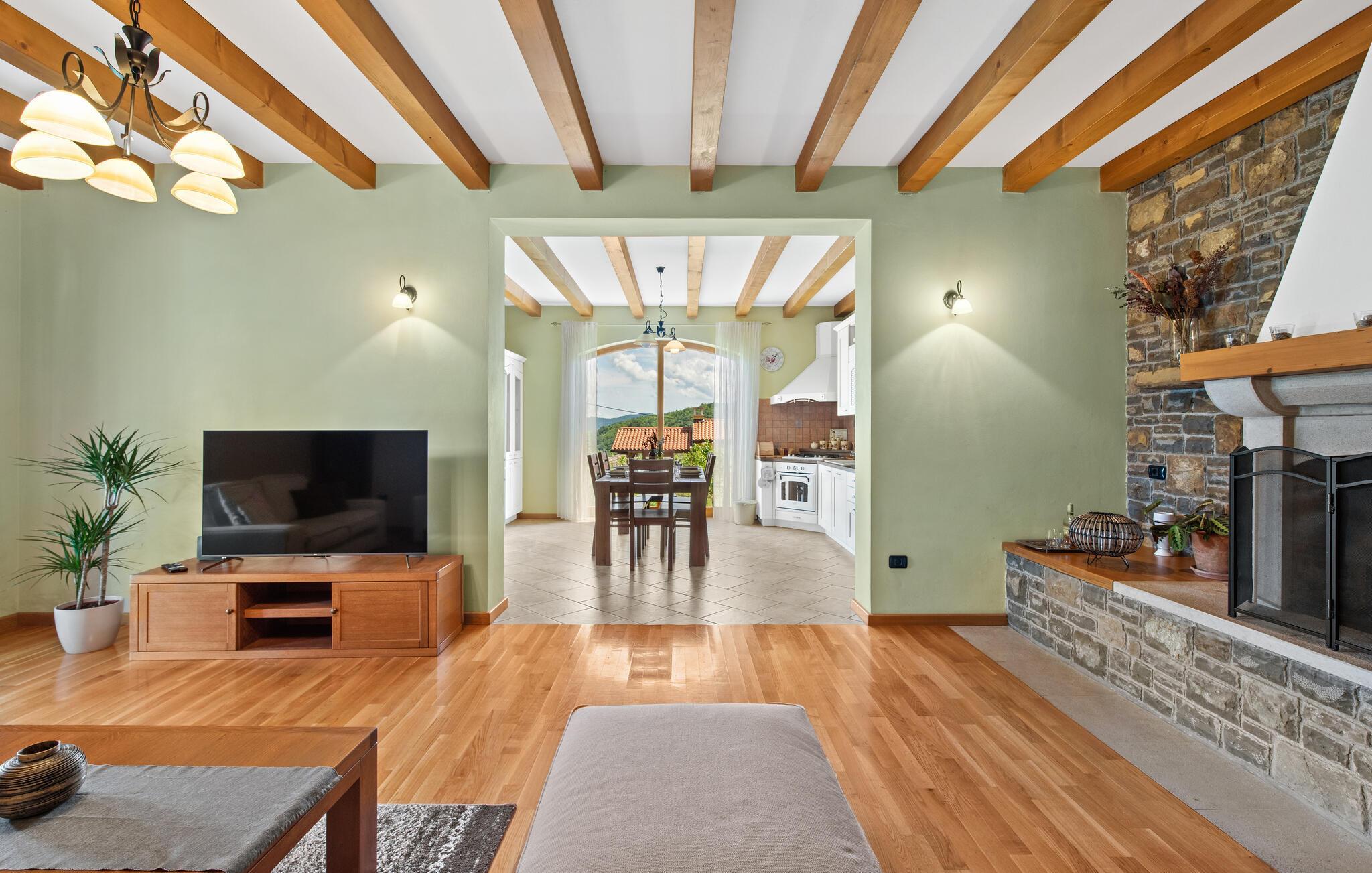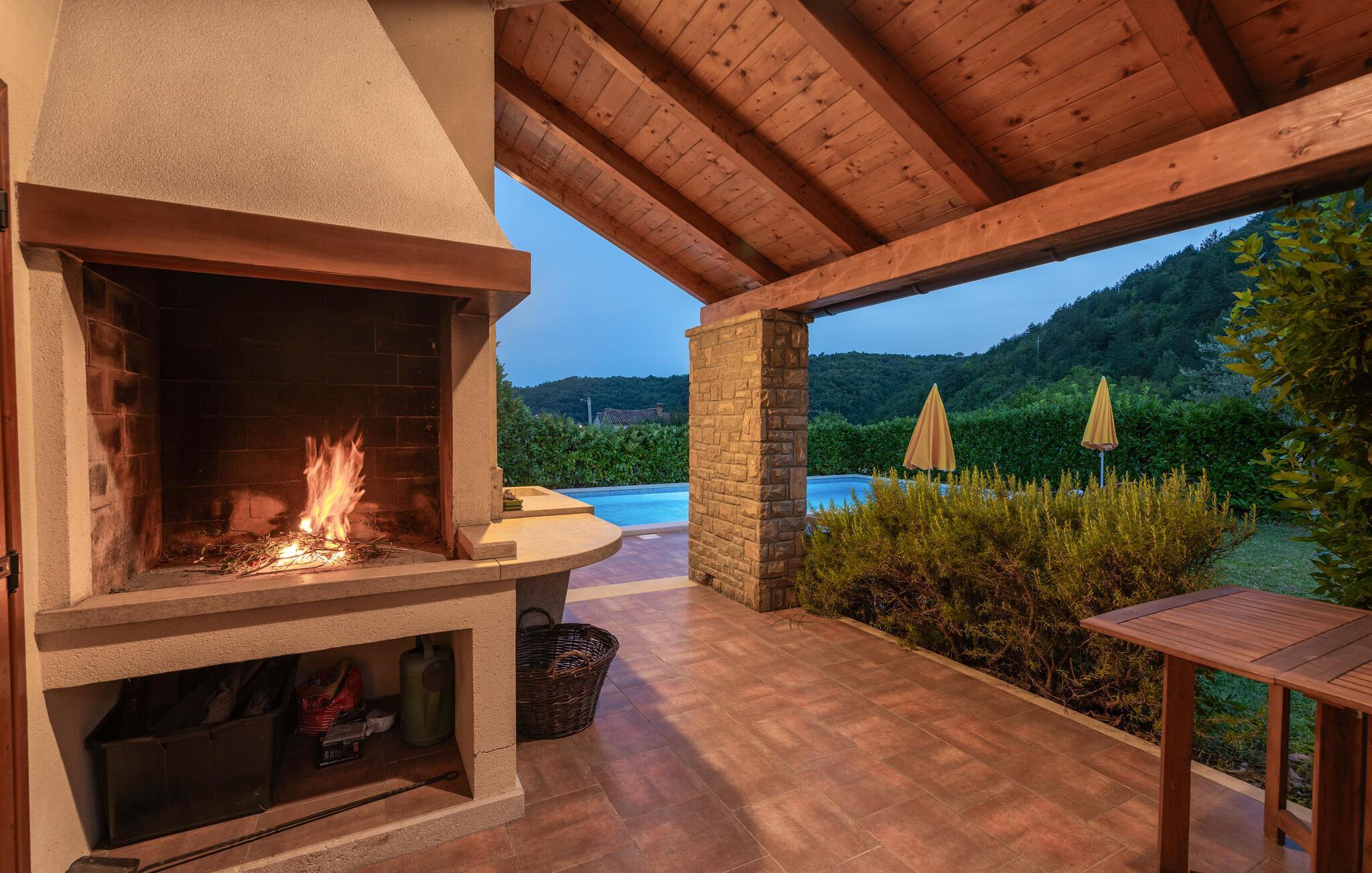Villa Dol ist ein charmanter, rustikaler Rückzugsort in einer ruhigen Umgebung, perfekt zum Entspannen. Der Außenbereich der Villa umfasst einen Pool, drei überdachte Terrassen für Mahlzeiten im Freien, einen gepflegten Garten und zwei Parkplätze. Im Inneren trifft Komfort auf rustikalen Charme auf zwei klimatisierte Etagen. Das Erdgeschoss umfasst ein gemütliches Wohnzimmer mit Kamin, eine gut ausgestattete Küche mit Essbereich und zwei Schlafzimmer – eines mit Doppelbett und das andere mit getrennten Betten – jedes mit eigenem Bad sowie eine zusätzliche separate Toilette. Im Obergeschoss finden Sie ein geräumiges Schlafzimmer mit Doppelbett und eigenem Bad, das zu einer großen Terrasse führt, die einen atemberaubenden Panoramablick auf die umliegende Landschaft bietet. Villa Dol liegt am Rande eines ruhigen Dorfes im grünen Inland Istriens. Das nächste Restaurant liegt 7 km entfernt in Sovinjak und die 12 km entfernte Stadt Buzet bietet Supermärkte, Bäckereien, Geldautomaten, Apotheken und mehr. Der nächste Strand befindet sich in Novigrad. Die Gegend ist für ihre Trüffel bekannt, die Sie in den örtlichen Restaurants genießen können. Bitte beachten Sie, dass diese Unterkunft keine Jugendgruppen oder Junggesellenabschiede akzeptiert. Eine Jugendgruppe in dieser Unterkunft besteht aus Personen im Alter von 26 Jahren oder darunter.