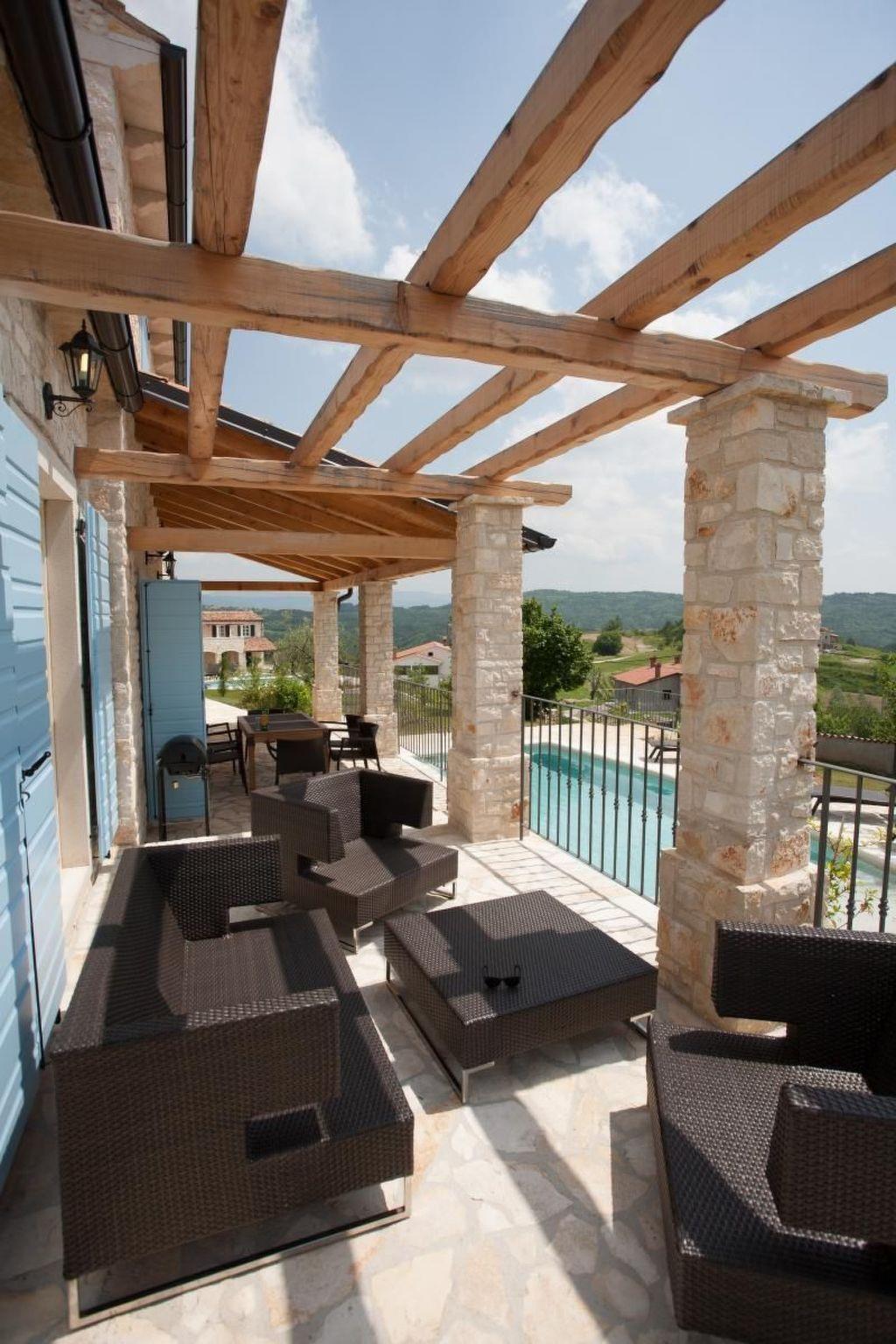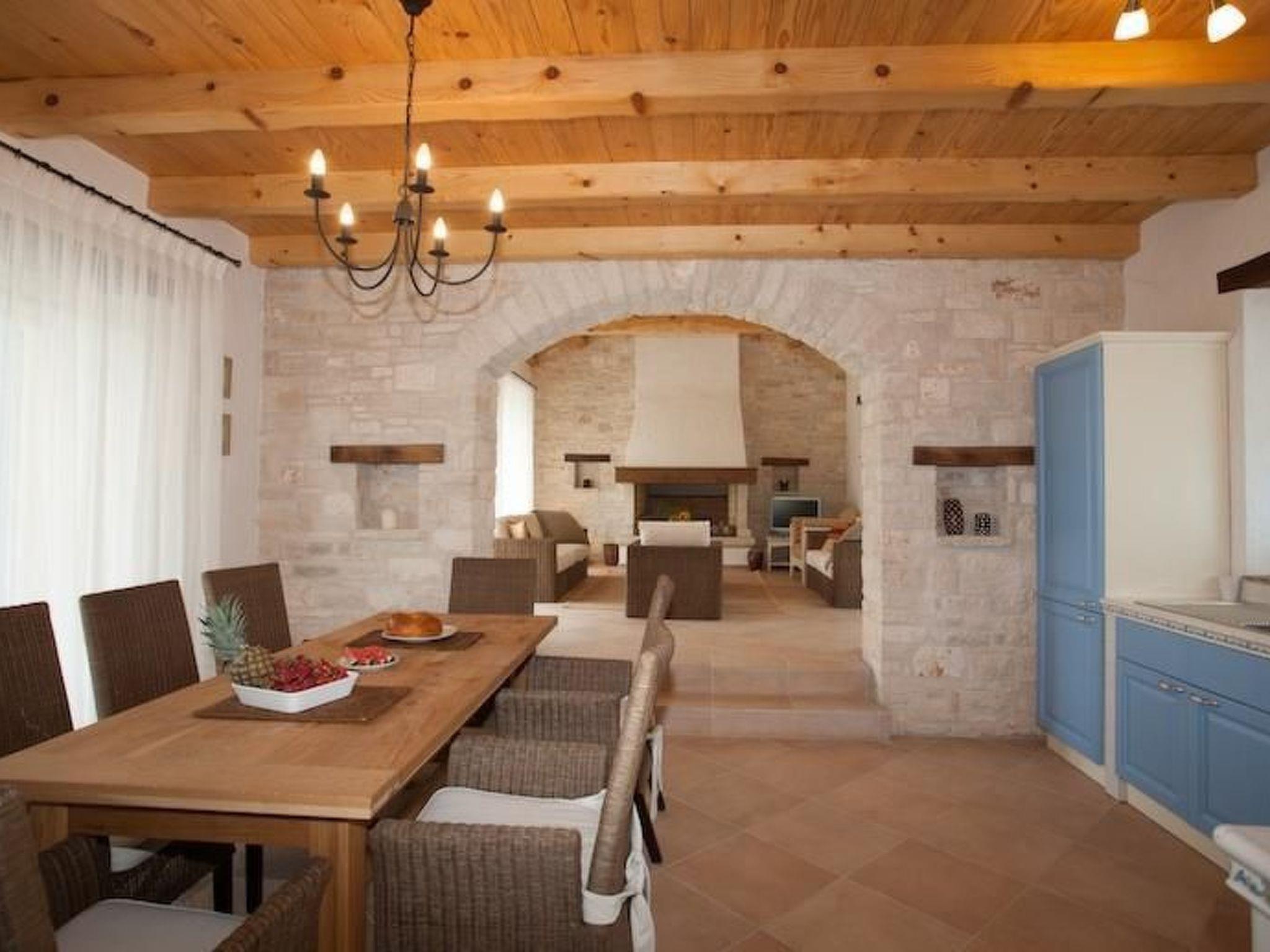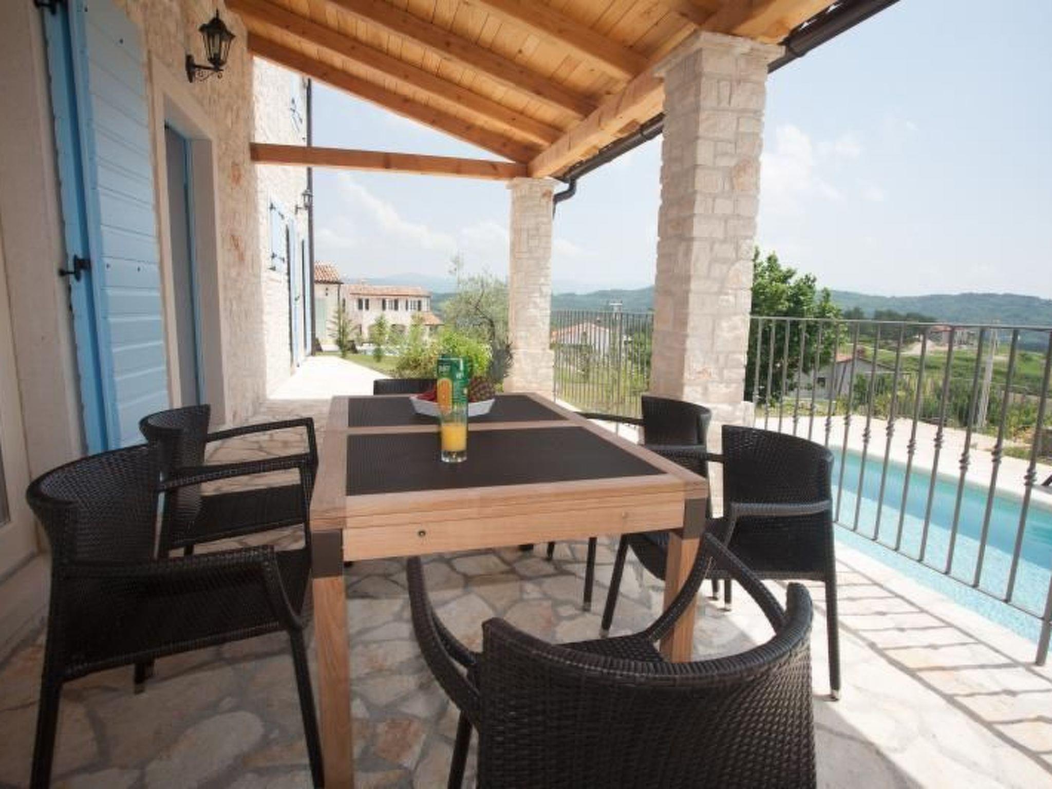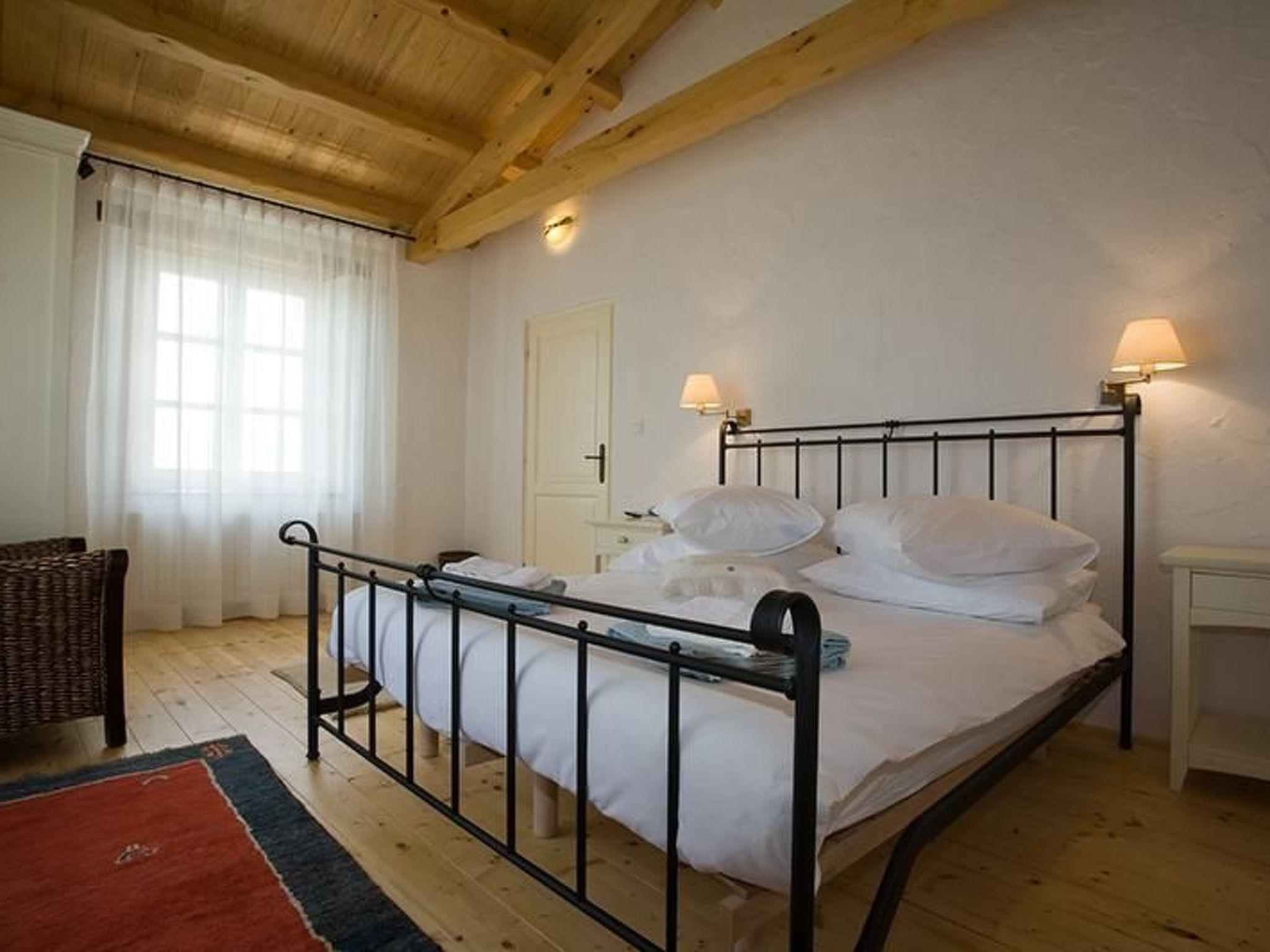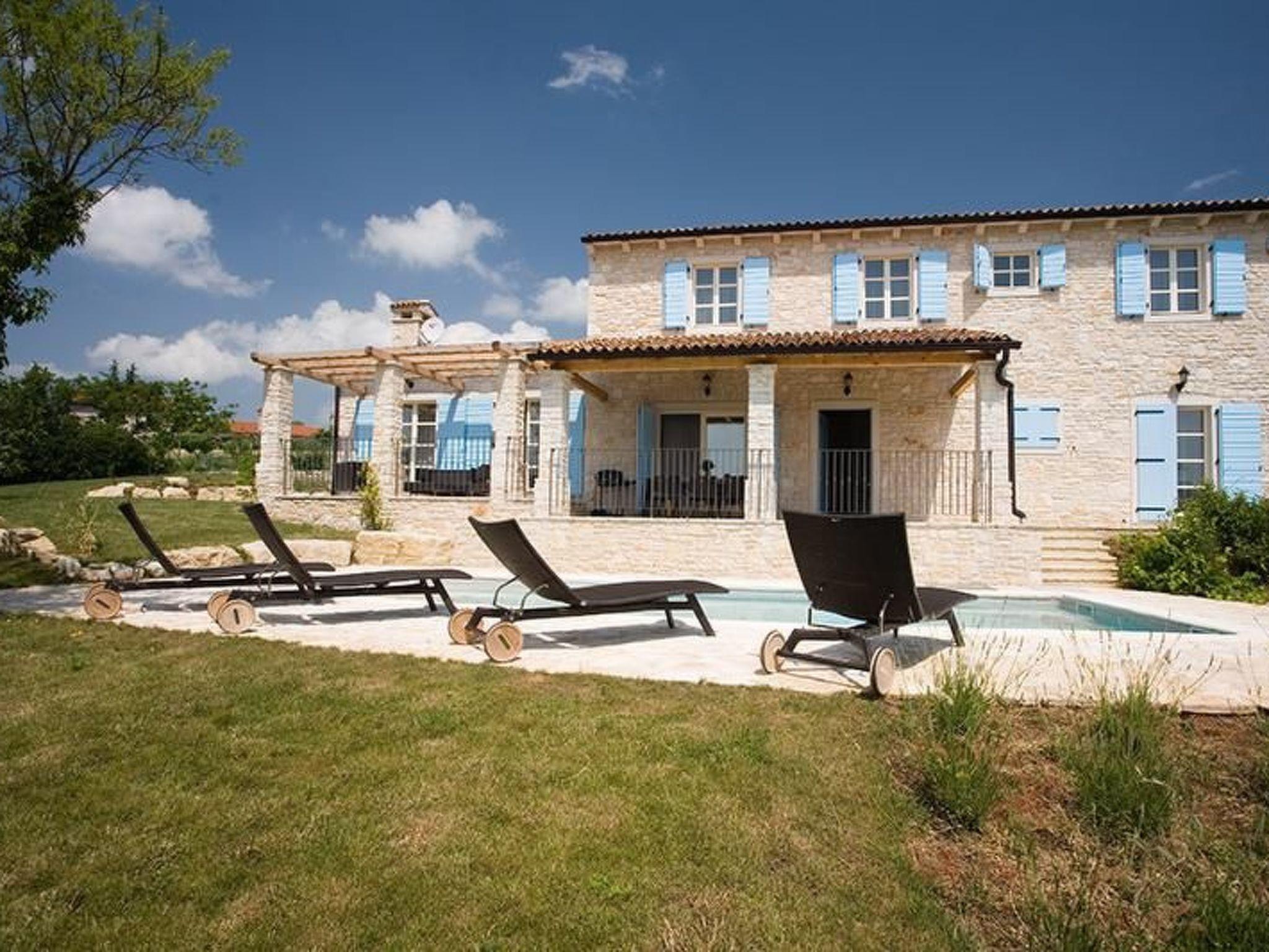 Im grünen Hinterland der kroatischen Halbinsel Istrien, unweit des Städtchens Motovun, liegt die "Villa Sienna" in idyllischer und ruhiger Lage im kleinen Weiler Sovinjak. Das Ferienhaus bietet mit seiner erhöhten Lage am Hang einen schönen Blick auf die malerische Hügellandschaft. Ein großer Garten mit gepflegten Rasenflächen umgibt das Steinhaus, am Swimming-Pool kann man wunderbar entspannen und sonnenbaden. Die überdachte Terrasse lädt zum Essen und Relaxen im Freien ein. Innen ist die "Villa Sienna" äußerst geschmackvoll und elegant ausgestattet, die rustikalen Holzbalkendecken und die teilweise sichtbaren Steinwände schaffen eine gemütliche Atmosphäre. An kühleren Tagen kann man es sich vor dem großen Kamin im Wohnzimmer gemütlich machen. So bietet das Ferienhaus "Villa Sienna" einen wunderbaren Rahmen für entspannte Urlaubstage in Istrien.