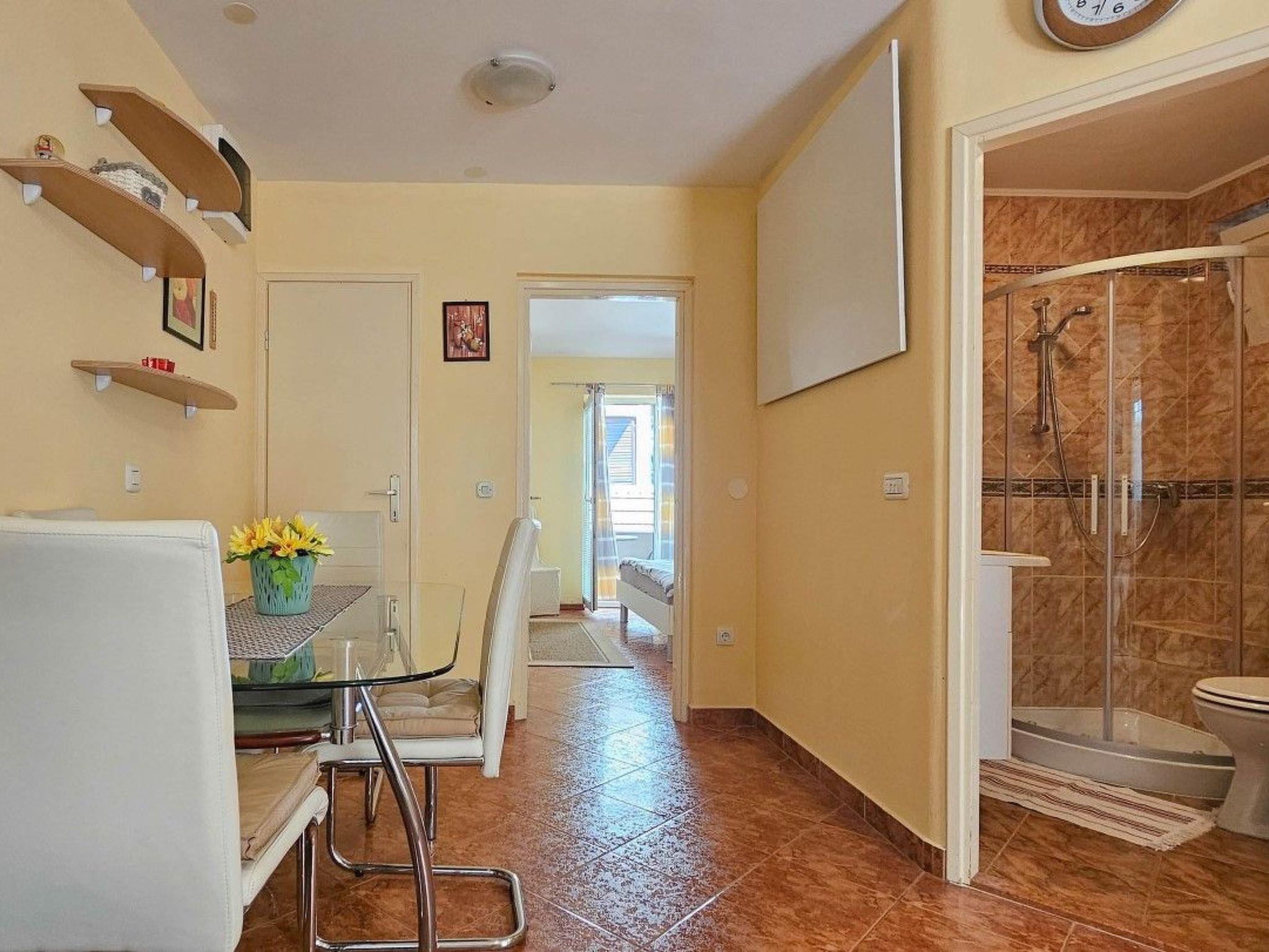 Die Wohnung besteht aus einem Schlafzimmer, einem gemütlichen Wohnzimmer mit Küche und Esszimmer und einer schönen Terrasse. Zwei weitere Gäste können bequem im Wohnzimmer schlafen. Die Küche ist mit allem ausgestattet, was man für die Zubereitung einfacher Mahlzeiten braucht, und das praktische Badezimmer verfügt über eine Dusche, eine Toilette und eine Waschmaschine für Ihren Komfort. Entspannen Sie sich auf der Terrasse, die mit einem Tisch und Stühlen ausgestattet ist, ideal für den Morgenkaffee oder abendliche Zusammenkünfte. Die Wohnung ist mit TV, Klimaanlage und Internet ausgestattet, und Bettwäsche und Handtücher stehen ohne zusätzliche Kosten zur Verfügung, um Ihnen einen sorgenfreien Aufenthalt zu ermöglichen.