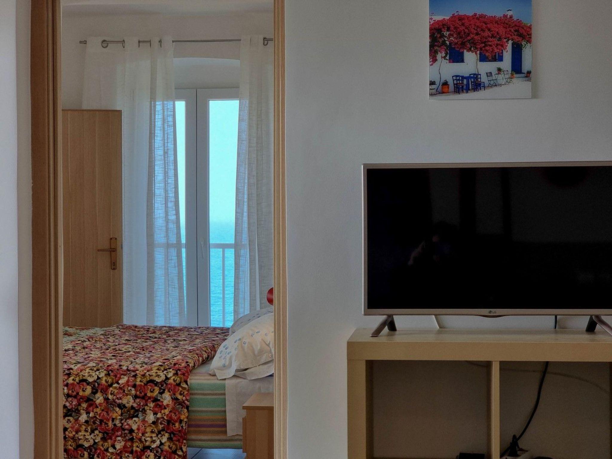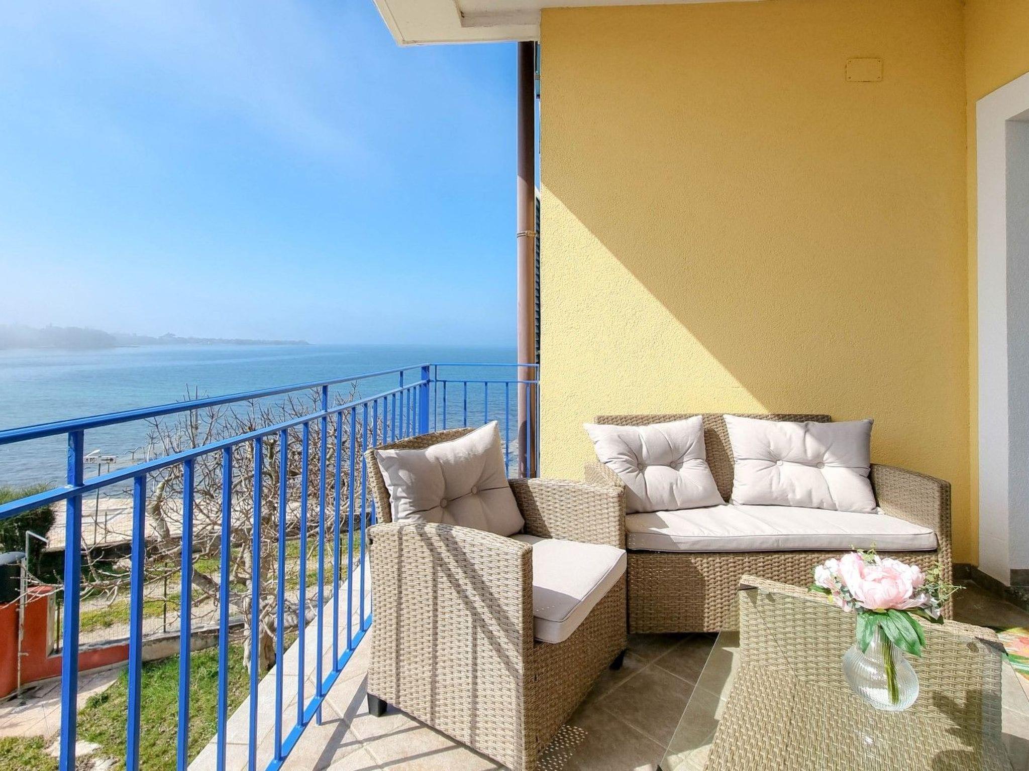 Wenn Sie auf den Balkon des Apartments treten, finden Sie eine private Oase vor, die mit Möbeln ausgestattet ist und einen malerischen Blick auf das Meer bietet. Dieser Außenbereich lädt Sie dazu ein, Ihren Morgenkaffee zu genießen oder im Freien vor dem Hintergrund der ruhigen Umgebung zu speisen.