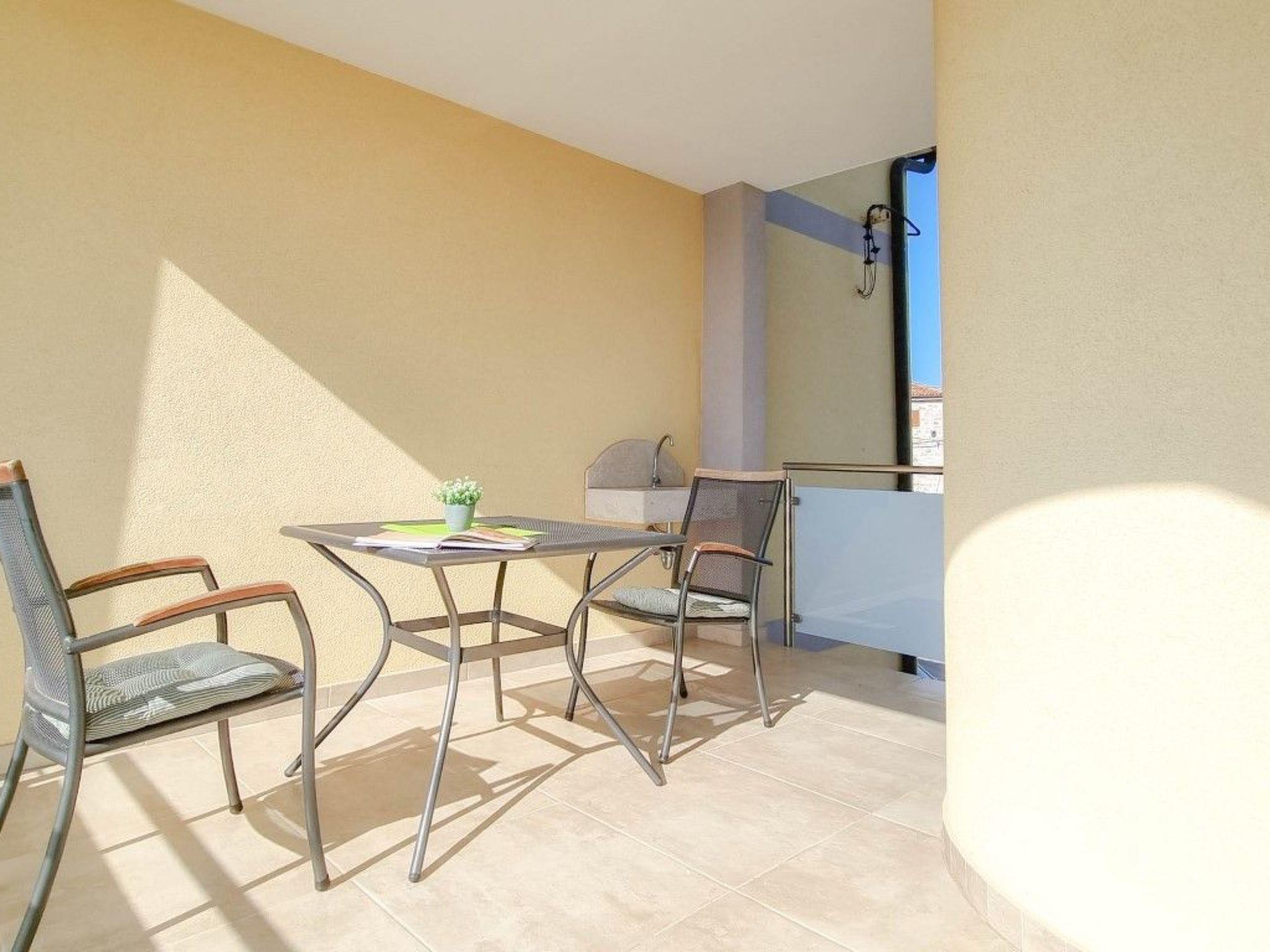 Das Innere dieser einladenden Wohnung ist so gestaltet, dass alle Ihre Bedürfnisse erfüllt werden. Das Herzstück der Wohnung ist ein komfortables Schlafzimmer, in das sich eine gut ausgestattete Küche nahtlos einfügt. Hier können kulinarische Enthusiasten den Elektroherd, den Kühlschrank und die Kaffeemaschine nutzen, um köstliche Mahlzeiten zu zaubern. Die Wohnung ist teilweise klimatisiert, so dass Sie sich auch an warmen Tagen in Istrien wohl fühlen. Die Waschmaschine, die Ihnen zur alleinigen Nutzung zur Verfügung steht, verleiht Ihrem Urlaub einen Hauch von häuslichem Komfort.